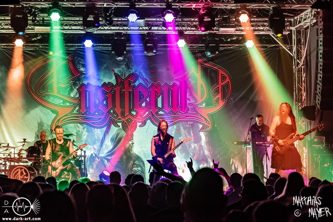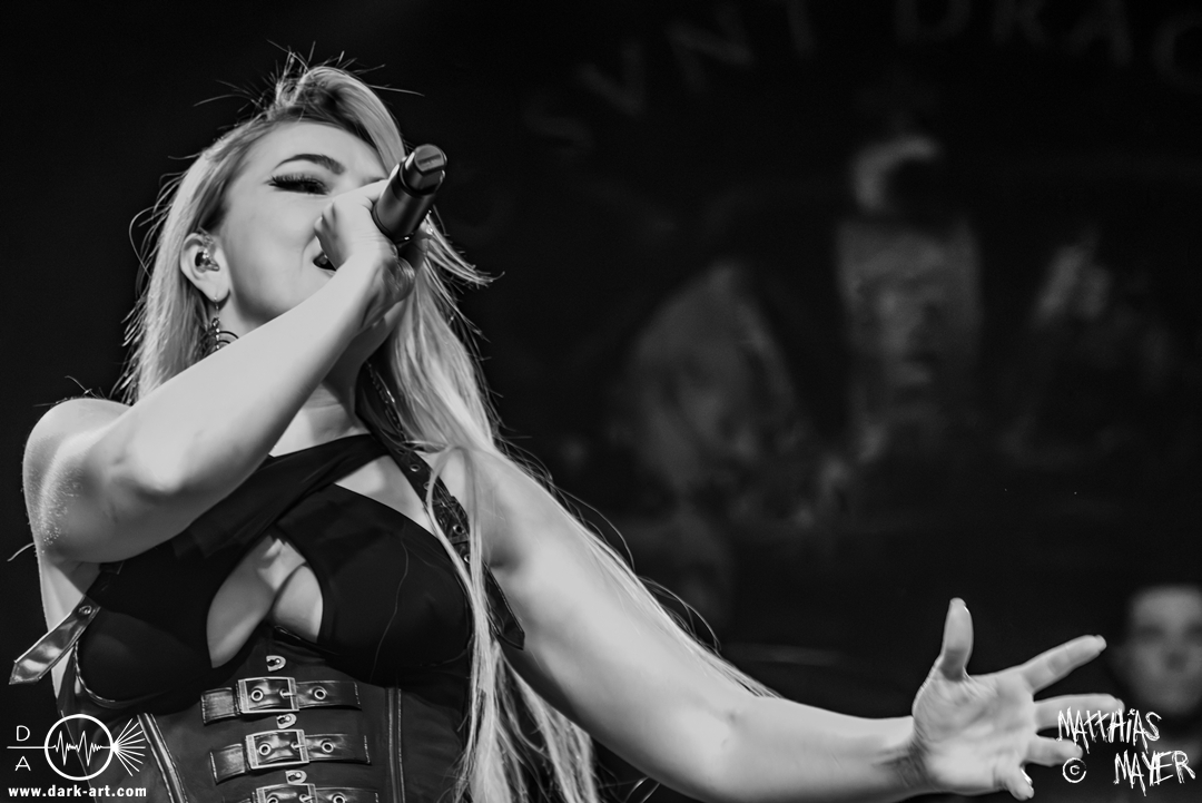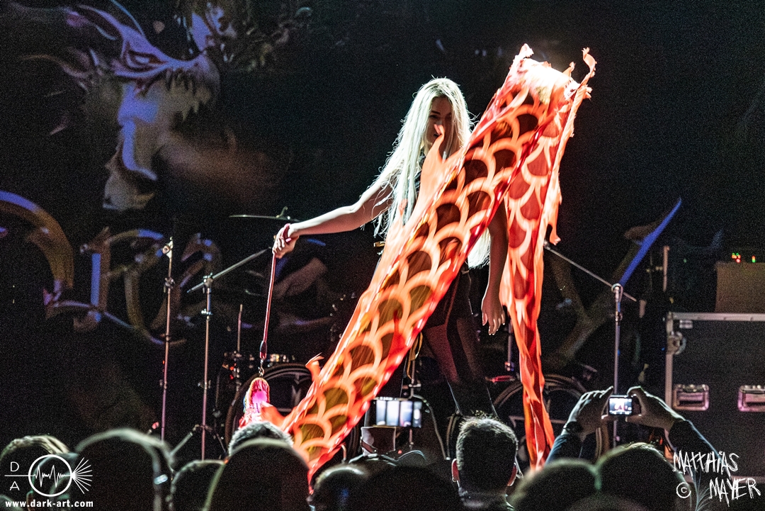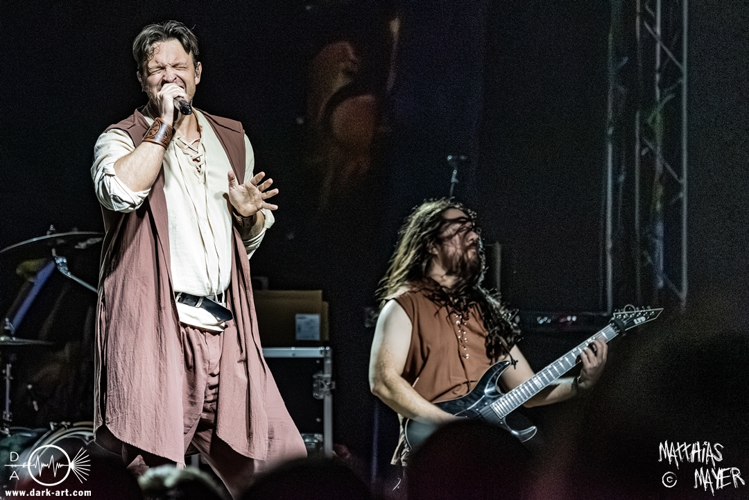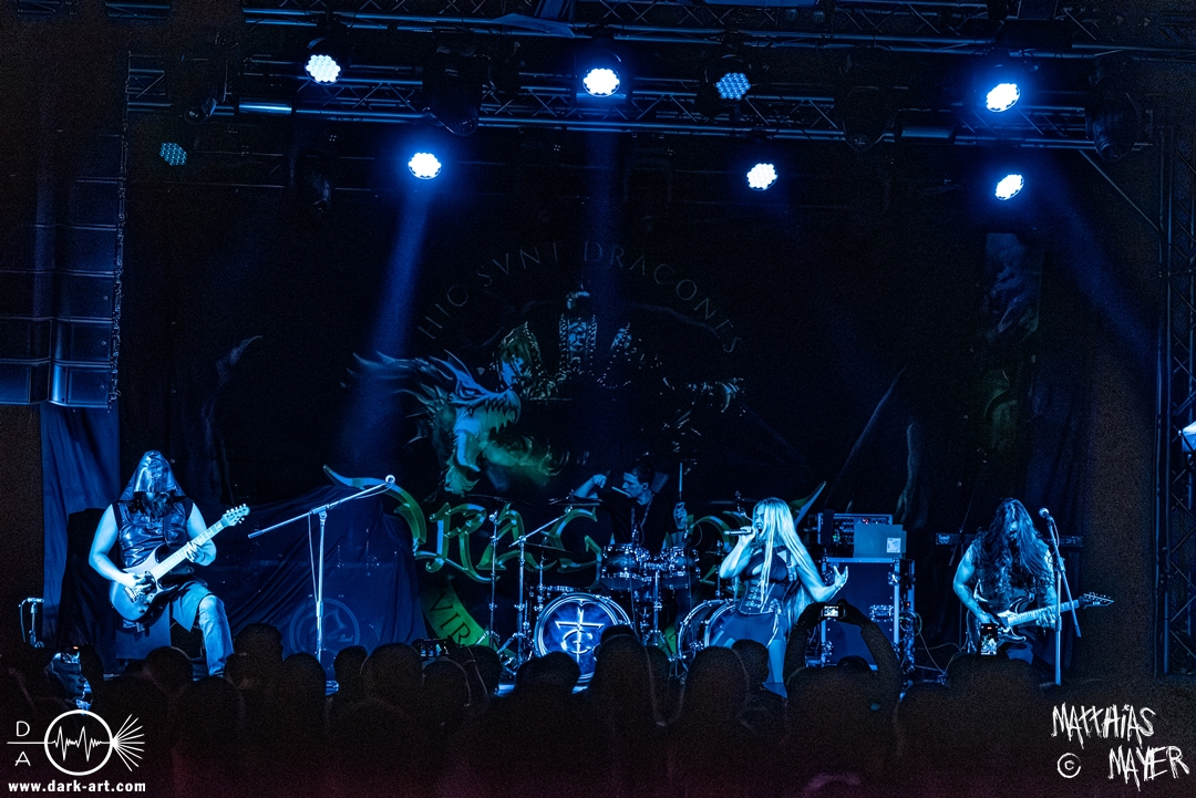 Trotz aller Widrigkeiten ist es ein gelungener Einstieg von Dragony und besonders Sängerin Maria brilliert mit ihrem gekonnten Wechsel von melodischem Gesang und gut platzierten Screams. Auch optisch überzeugt sie nicht nur mit ihrem durchgestylten Look, sondern auch mit einer gekonnten Ribbons Performance mit einem leuchtenden LED-Feuerdrachen beim Gitarrenpart von The untold Story. Mit Beyond the Rainbow Bridge endet das erste Set des Abends.