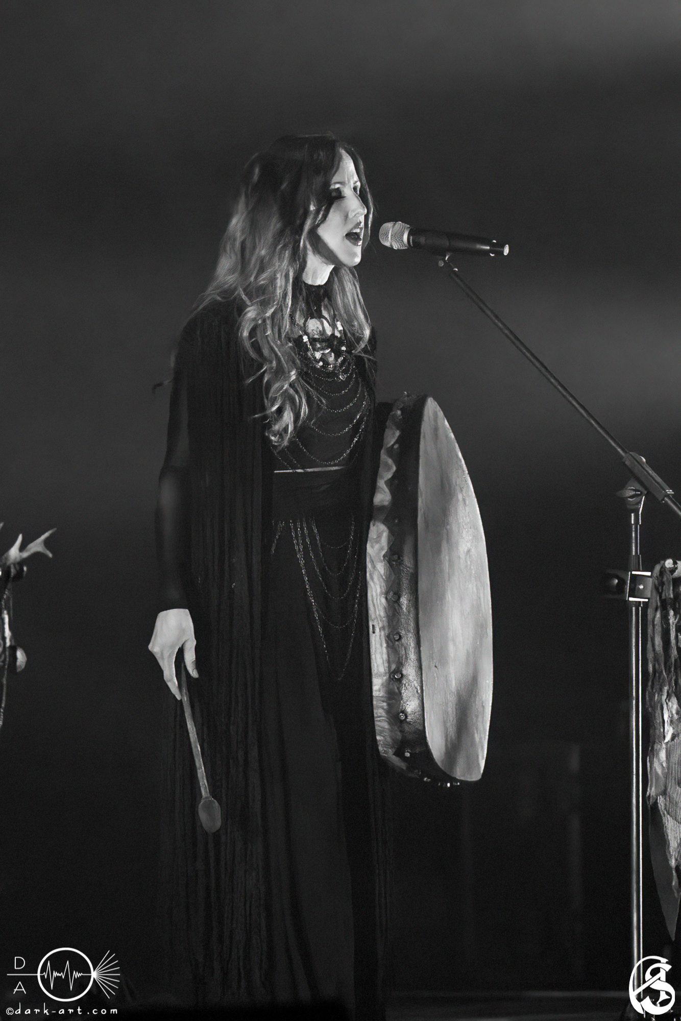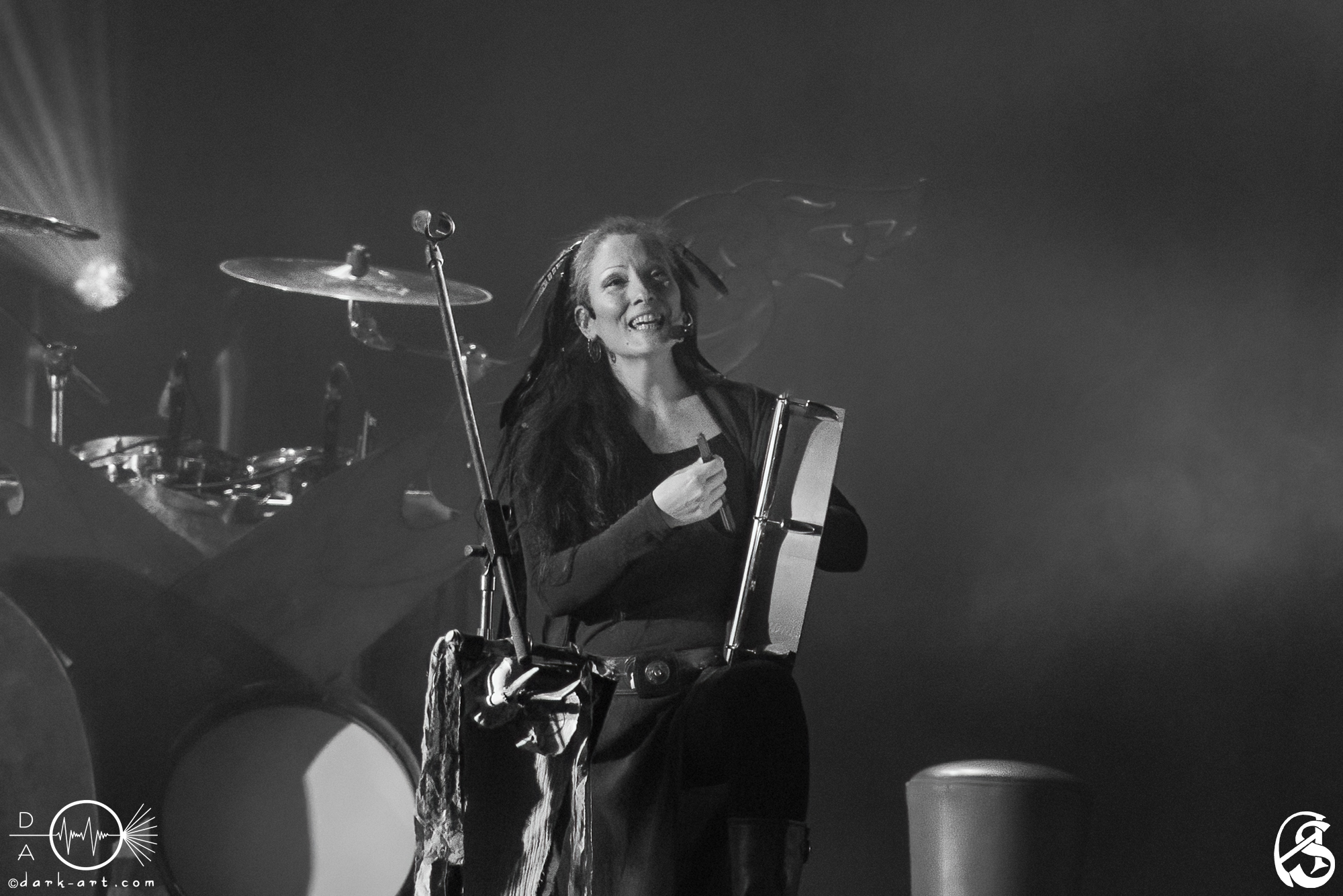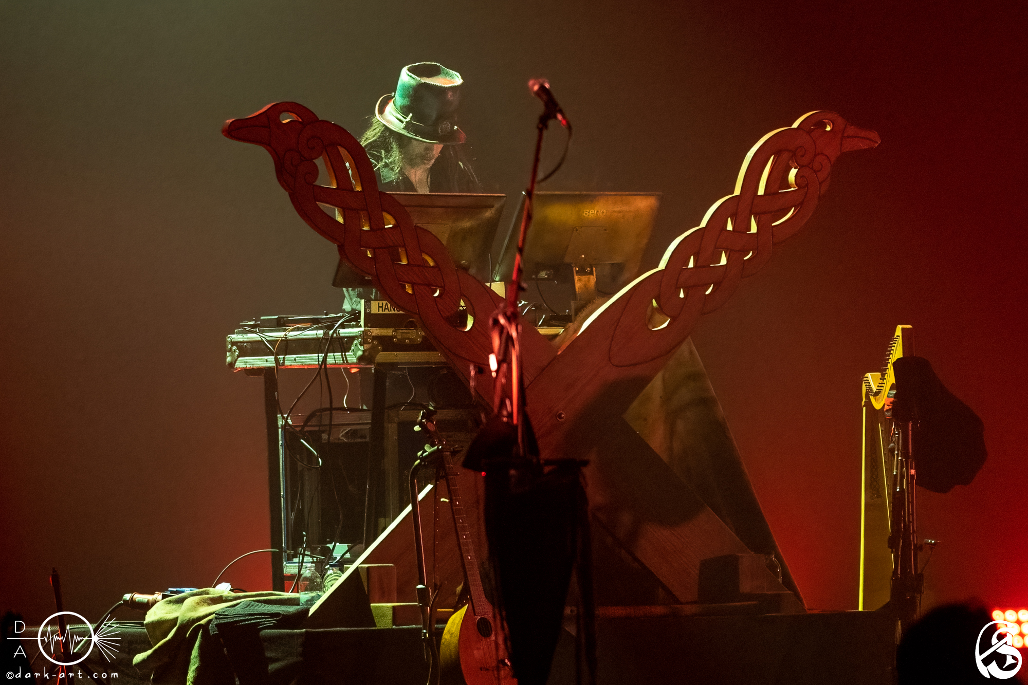 Durch solche Geschichten brachten Faun immer wieder eine neue Spannung in den Abend. Eine ablenkende Show oder großartige Effekte waren überhaupt nicht nötig, um das Publikum in ihren Bann zu ziehen. Einzig und allein die Erzählungen, das multiinstrumentale Talent der Band und die zauberhaften Gesangstimmen von Adaya, SaTyr, Laura Fella und Stephan Groth genügten vollkommen. Die erste Hälfte des Konzerts endete dann mit dem Song Galdra. Allein während dieser ersten acht Songs kam es zu diversen Instrumentenwechseln. Besonders stachen hierbei, sowohl optisch als auch im Klang, die Drehleier, die Laute und eine Nyckelharpa hervor. Selbst für versierte Konzertbesucher dürfte der Klang solcher Instrumente stets etwas Besonderes bleiben. Die 20 Minuten Pause nach der ersten Hälfte wurden, gerade vom tanzenden Teil des Publikums, dankend genutzt, um sich zu erholen und mit kühlen Getränken zu erfrischen.