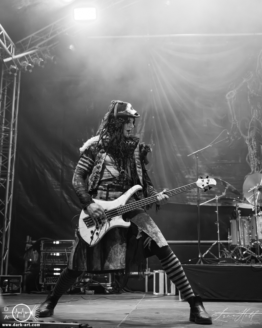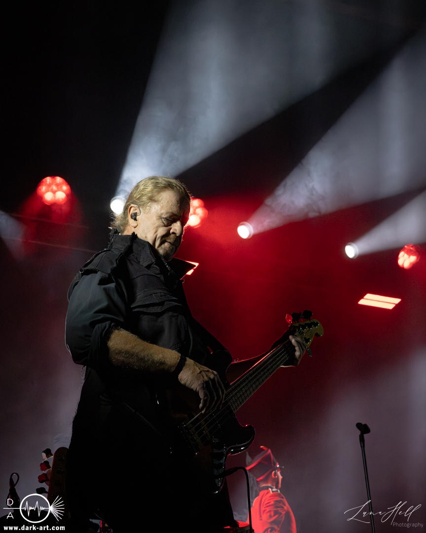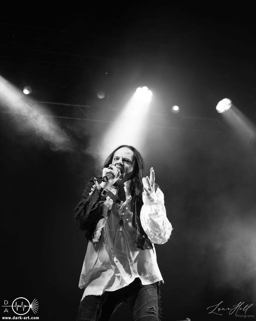 ASP lieferten eine beeindruckende Show, die ihre Klassiker ebenso wie aktuelle Stücke präsentierte. Die Performance lebte von der Intensität der Band, von Alexander „Asp“ Sprengs charismatischem Gesang und den energiegeladenen Instrumenten. Besonders auffällig waren die speziell auf die Songs abgestimmten Lichteffekte: stimmungsvolle Schatten, dramatische Farbakzente und gezielt gesetzte Spots hoben einzelne Momente hervor, ganz anders als bei Goethes Erben, aber genauso wirkungsvoll. Das Publikum ließ sich sofort einfangen, sang mit, reagierte auf die Musik und tauchte tief in die düster-melancholische Atmosphäre der Performance ein.