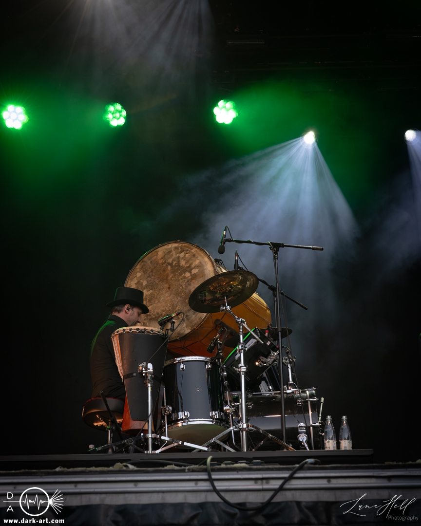 Goethes Erben auf der Burgbühne waren ein starker Kontrast zum bisherigen Tagesprogramm. Die Show lebte von der intensiven Ausdruckskraft des Künstlers, dessen Mimik und Gestik jedes Lied sichtbar trugen. Die Inszenierung war klar durchdacht: perfekt abgestimmte Lichter verstärkten die Dramatik und setzten gezielt Akzente. Immer wieder erschien eine Tänzerin auf der Bühne, passend zu einzelnen Stücken, und fügte sich selbstverständlich in das Gesamtbild ein. Es war eine detailreiche, ausgeklügelte Performance, die durch ihre Intensität, Bildsprache und Dramatik das Publikum vollständig in ihren Bann zog.