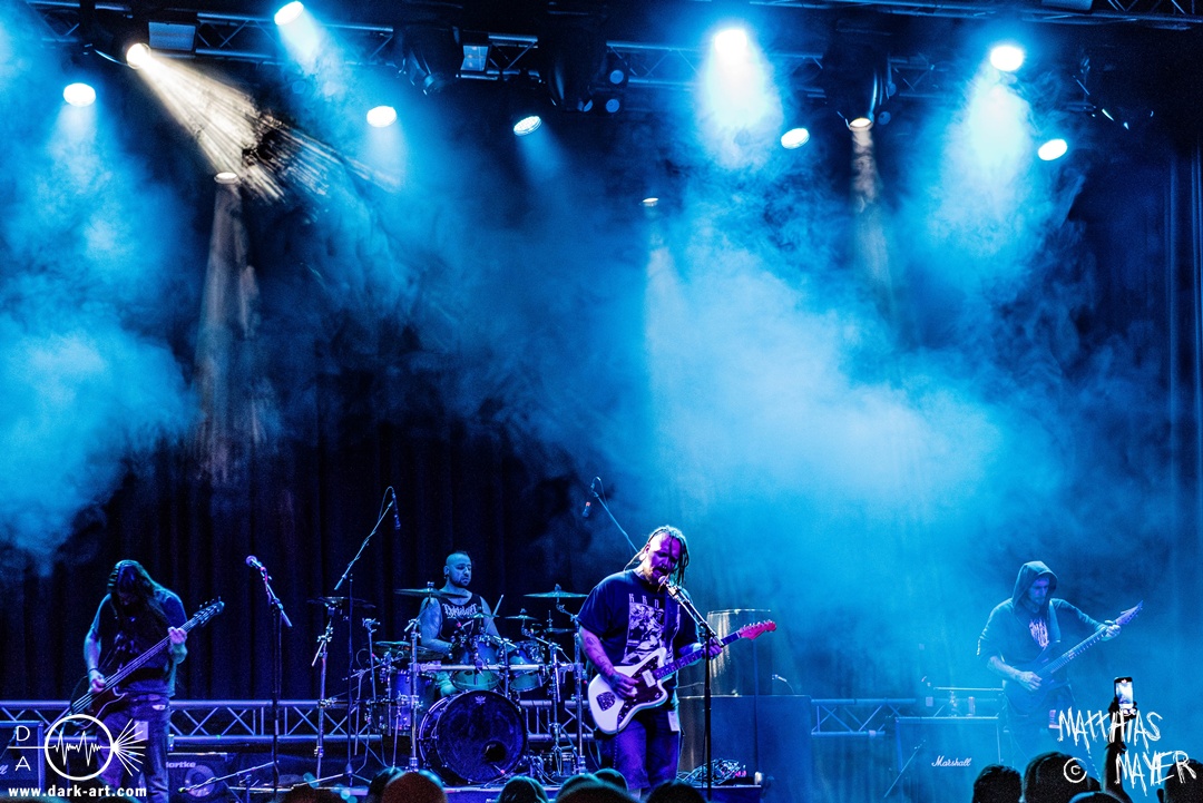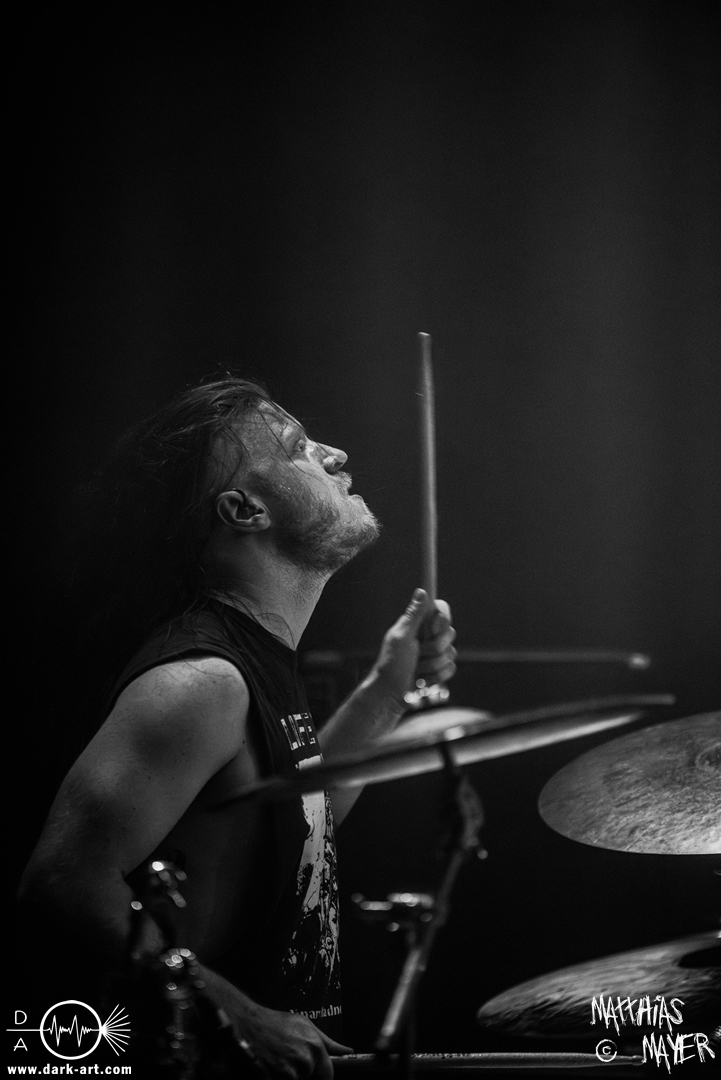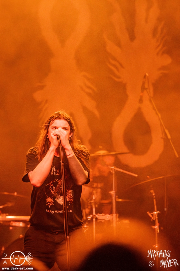 Mit Schammasch zog ein dunkles Ritual in die Posthalle ein. Die Schweizer zelebrierten nicht einfach Musik, sondern erschufen ein Gesamtkunstwerk. Die Bühne war ein Altar: Sternförmige Lampen warfen diffuses Licht, Masken und Kapuzen verhüllten Gesichter, über allem thronte das okkulte Logo der Band. Schon vor dem ersten Ton lag eine ehrfürchtige Spannung in der Luft. Ihr zeremonieller Black Metal wirkte wie eine Liturgie aus einem fernen, finsteren Tempel. Der hohe Gesang und das schleppende Tempo ließen Raum für Andacht und Staunen. Jeder Song wurde mit tosendem Beifall bedacht, denn Schammasch machten deutlich: Sie sind nicht einfach eine Band, sie sind eine Offenbarung.