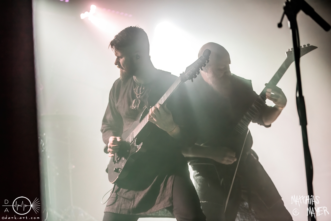 Auf Skyforger habe ich mich den ganzen Tag gefreut, endlich etwas Folk- und Pagan-Metal in dem ansonsten pechschwarzen Line-Up. Im Gegensatz zu Groza füllte sich die Halle bedächtig und bis zum Ende blieb etwas Bewegungsraum, welcher noch wichtig wurde. Die Melodien wurden abwechslungsreicher und bis zu einem gewissen Grad verspielter, ohne aber an Härte zu verlieren. Ein Vergleich mit Einherjer oder den Anfangsphasen von Eluveitie kann hier gemacht werden. Ihre Stärke ist aber die Stimme, oder genauer die Stimmen der Bandmitglieder. Drei von vier Bandmitgliedern haben in den jeweiligen Liedern kürze oder längere Gesangspassagen. Dieser Kniff verlieh dem Auftritt einen gewissen Spannungsbogen. Währendessen bildete sich der erste Moshpit, den ich an diesem Tag erlebt habe. Dafür war der gewisse Platz in der Halle notwendig. In der zweiten Hälfte wurde eine Geschichtsstunde eingefügt. Die Großväter der Bandmitglieder hatten zu ihrer Zeit den Frieden in ihrem Land gegen die deutschen Aggressoren verteidigt. Diese Situation spielte sich, laut dem Frontmann Peteris, aktuell in der Ukraine ab. Dort verteidigt die ukrainische Bevölkerung ihren Frieden gegen die russischen Angreifer. Dieses politische Statement wurde mit viel Jubel quittiert. Zu beachten sei hierbei, dass in der Halle die ganzen zwei Tage eine große Ukraine-Flagge hing. Der Moshpit wuchs mit jeden Lied an, bis er beim beinahe abgebrochenen, letzten Lied zu einer brutalen Größe angeschwollen ist. Ein echter Abriss am Nachmittag.