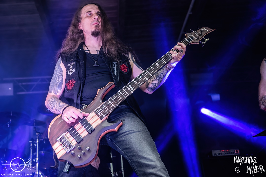 Bei den Schotten von Saor war dann wieder volle Hütte angesagt. Das Feld hatte sich wieder ordentlich gefüllt, schließlich kannte man sie auf dem Festival ja schon. Bereits 2015 bestritten sie ihren ersten Deutschlandgig hier und waren auch 2019 wieder eingeladen. Melodisch, teilweise hart, aber immer mit eingängigen Melodien, könnten sie eigentlich immer überzeugen. Zumal es auf dem Festival bis dato die erste Band mit traditionellen Instrumenten, wie Flöte und Dudelsack, war. Die Leute gingen richtig gut mit, headbangten und feierten ausgelassen. Ich muss auch sagen, dass mir die momentane Besetzung der Truppe ziemlich gut gefällt. Gerade Ella Zlotos fügt sich mit ihrer Präsenz und dem klaren weiblichen Gesang, sowie den oben genannten Instrumenten wunderbar ein und bildet einen schönen Kontrast zu dem Gesang von Andy. Ein toller Aufritt, der alle zu überzeugen wusste.
