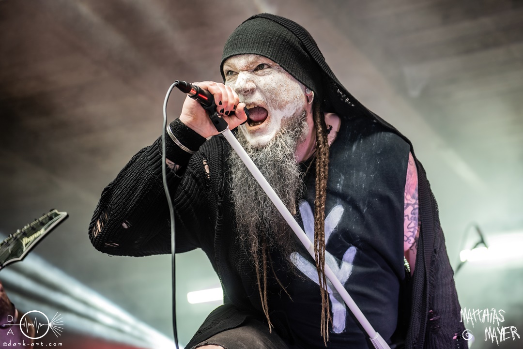 Mit der nächsten Truppe stand eine besondere Kombo auf der Bühne. Die zwei Brüder Sick Bab und Torvuus haben mit Depressive Witches ein sehr interessantes Projekt gestartet, welche sie auch nur zu zweit auf die Stage bringen. Im ersten Moment wirkte der Aufbau etwas befremdlich, da sich Sick Bab als Sänger seitlich platziert hatte, um seinen Bruder an den Drums nicht zu verdecken und ihm Platz einzuräumen. Mit einem „Fuck you all!“ Shirt und einer Knochenkette hinten an der Hose, fing das Duo an, die Leute mit ihrem Black’n’Roll in ihren Bann zu ziehen. Eine, mit dem ersten Hören vielleicht schräg anmutende Mischung, funktionierte live verdammt gut und die Crowd war zu Recht begeistert. Auch tat die Lichtshow ihr Übriges, welche mit nur zwei Musikern erst richtig zur Geltung kam. Falls ihr sie noch nicht kennt, gebt ihnen eine Chance!