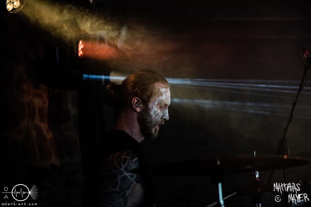 Das Festival eröffnen durften Nordblut, welche durch eine Absage und das nachfolgende Zuschauervoting in dem Billing nachrutschten. Die vier Österreicher, welche hier auch noch ihr Deutschlanddebüt feierten, legten von Beginn an ordentlich los. Der Nebel waberte unter dem Dach der Bühne hervor, während die vier sich melodisch, aber auch durchaus hart, durch ihre Songs spielten. Und da wir aufgeklärt wurden, dass „Kriegszeiten“ nicht billig sind und „die Schlachtzüge“ ja auch finanziert werden möchten, sollen doch alle fleißig Merch kaufen. Charmant verpackt wurde so die Bitte ein T-Shirt oder eine CD zu erwerben. Und da er gesehen hat, dass sich da schon zwei geschubst haben, wurde gefragt, ob nicht eine „Wand des Todes“ gestellt werden möchte. Leider fand das ganze keinen Anklang und so formte sie sich lediglich aus zwei Zuschauern. Sehr schade. Zum Abschluss gab’s mit Berserkerwut noch einen neuen Song auf die Ohren. Die Truppe kam gut an, auch wenn die Crowd noch etwas sehr verhalten war.