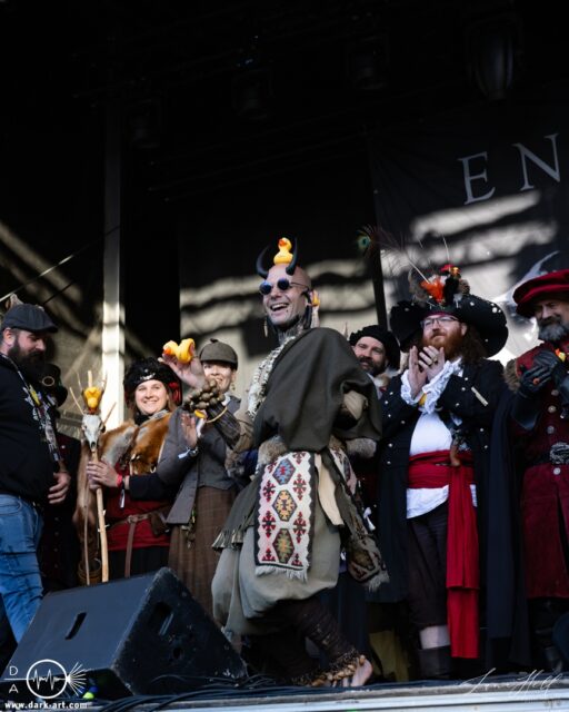 Nach der Folk-Award-Verleihung gab es noch eine kleine Kostümprämierung. Aufgrund des Gothic-Spezials hatten viele Besucher besonders aufwändige Outfits gewählt, die über das Festival hinweg immer wieder Aufmerksamkeit erregten. Nun wurden diese Looks offiziell gewürdigt. Es wurden sowohl Einzelpersonen als auch Gruppen ausgezeichnet, und die Bandbreite war groß: mittelalterliche, Gothic- und Fantasy-Kostüme waren gleichermaßen vertreten. Zum Abschluss durften sich drei Teilnehmer über kleine Merch-Geschenke vom Festival freuen, und alle weiteren Teilnehmer erhielten als Erinnerung ein Festival-Mediaval-Entchen.