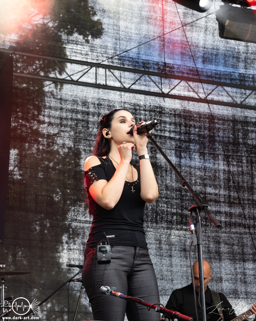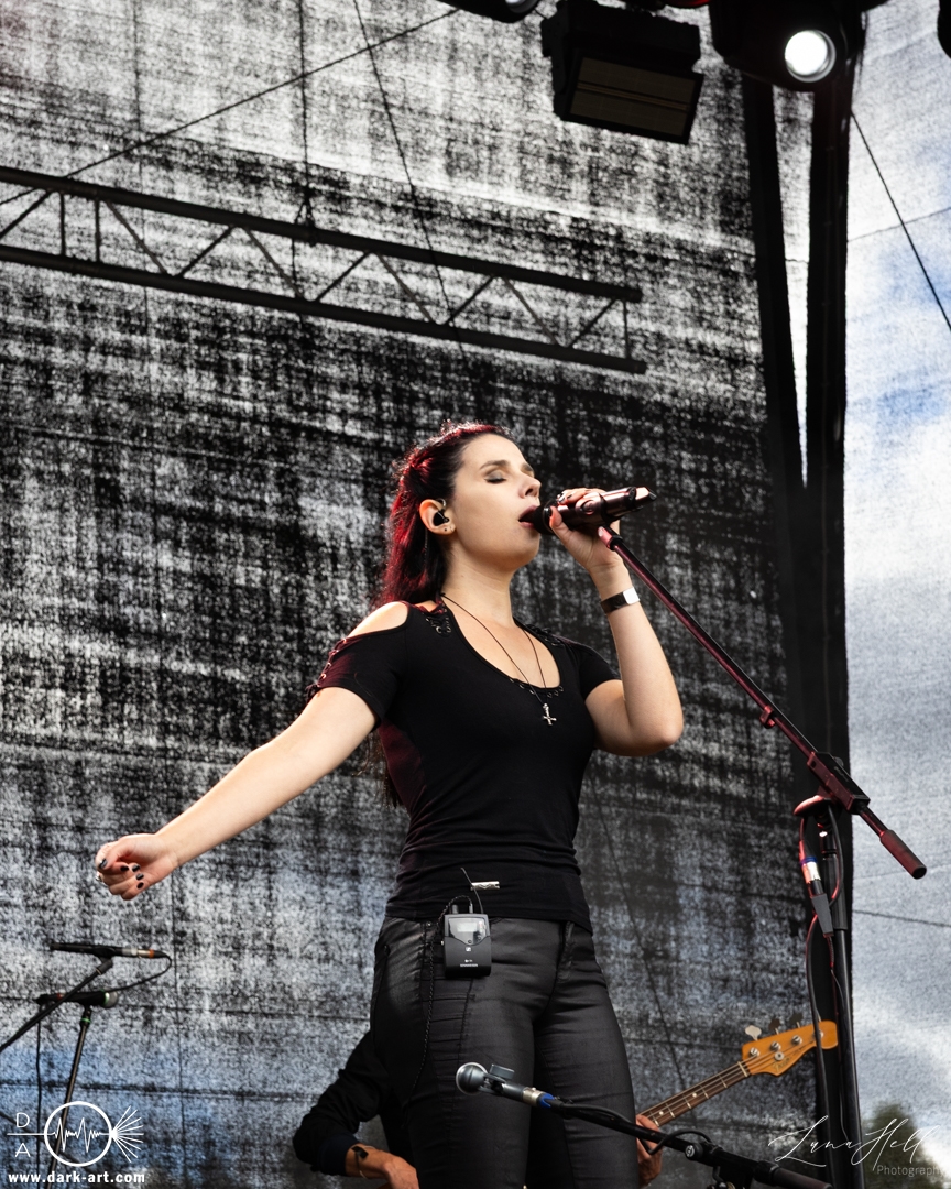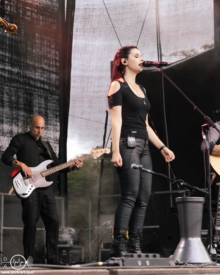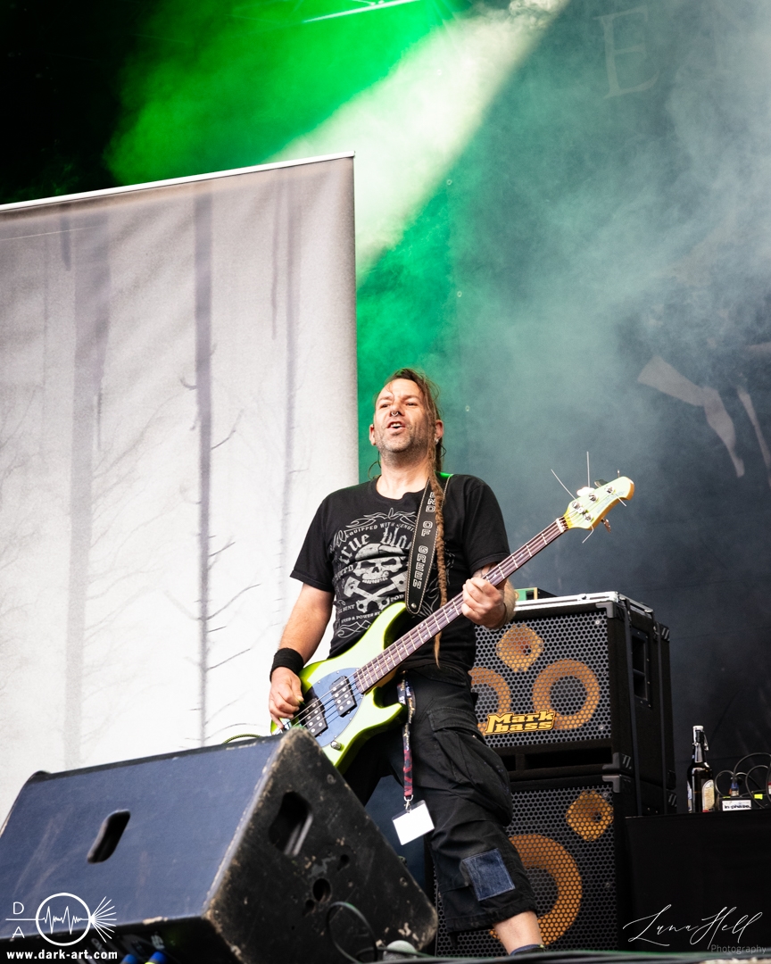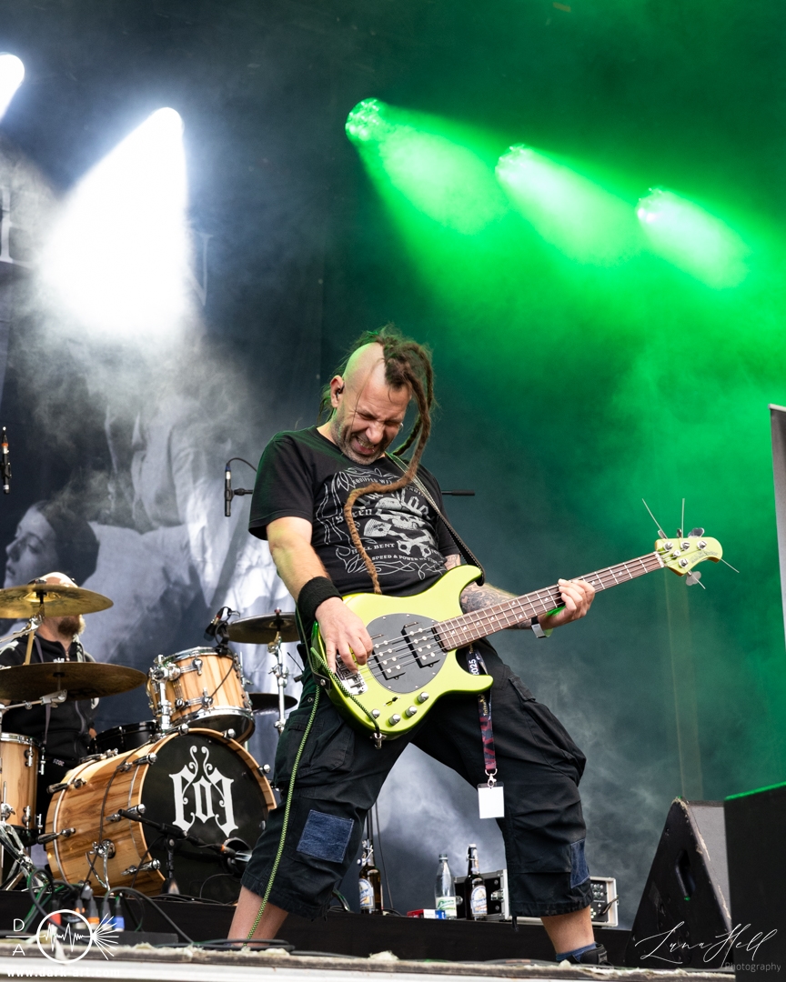 Auf der Burgbühne stand anschließend Delva auf dem Programm. Die Band bewegte sich musikalisch im Folk-Bereich mit einer eher atmosphärischen und erzählerischen Ausrichtung. Die Stücke wirkten ruhig und stimmungsvoll und setzten stärker auf Melodien und Atmosphäre als auf große Effekte. Passend dazu ließ sich zwischendurch immer wieder die Sonne blicken, was dem Auftritt eine angenehme, fast schon entspannte Stimmung verlieh. Vor der Bühne sammelten sich viele Besucher, die dem Set aufmerksam folgten und den Auftritt bewusst als Kontrast zu den lauteren Acts des Festivals wahrnahmen.