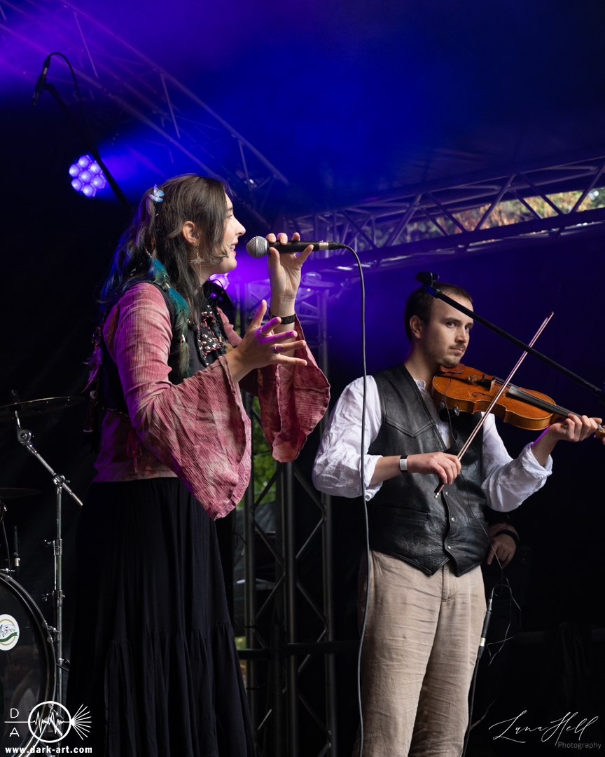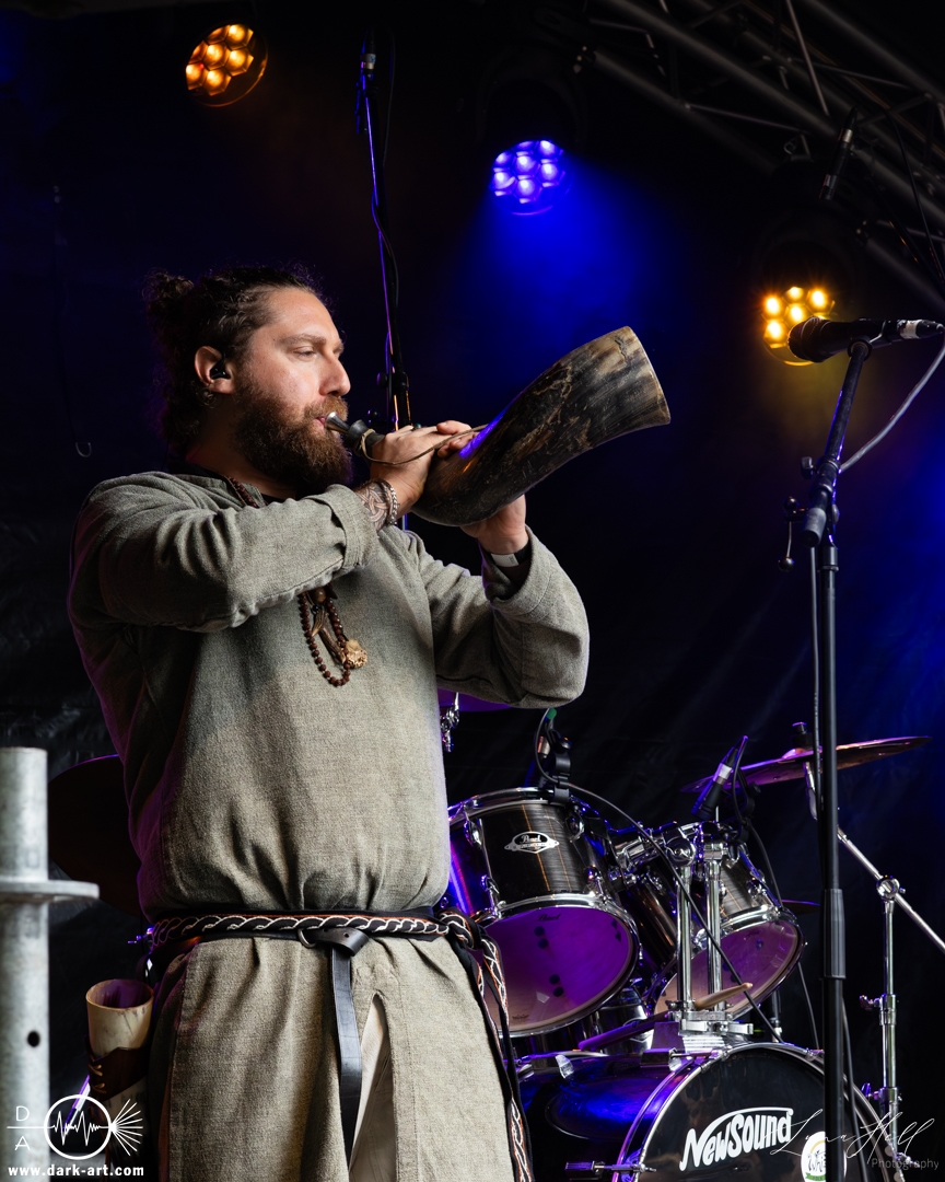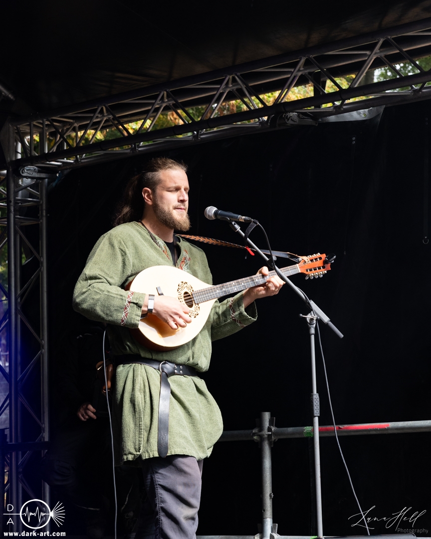 Als Nächstes stand Ragnarök auf der Theaterbühne. Der Auftritt war epischer und stimmgewaltiger angelegt, mit einem deutlich dichteren und kraftvolleren Sound. Die Band setzte auf markante Vocals und eine breite Klangkulisse, die dem Set eine dramatische Note verlieh. Vor der Bühne sammelten sich weitere Besucher, die den Kontrast zum vorherigen Act nutzten, um unterschiedliche Facetten des Folk-Spektrums kennenzulernen.