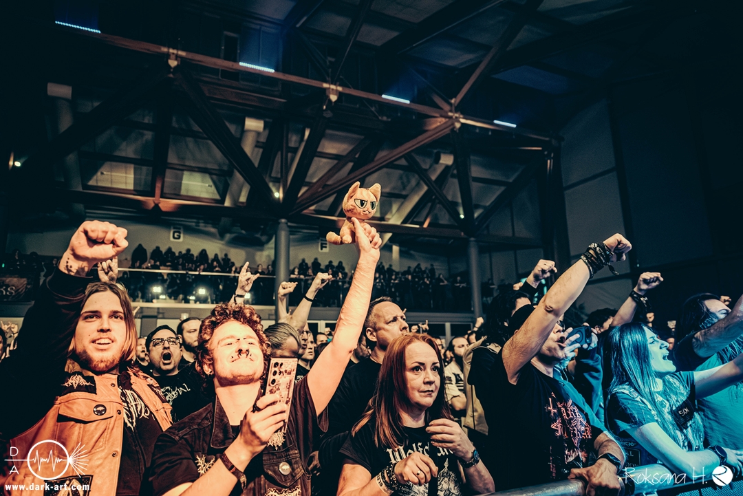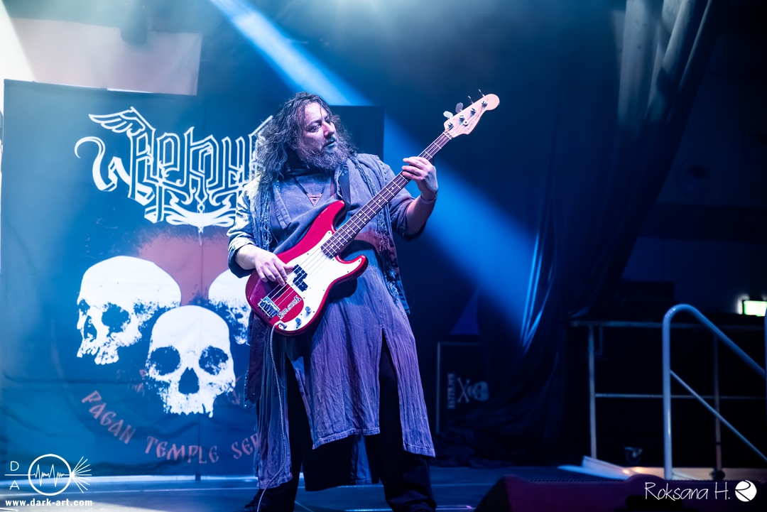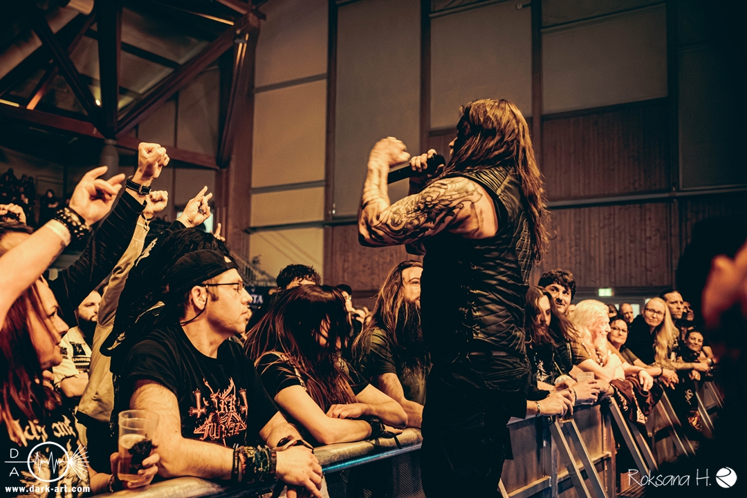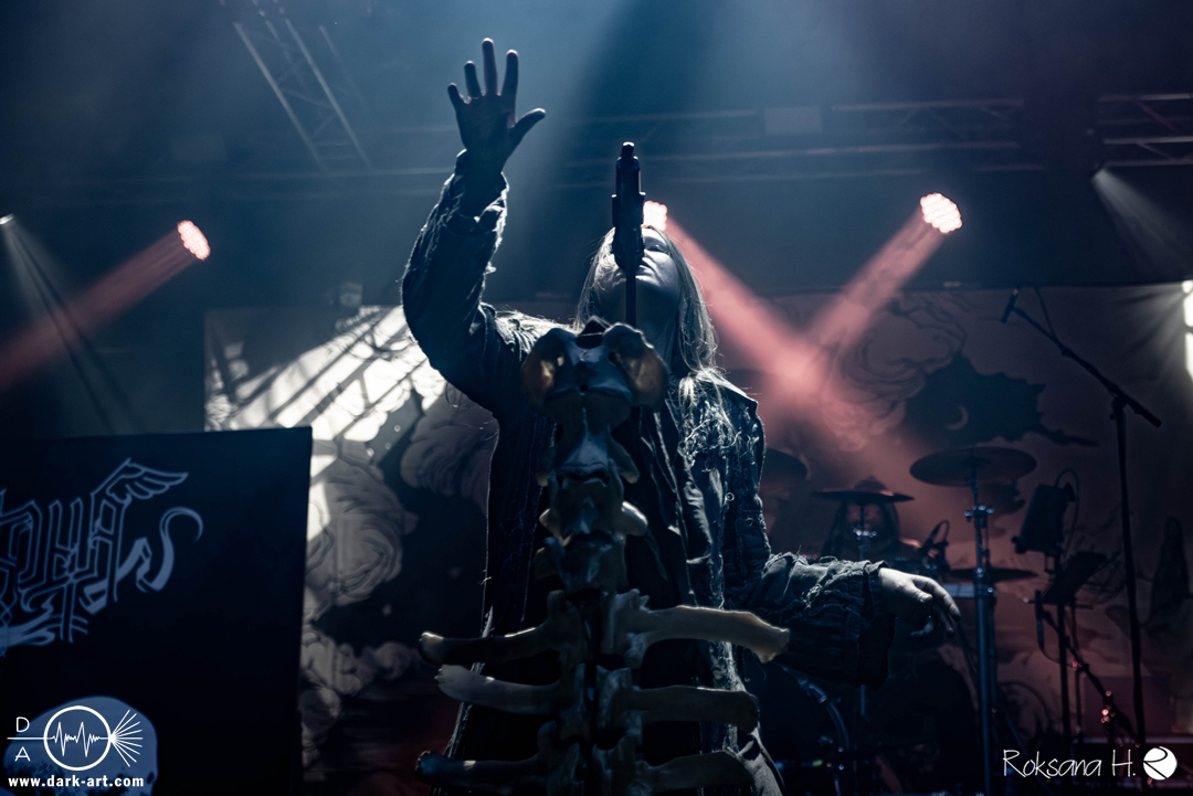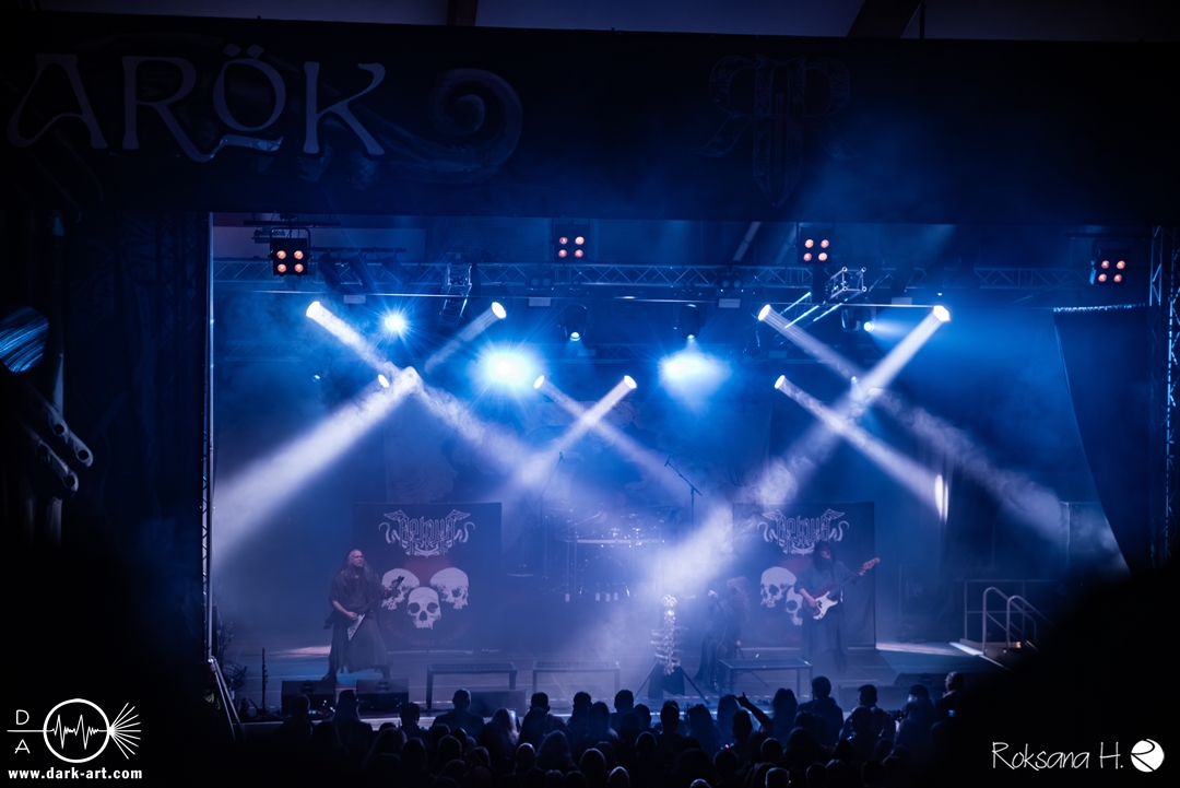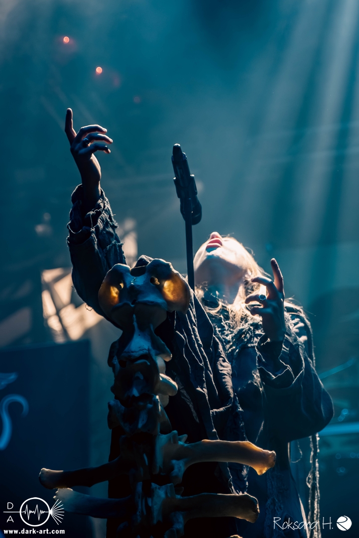 Ein atmosphärisches Intro nach Art eines ominösen Flüsterstimmen-Gewirrs aus einem verfluchten Brunnen ließ ein wenig Spannung aufkommen, bevor Arkona medias in res einen der wohl charakterstärksten und authentischsten Stürme musikalischer Landschaftsmalerei entfesselten. Die sichtbare Leidenschaft der Musiker:innen, inklusive großgestigem Hexentanz Mashas, mitsamt einer wirklich authentisch wirkender Besessenheits-Ästhetik in ihrer schönsten Form, erschien hier als absolut natürliche und nur konsequente Ergänzung eines Sets, das tendenziell die schwarzmetallischen Elemente betonte, ohne dabei seine Verwurzelung im spezifisch slawischen mythologisch-folkloristischen Bereich zu verlieren.
