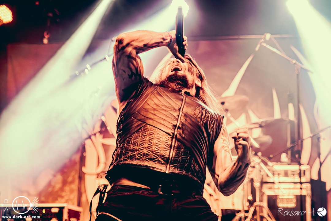 Mit freundlicher Begrüßung, warmtonigen Bannern auf der Bühne und klassisch epischem Intro nach Art einer Fantasyroman-Vertonung läuteten Nephylim ihr Set und den Beginn des diesjährigen Ragnarök Festivals ein. Sowohl musikalisch, als auch in der Bühnendramaturgie bot das vielleicht keine absoluten Überraschungen – muss ja aber auch nicht immer. Insbesondere als Opener zum „warm werden“ boten die Niederländer einen wirklich soliden Auftritt: Melodische bis heroisch-epische Parts mit Samples und Wechselgesang zum Mitklatschen und Hände heben gab es ebenso, wie Parts zum Headbangen und ein bisschen eskalieren. Und vor allem brachte die Band Motivation und gute Stimmung mit: Neben sichtlicher Freude am Musizieren und einer Prise klassischer Pagan-Posen-Theatralik war man auch um das Wohlergehen des Publikums besorgt („Wie geht’s? Gut? Haben Sie Bier? Ja? Dankeschön!“) und zeigte selbst bei der klassischen Werbe-Einlage Humor: „Support your favorite band! I mean, we’re not your favorite band – yet!“ Für nicht wenige Anwesende schien das mit „noch kein Favorit“ gar nicht so zutreffend zu sein – die Halle war zwar nicht gestopft voll (ist ja auch mal nett), aber die Menschen, die da waren, hatten sicht- und hörbar Bock.