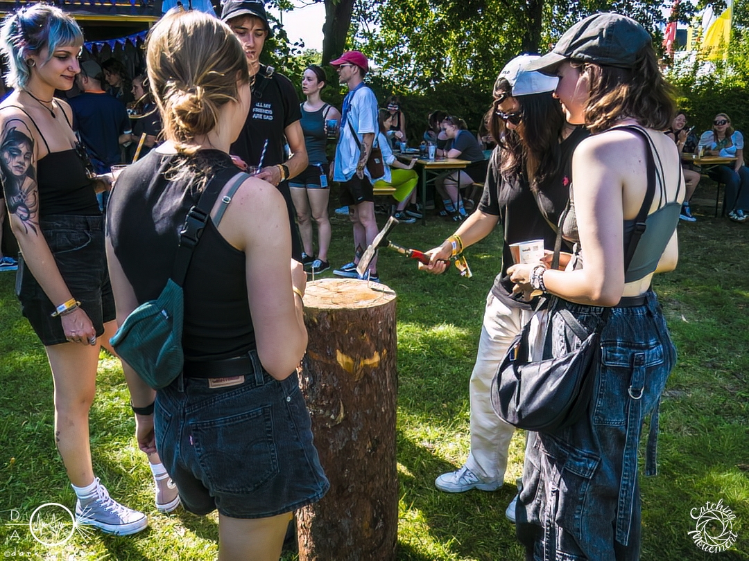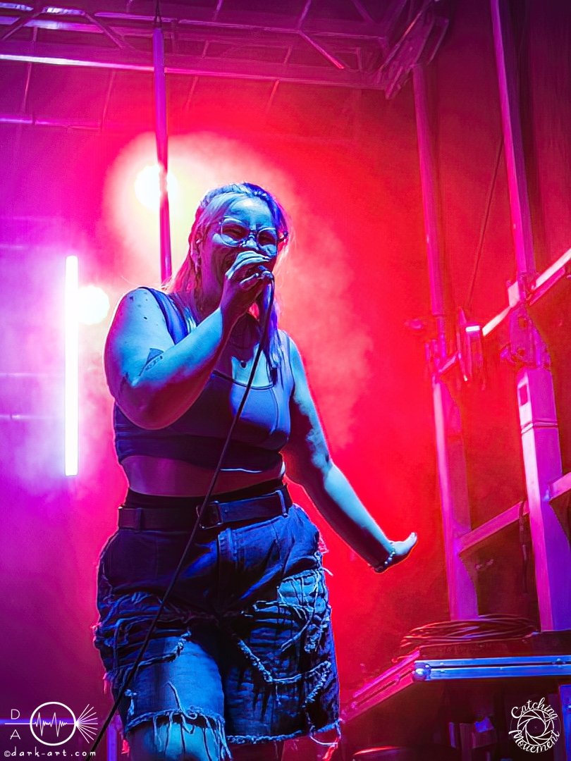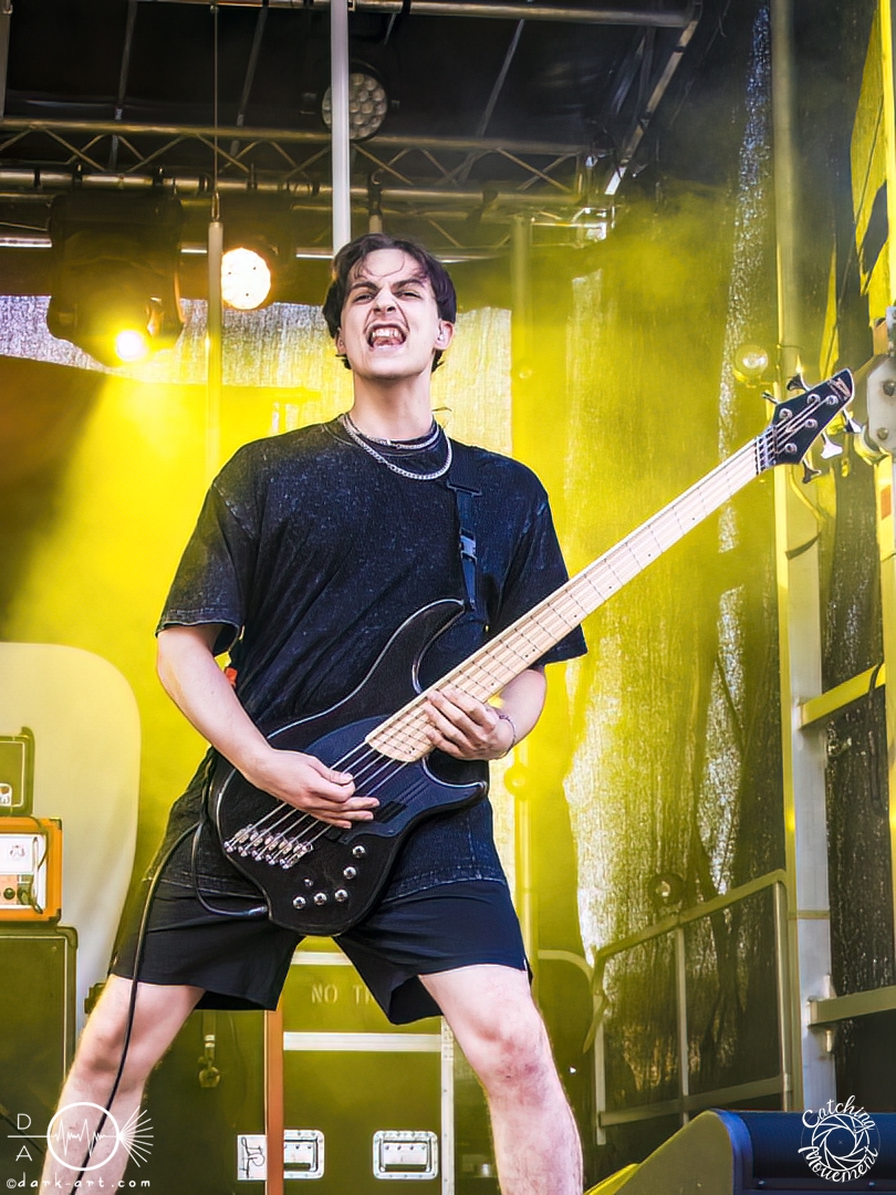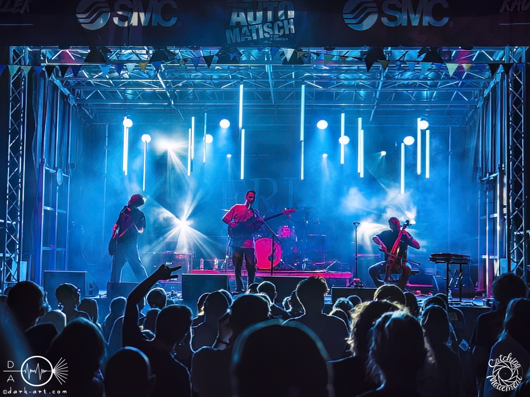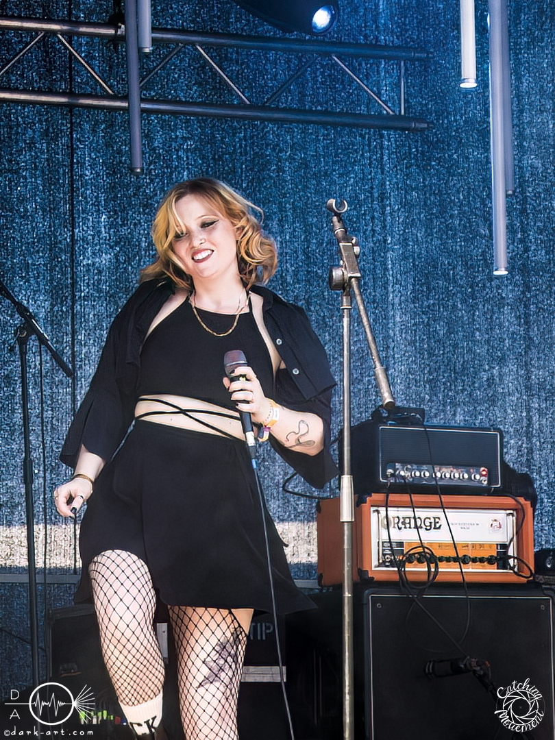 Lief bisher alles glatt, gab es nun zum ersten Mal technische Probleme beim Umbau vor dem Auftritt der Lokalmatadoren Watch me Rise. Mit etwas Verzögerung kamen sie dann aber auf die Bühne und legten direkt los. Auch verzichteten sie auf lange Ansprachen und ließen die Musik sprechen. Bis auf bei Wrong Way. Das Lied widmeten sie Carla und Ellen, eigentlich fester Bestandteil der RAK Crew und selbst Musikerinnen, welche aber seit einem Jahr, nach einer Covid Erkrankung, an ME/CFS erkrankt sind und die meiste Zeit ans Bett gefesselt sind. Ganz große Aktion. Insgesamt lieferten sie auf jeden Fall wieder ab, inklusive Bad in der Menge.