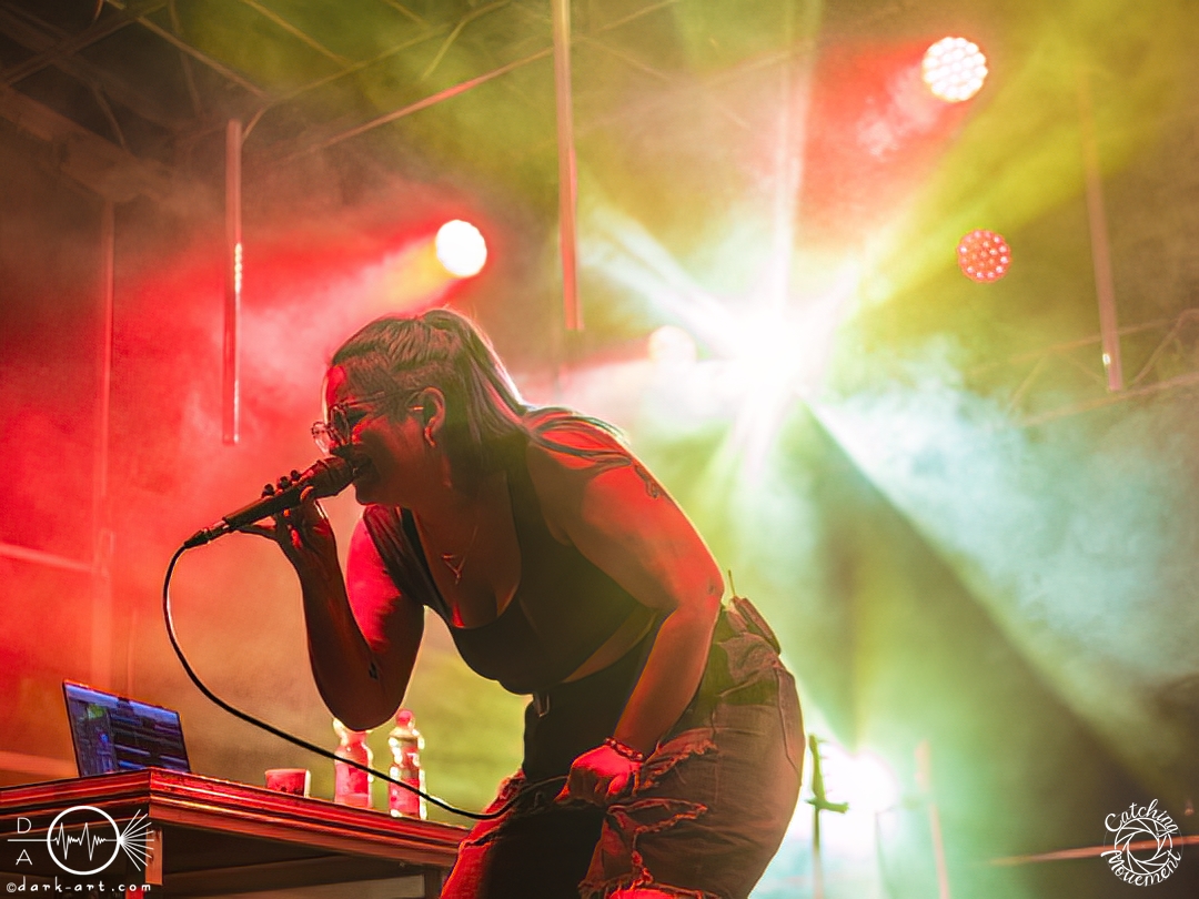 Um Zeit zu sparen wurde dann parallel aufgebaut, was möglich war, da Liser nur einen Tisch auf der Bühne brauchte, um ihren Laptop abzustellen, über welchen sie die Musik abspielen ließ, zu welcher sie rappt. Damit konnte sie dann auch relativ zügig loslegen, nahm die anwesenden Zuschauer direkt mit und konnte richtig begeistern mit ihren Texten und ihrer teilweise selbst ironischen Art. Zeit zum Luftholen gab es nicht, es musste ja Zeit aufgeholt werden. Aber man hat ihr angemerkt, dass es sie nicht störte und sie richtig Spaß dabei hatte. Unter großem Applaus ging sie dann wieder von der Bühne und gewann mit ihrem Auftritt bestimmt ein paar neue Fans.