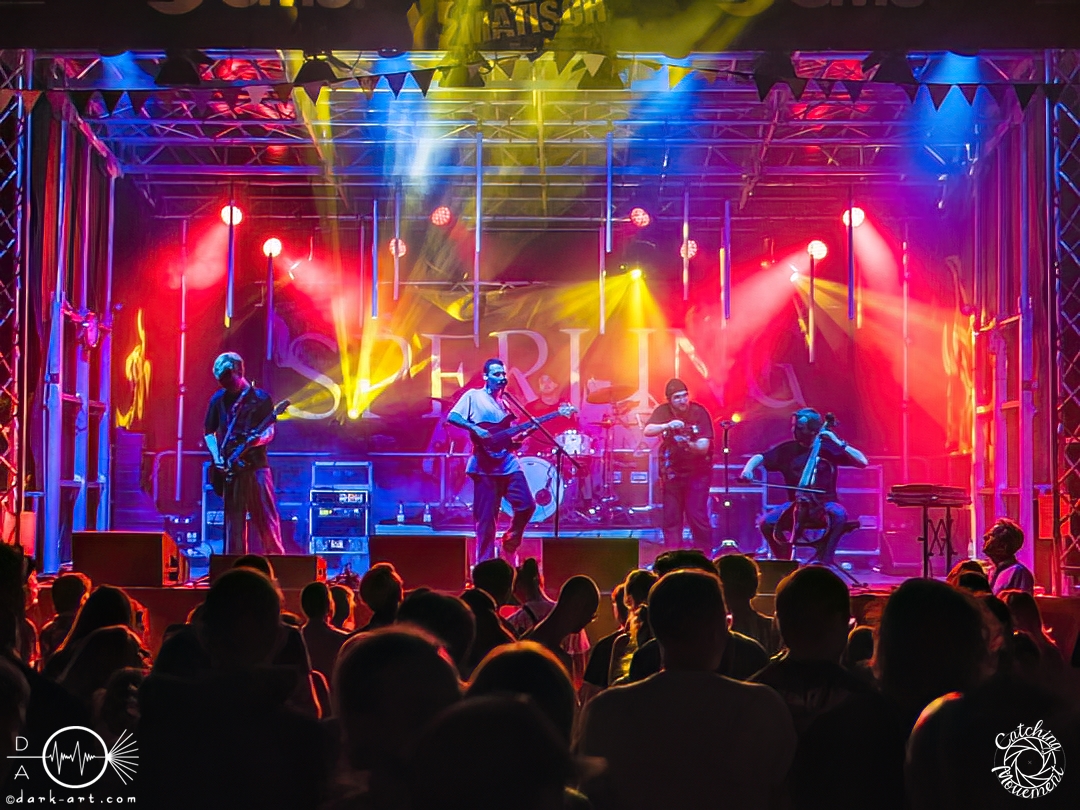 Langsam wurde es dunkel und Zeit für die national bekannteren Bands. Die Bühne wurde für Sperling vorbereitet und die Zahl der Sperling T-Shirts vor der Bühne nahm schlagartig zu. Unter großem Jubel betraten die Musiker den Ort ihres Schaffens und lieferten ab, wie es zu erwarten war und schon nach ihrem Auftritt auf dem Trebur Open Air zu erwarten war. Eine geniale Lichtshow, gepaart mit der passenden Musik und leidenschaftlich spielenden Musikern begeisterte die anwesenden Fans und Zuschauer zur Prime Time.
