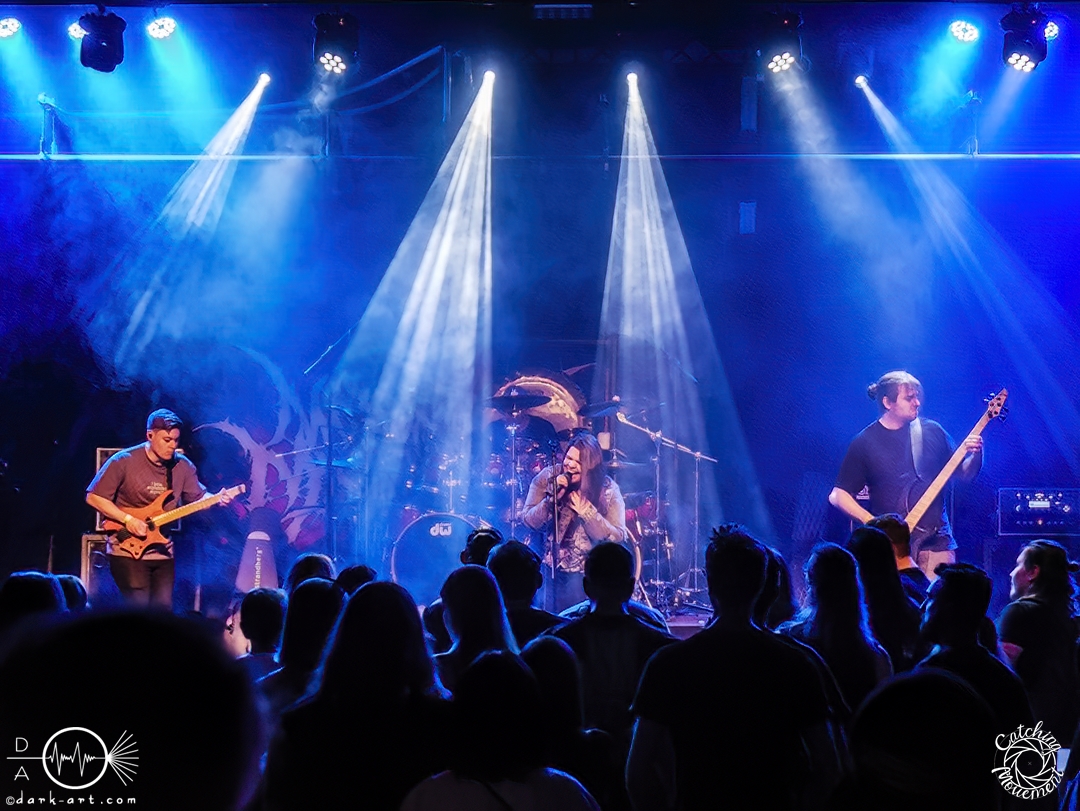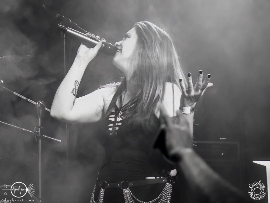 Langsam näherte man sich dem Ende, kam nun die drittletzte Band, Soulution. Wieder ins Progressive gehend, wie auch schon Ksara und Chased Crime vorher, wurde abgerockt und das Publikum mitgenommen, wie es sich gehört. Die Musiker und auch die Zuschauer hatten Spaß und beim letzten Lied überließ Sängerin Vanessa die Band ihren Kollegen, ging in die erste Reihe und feierte zusammen mit den Fans.