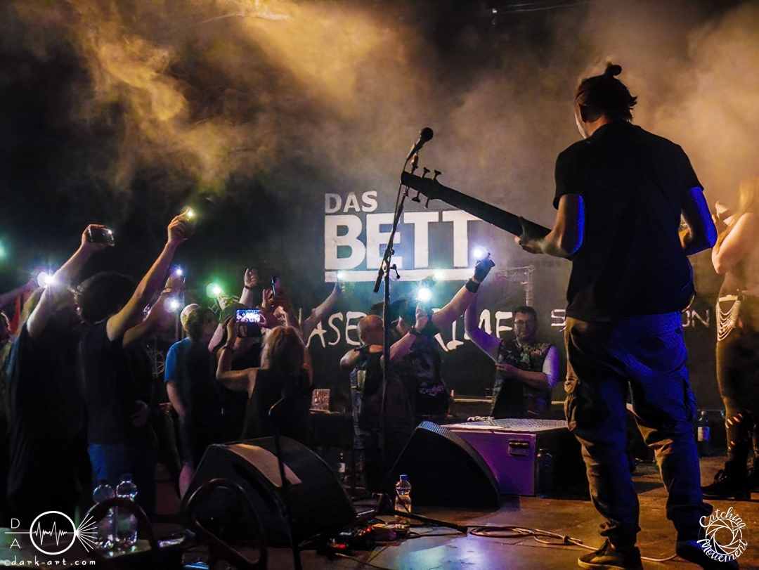 Als Letztes kam dann die einzige internationale Band, Monument of Misanthropy. Eine Band aus Österreich und England, welche mit ihrem Brutal Death Metal doch etwas herausstachen. Vermutlich auch geschuldet an der späten Uhrzeit waren nicht mehr so viele Zuschauer in der Halle, was die Band aber nicht störte, welche ordentlich ablieferte. Sie brachten sogar eine der Mitarbeiterin vom Bett dazu, in Death Metal Manier ihre Haare vor der Bühne fliegen zu lassen.