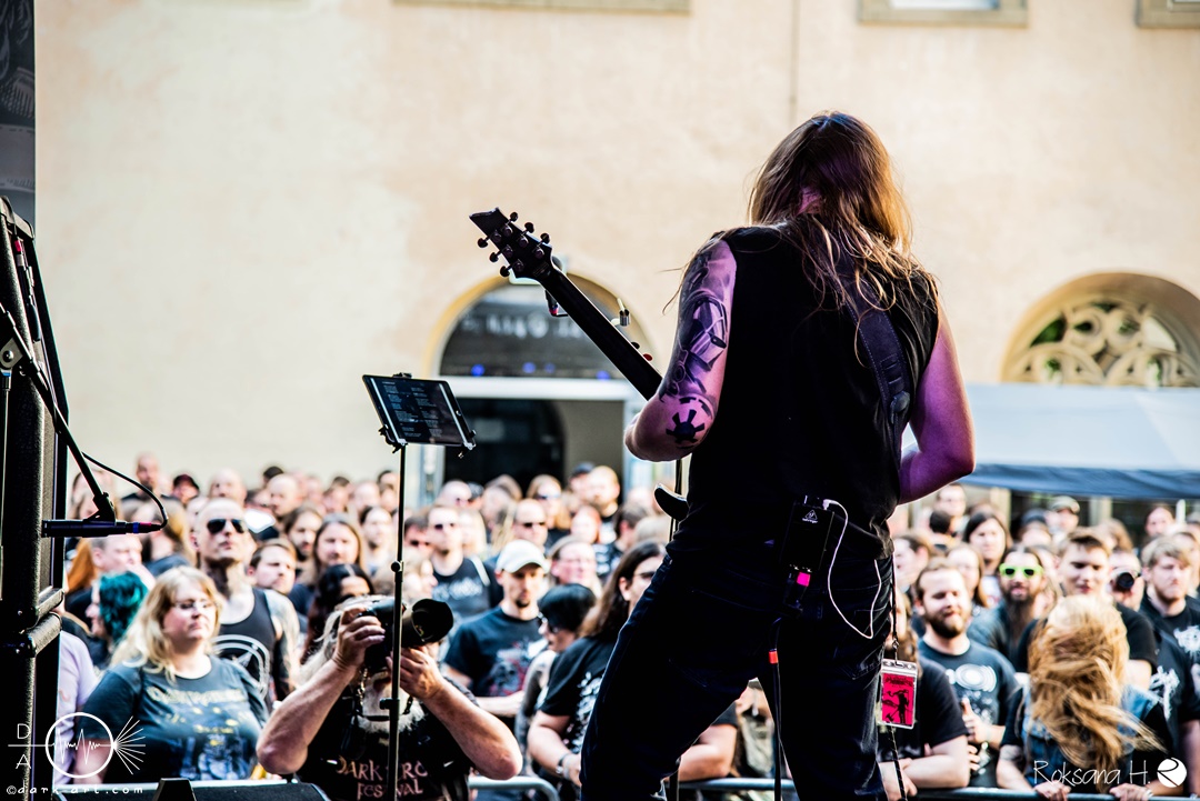 Dark Oath war für mich persönlich das Highlight des Tages. Die im Jahr 2009 gegründete portugisische Truppe, rund um Frontfrau und Sängerin Sara, waren nicht nur die einzige Female Fronted Band sondern begeisterten auch mit ihrem Sound. Wunderbare Melodien, gepaart mit den tiefen Growls – zwischendurch mal wieder schnellere Parts machten das ganze zu einer runden Sache und luden zum Headbangen ein, welches auch ausgiebig von der Crowd praktiziert wurde. Ihre Musik beschreiben sie selber als Epic Melodic Death Metal, welches ich so direkt unterschreiben würde.