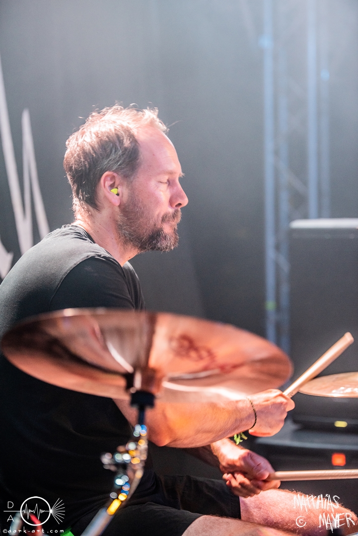 Bei Außerwelt ging es dann wesentlich enstpannter zu. Das Fünfergespann aus Münster spielt eine Mischung aus atmosphärischem, trotzdem teilweise dynamischen Post Black Metal, welcher mit Einflüssen aus dem Melo Death oder Doom Metal gespickt ist. Trotzdem schafften sie es, das Publikum zum Headbangen zu animieren, auch wenn es sich viele Gäste bereits an den seitlichen Sitzgelegenheiten gemütlich gemacht hatten. Die Stimmung war trotzdem ausgelassen und alle anwesenden sichtlich begeistert, dass das Festival wieder stattfinden durfte.