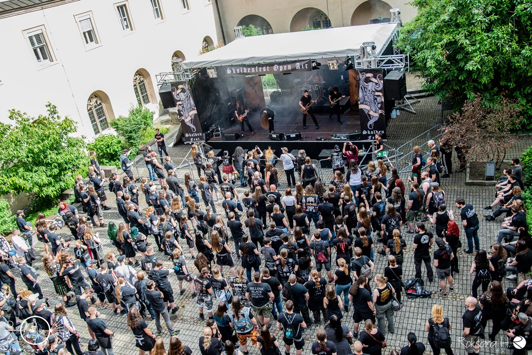 Das Skaldenfest 2022, das nach zwei Jahren Zwangspause zurück im Kilianeum in Würzburg ist, welches auch das „Haus der Jugend“ genannt wird, ist ein ehemaliges Kloster. Umso ironischer ist es, darin ein Black/Folk/Pagan Festival stattfinden zu lassen. 2020 war das Line-Up bereits geplant, nach der Verschiebung auf 2021 wollte das Festival einen weiteren Tag vornedran hängen. Der kleine Skaldenfest Freitag mit drei Bands musste nach der Verschiebung ins Jahr 2022 jedoch wieder abgesagt werden. Wie auch schon die vorherigen Veranstaltungen, galt das fünfte Skaldenfest als ausverkauft, auch wenn man das an dem anwesendem Publikum kaum behaupten konnte. Ungefähr hundert Besucher haben die Veranstaltung trotz gekauftem Ticker nicht besucht. Dies tat dem ganzen Tag jedoch keinen Abbruch, außer das diese Leute auch nichts konsumiert haben, was sich negativ auf die Abrechnung geschlagen hat.