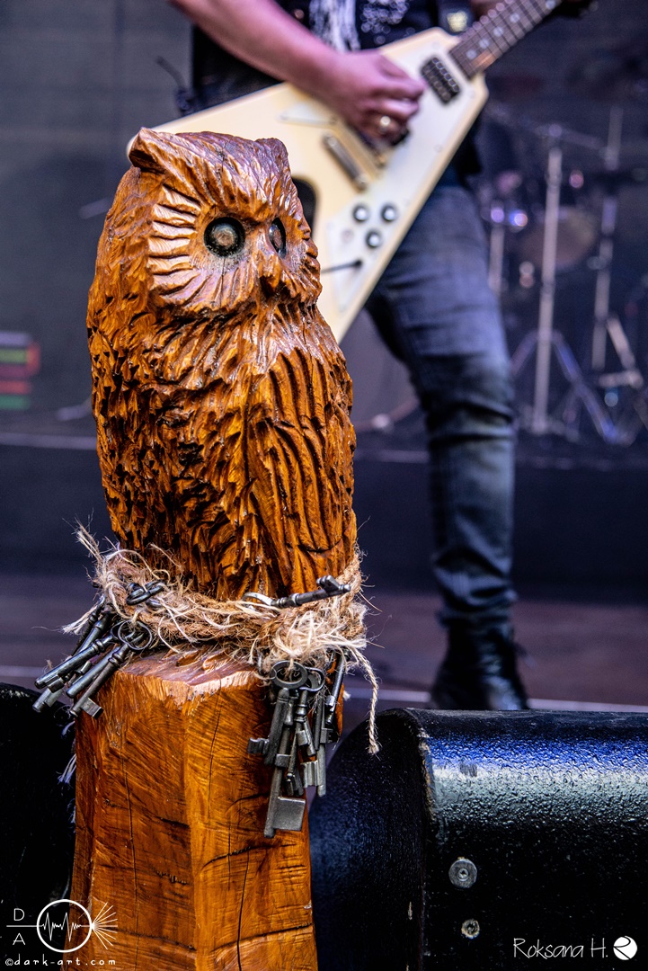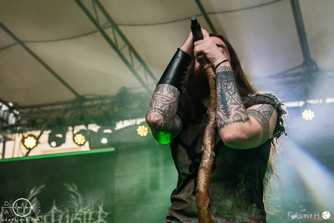 Wohin die Reise bei Waldgeflüster geht, zeigte schon die naturverbundene Bühnendeko. Astmikrofonständer und beidseitig grössere Äste, die wie Mobiles aufgebaut und mit allerlei kleinen Tierschädeln und Knochen behangen waren, machten dies zu einem echten Hingucker. Melodischer, manchmal auch melancholischer düsterer Black Metal mit Texten, die von dem Respekt und der Achtung gegenüber der Natur handeln. Dies kam auch bei dem anwesenden Publikum sehr gut an. Auch hier wurde wieder ausgiebig geheadbangt und mit geklatscht, bevor Waldgeflüster dann leider auch ihren Auftritt beenden mussten, um die Bühne für den Headliner des Tages zu räumen.