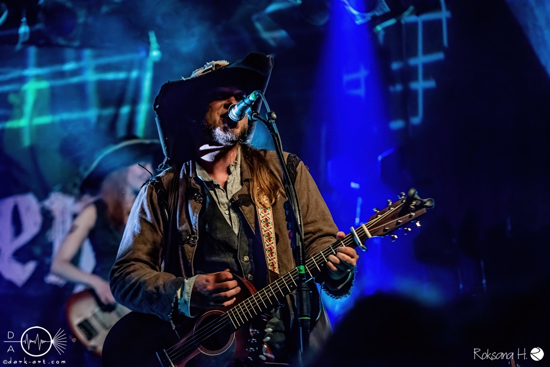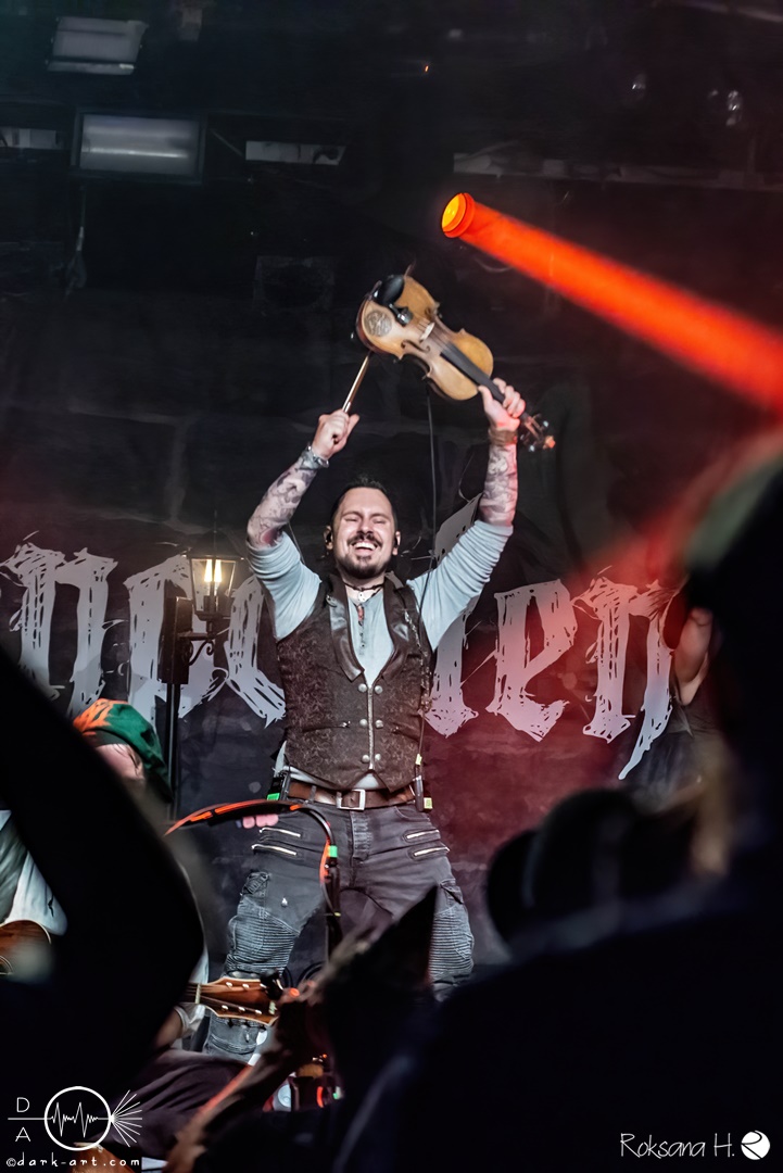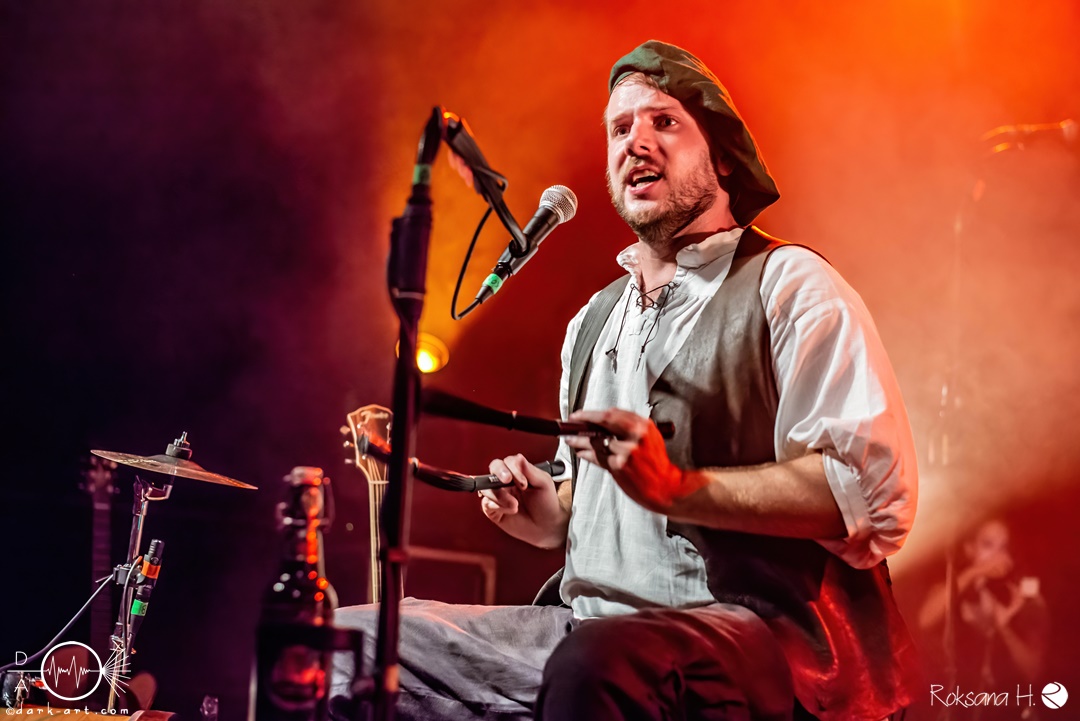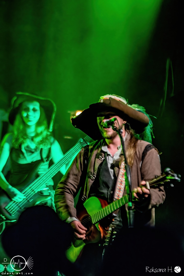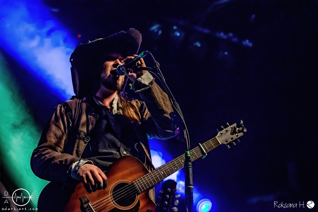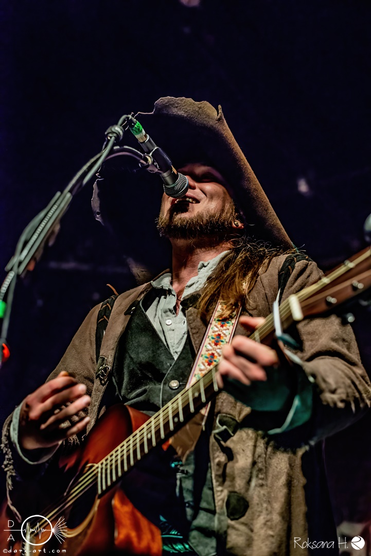 Unter lautem Klatschen betraten die Gossenpoeten zügig die Bühne. Zuerst gab es ein Geburtstagsständchen vom Publikum. Dann legten sie auch schon mit Wir sind Gossenpoeten los. Die begeisterten Zuschauer waren von Anfang an bei der Sache. Schon waren fleißige Ruderer am Boden. Bei ihrem Programm des Abends fingen die Gossenpoeten mit dem ältesten Material an und arbeiteten sich chronologisch zu den neuesten durch. Bei den Ansagen zwischendurch erzählte Darian der Dichter, dass sie bereits jedes Bandjubiläum im Hirsch zelebrierten. Auch forderte er Applaus für die Techniker im Hintergrund. Das Publikum kam der Forderung sehr gerne nach. Beim Trinklied holten sie nochmal den Modest Boozer auf die Bühne. Doch damit nicht genug, bei Geiger kam ein weiterer Überraschungsgast auf die Bühne, Matze von Tir nan Og.