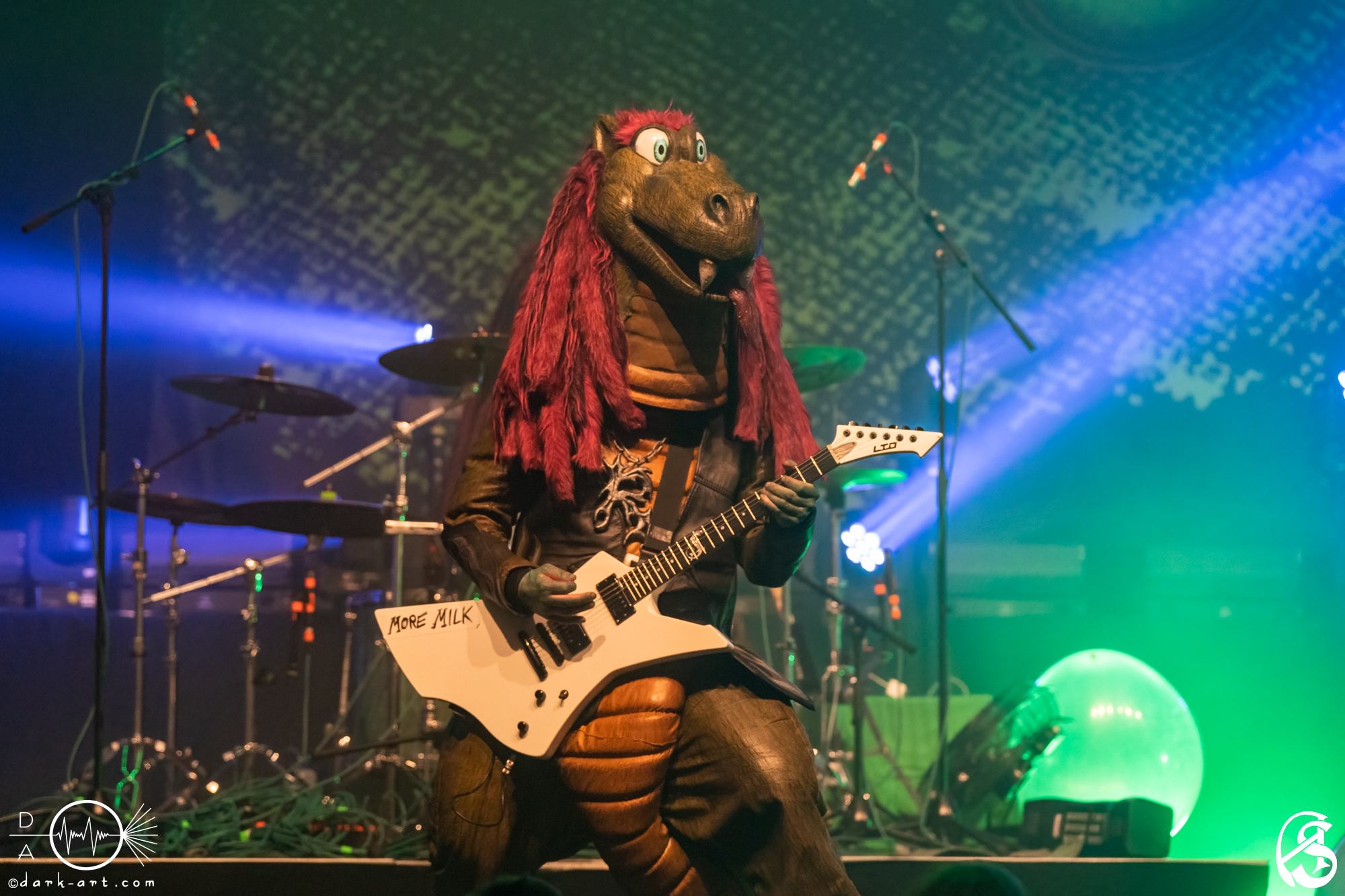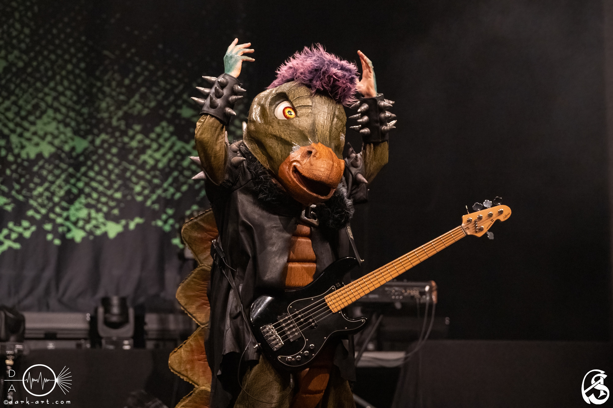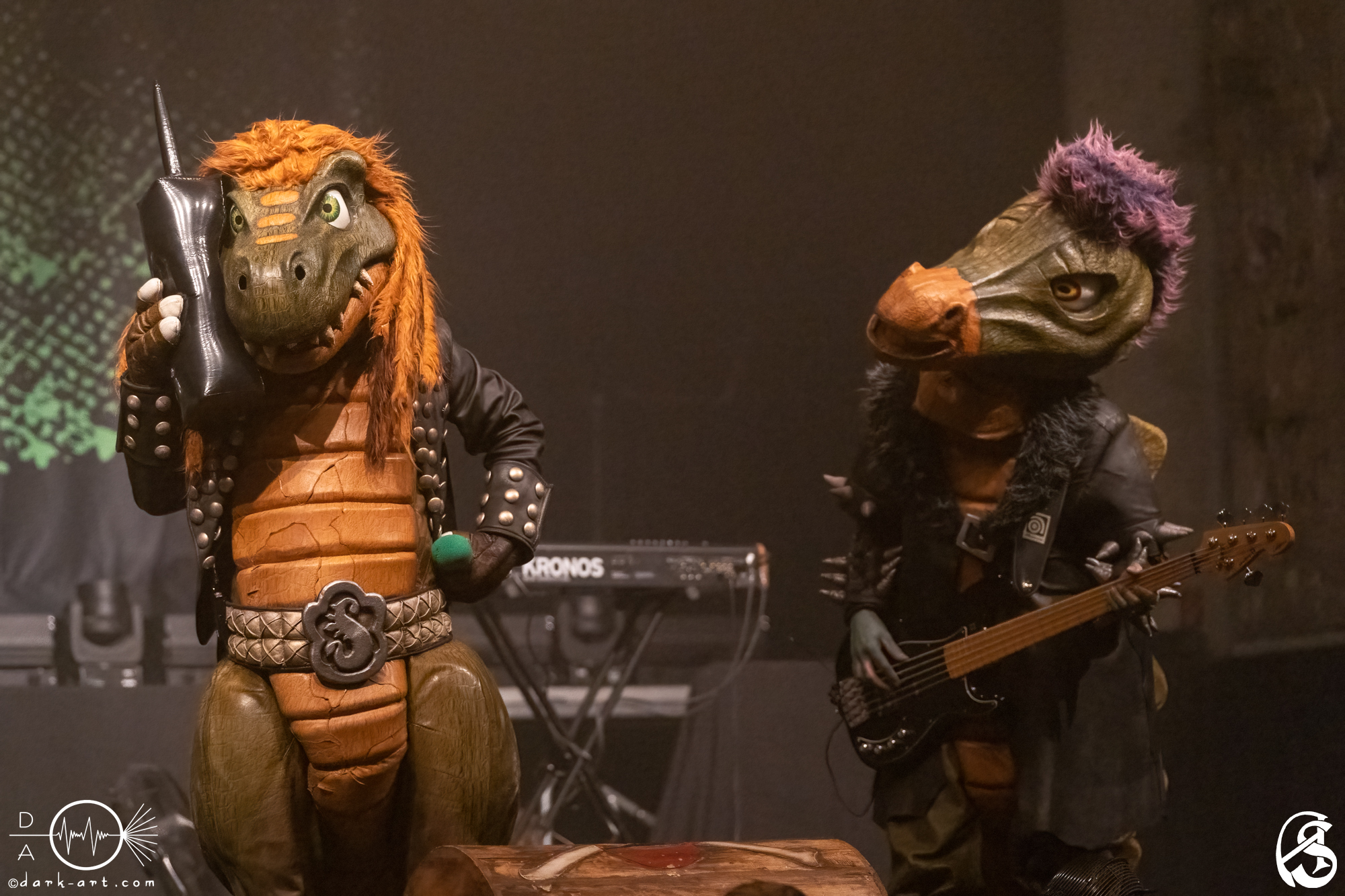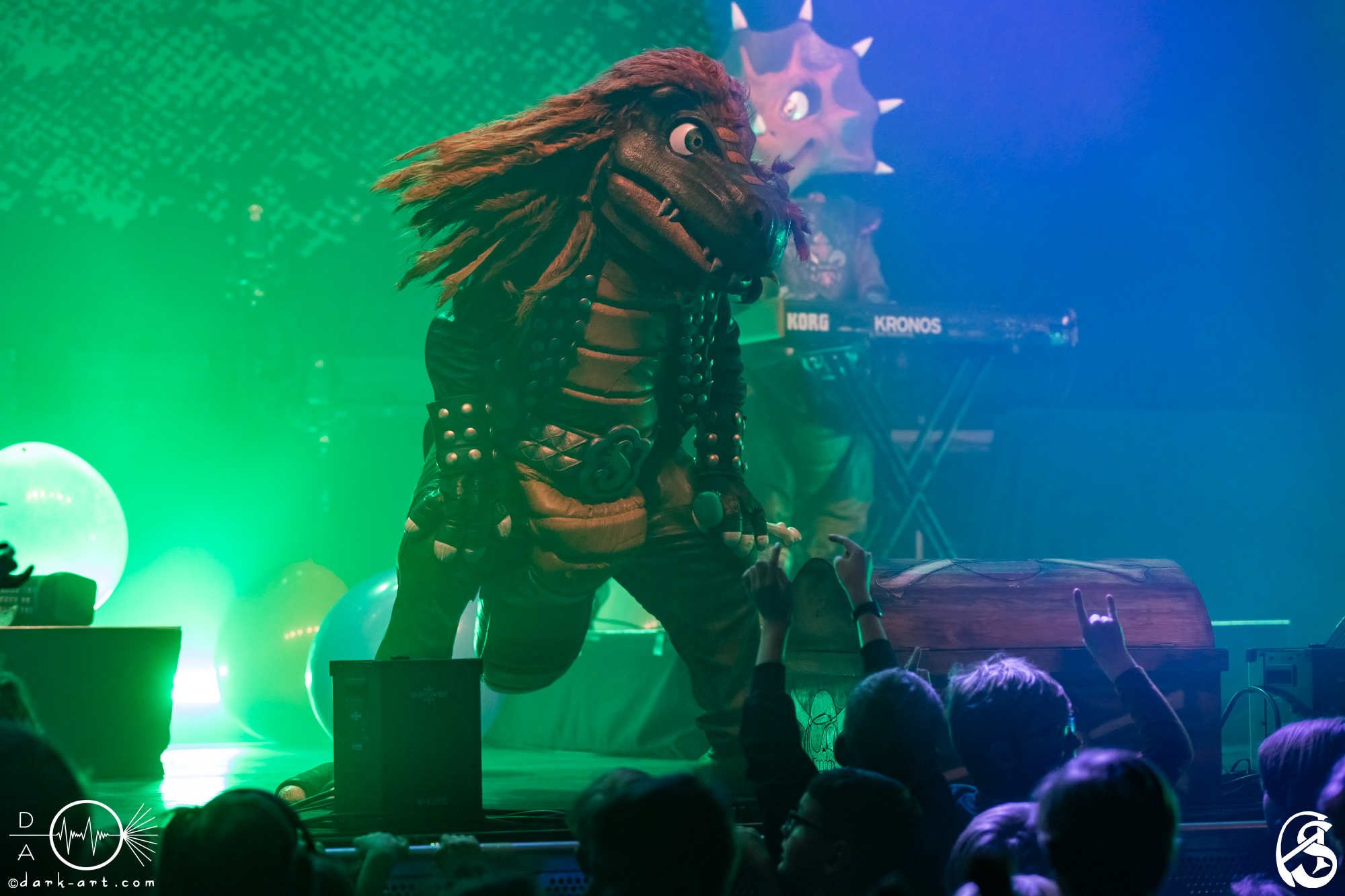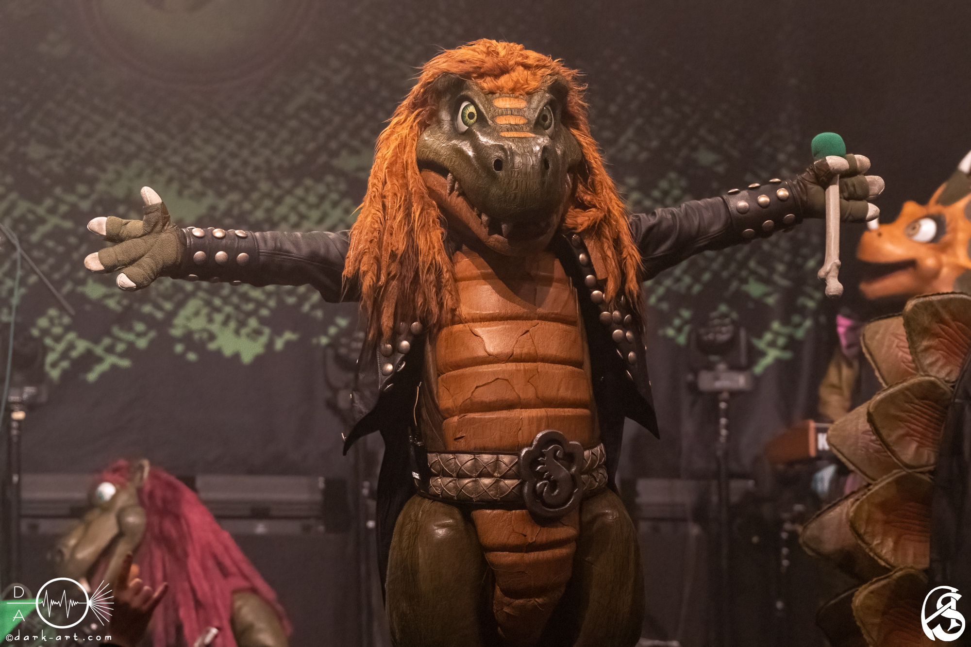 Vor 65 Millionen Jahren sind die Dinosaurier restlos ausgestorben. Restlos? Nein! Vier Dinos haben überlebt und unterstützen Eltern mit Kutten bei der musikalischen Früherziehung ihrer Kinder. Dabei werden sie sogar von einem Drachen unterstützt (hört hört, liebe Blind Guardian-Fans, ein Drache!). Diese schuppigen Rockstars sind nach Berlin gestampft, haben für Groß und Klein ein Konzert abgeliefert und wir von Dark Art waren live dabei.