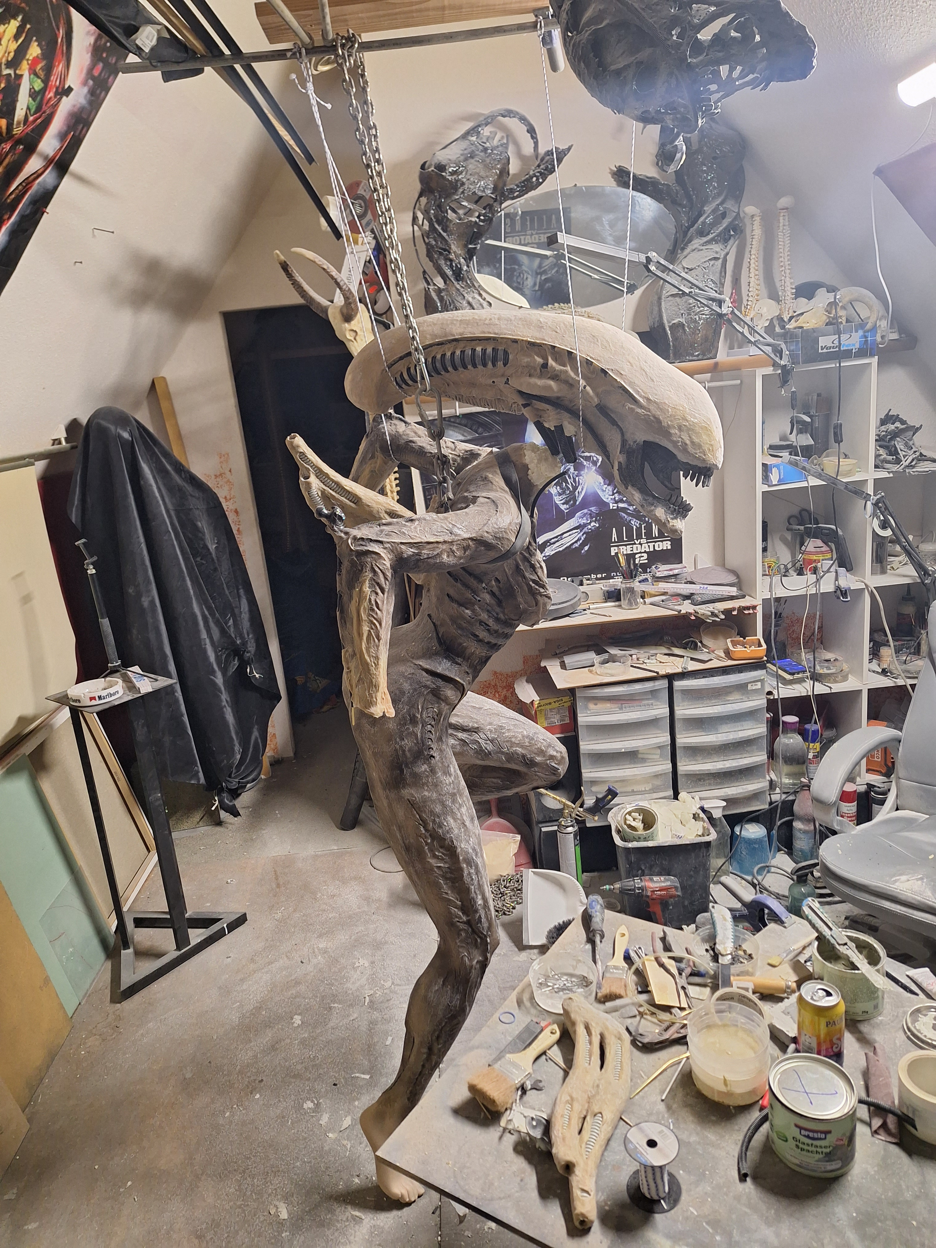 Das Alien III Projekt zum Beispiel dauerte 3 Monate. In der Zeit sind 6 Wochen reine Arbeit an der Skulptur. Der Rest dann wie immer an Wochenenden.