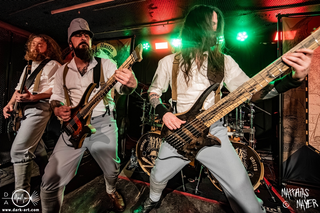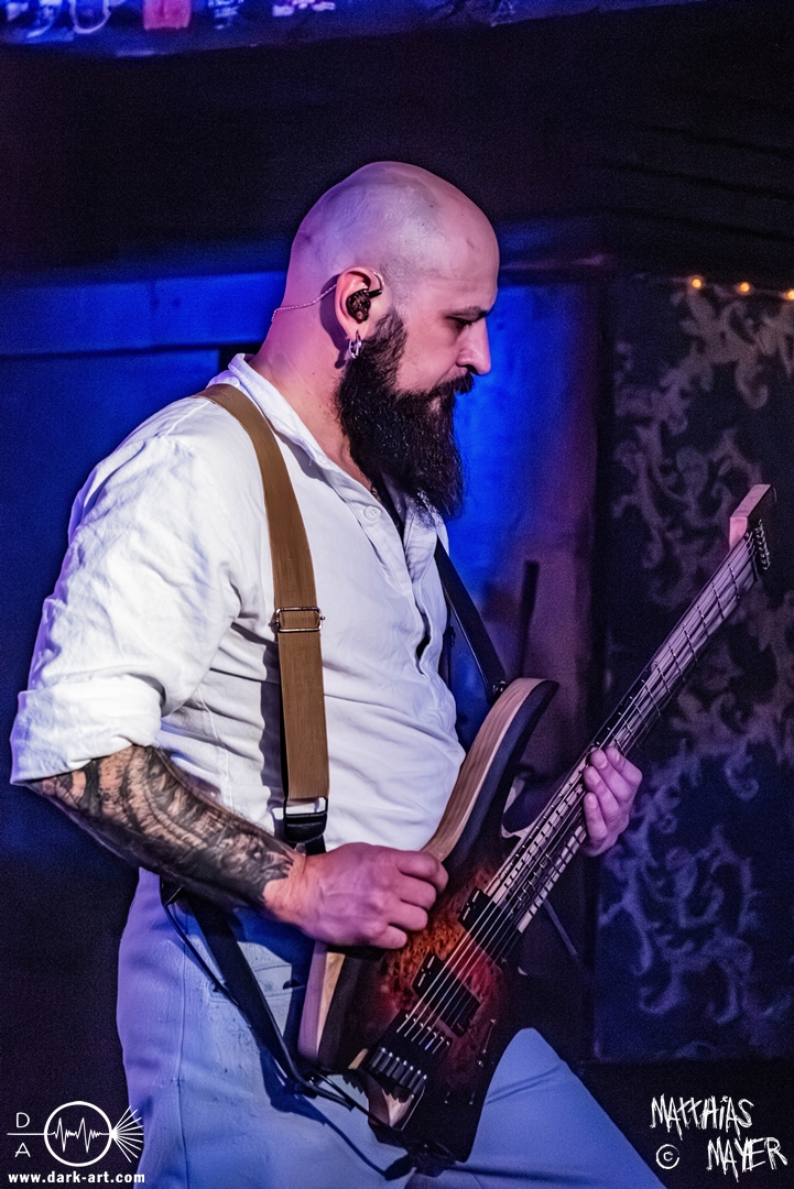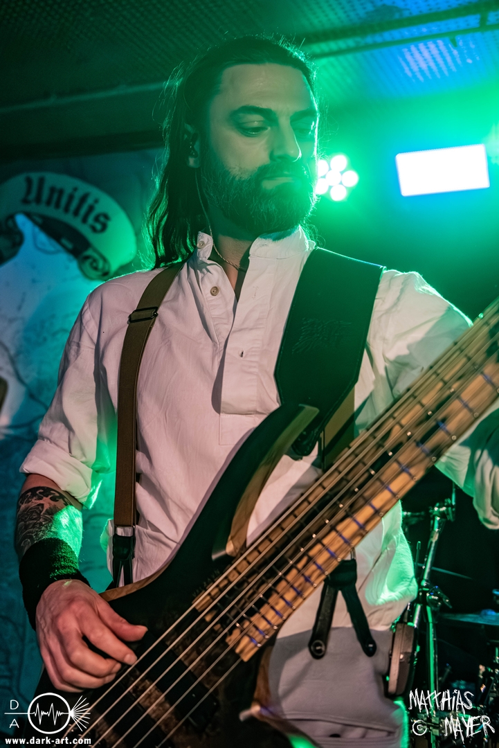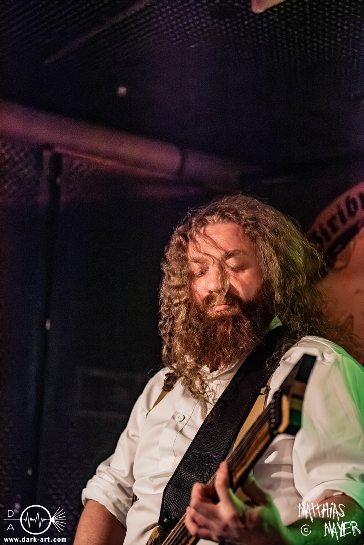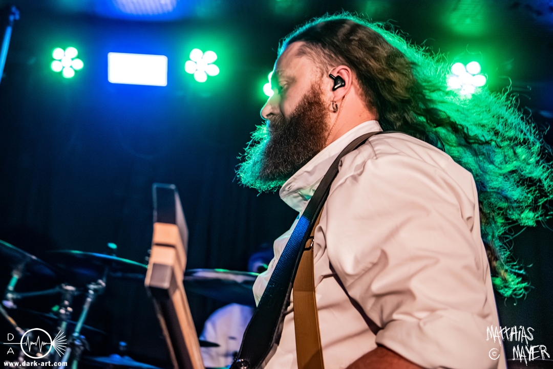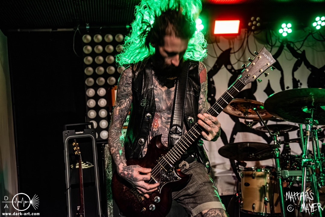 Schon bevor Katla die Show begann, zeigte sich ein ungewöhnlicher Bühnenaufbau, denn vorne stand zentral ein zweites Schlagzeug, denn Rasmus Bang übernimmt sowohl den Leadgesang als auch das Schlagzeug. Im Verlauf von sechs Songs präsentiere das Trio aus Dänemark einen sehr starken drückenden Sound, der gut beim Publikum ankam. Neben Musik mit klarer Message gab es aber auch eine klare politische Kante in den Ansagen, in denen sich die Band wiederholt gegen Krieg und Tyrannei stellte. Nach der Absage im letzten Jahr freute sich die Band besonders, nun zum dritten Mal zusammen auf Tour gehen zu können, und für den Song Dead Lover wurden sie an diesem Abend auch von Oleksa von 1914 an der zweiten Gitarre unterstützt. Die Musiker freuten sich auch, zurück im Nachtleben zu sein und dass einige Besucher sie schon auf früherer Tour mit Crypta gesehen hatten. Das Set endete mit dem Song Dragonlord, der, wie die Band feststellen musste, in Deutschland für einige ungewollte humorvolle Momente sorgte. Zu Beginn des Songs kippte Rasmus auch noch sein Bier über die Felle, von denen es beim Spielen hochspritzte.
