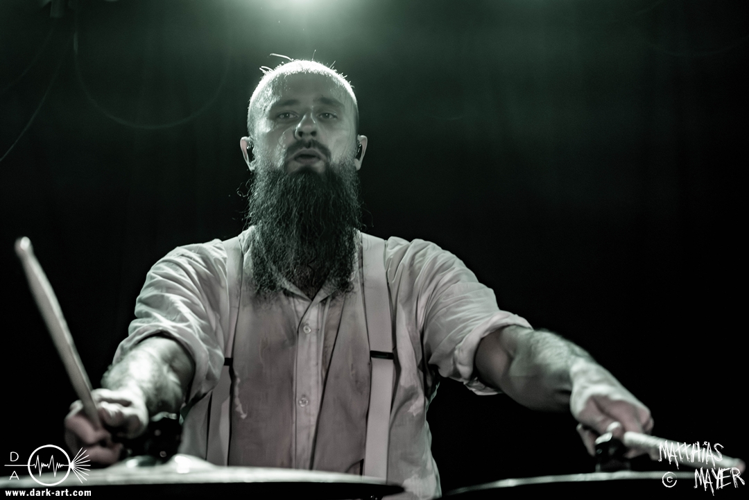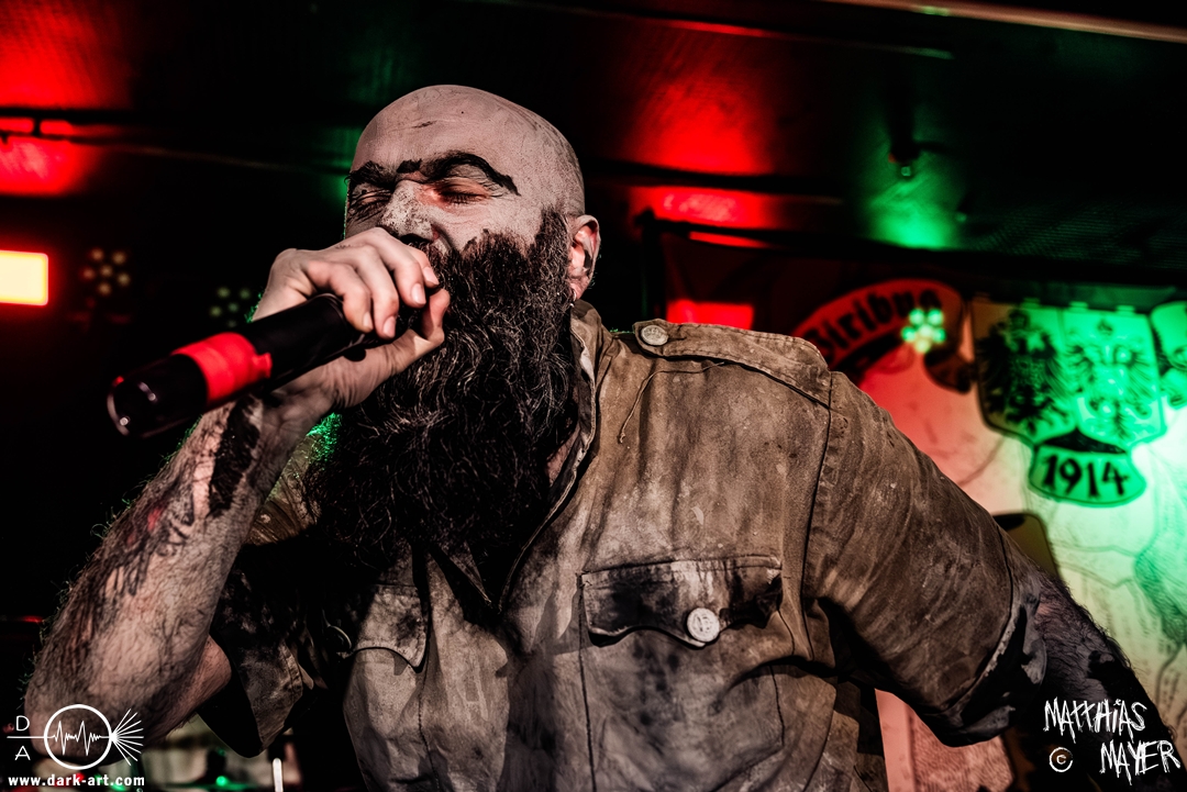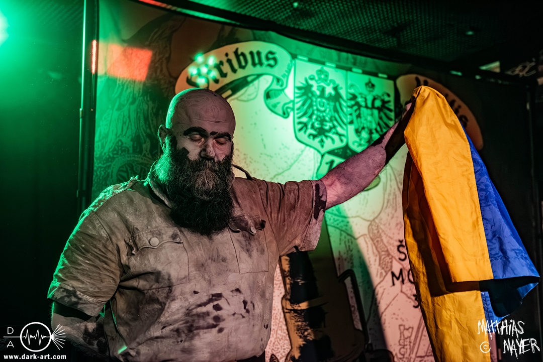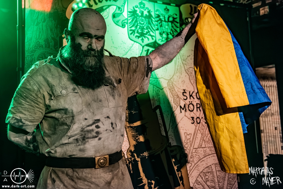 Nach einem kurzen Umbau erklang dann schon die österreichische Kaiserhymne als Intro, zu der die Band die Bühne betrat und dann direkt mit FN .380 ACP#19074 und Vimy Ridge (In Memory of Filip Konowal) losschoss. Von der ersten Minute an überzeugten die Ukrainer mit einem unglaublich intensiven Sound und der starken Präsenz des Frontmanns, der sich beim zweiten Song schon in das Publikum begab.
