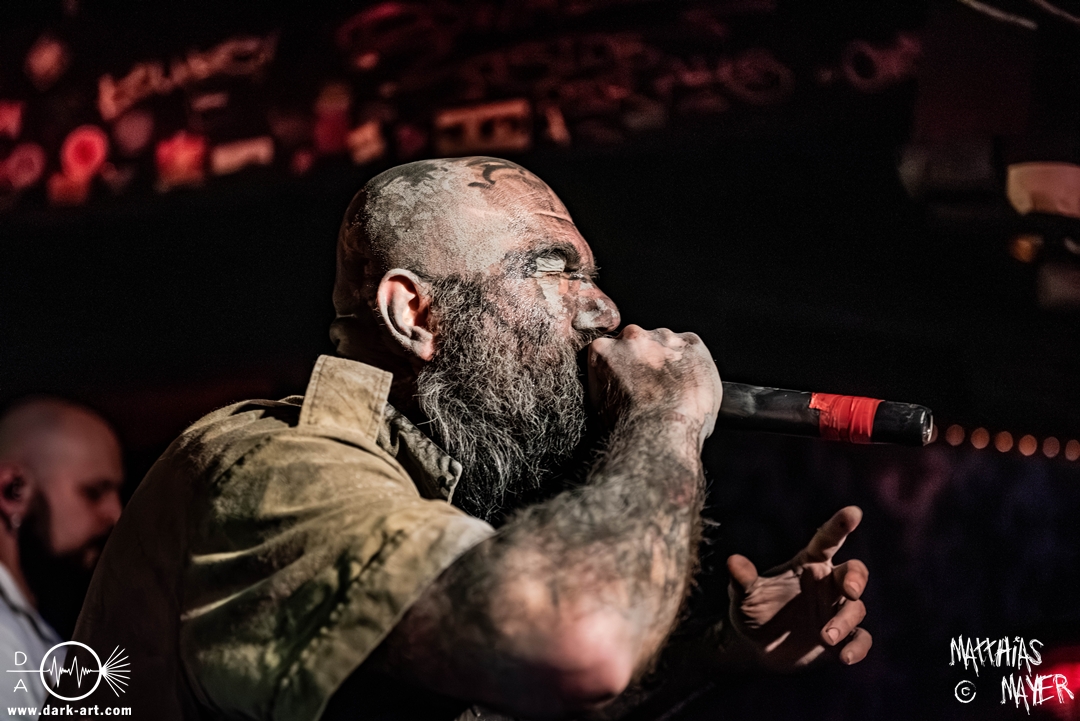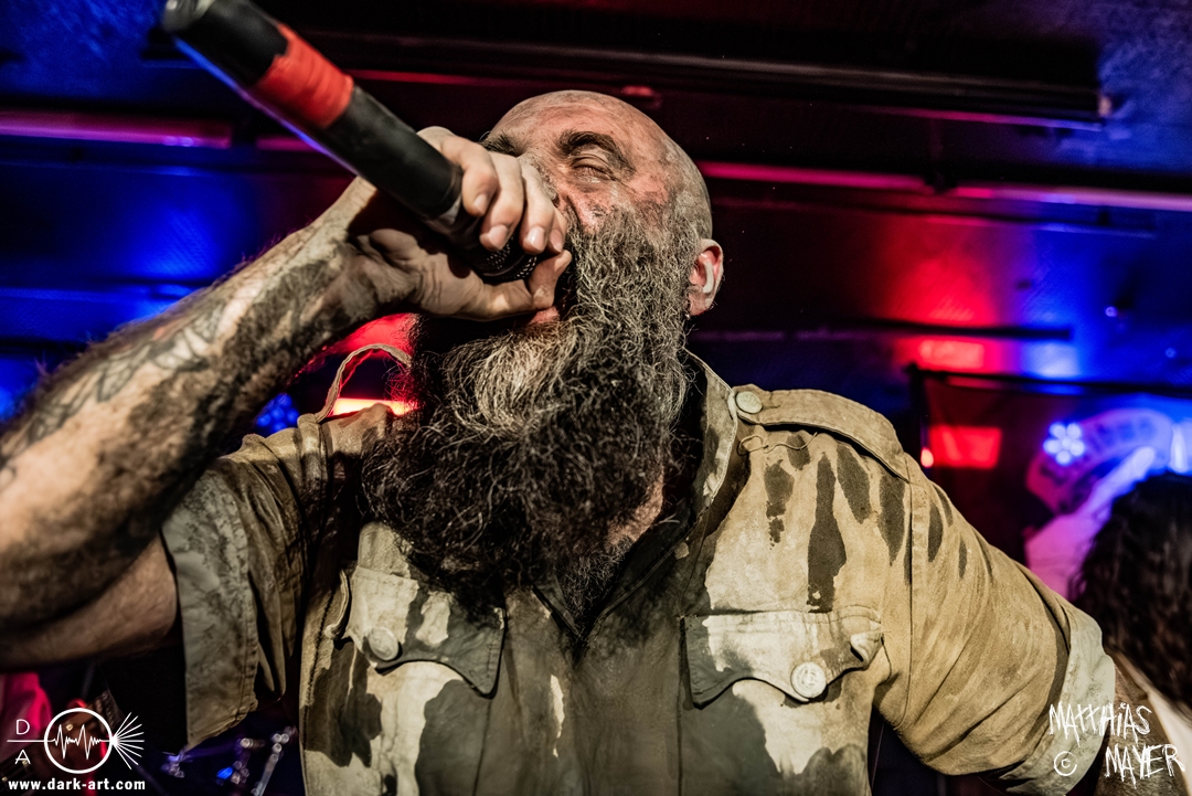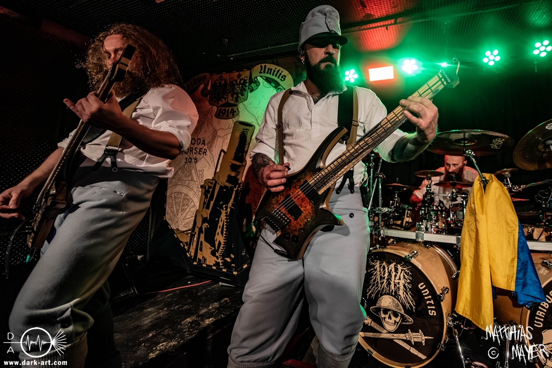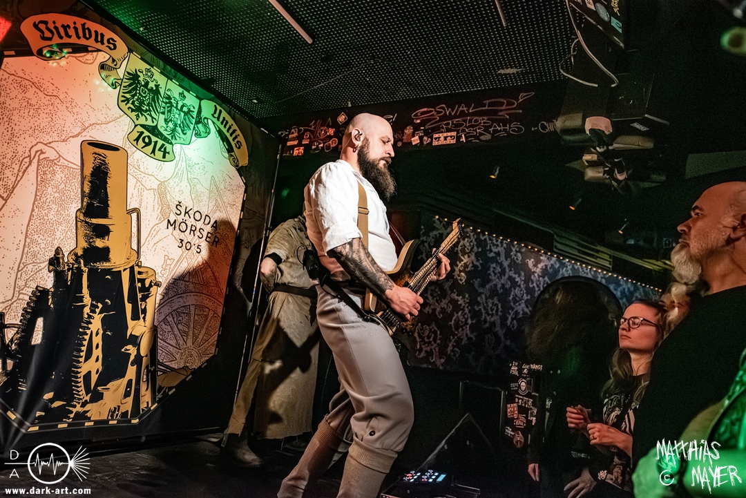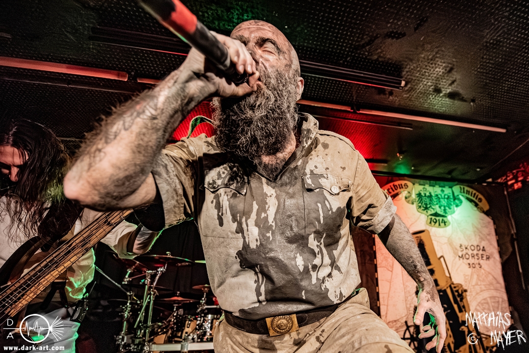 Nach einem kurzen Umbau erklang dann schon die österreichische Kaiserhymne als Intro, zu der die Band die Bühne betrat und dann direkt mit FN .380 ACP#19074 und Vimy Ridge (In Memory of Filip Konowal) losschoss. Von der ersten Minute an überzeugten die Ukrainer mit einem unglaublich intensiven Sound und der starken Präsenz des Frontmanns, der sich beim zweiten Song schon in das Publikum begab.