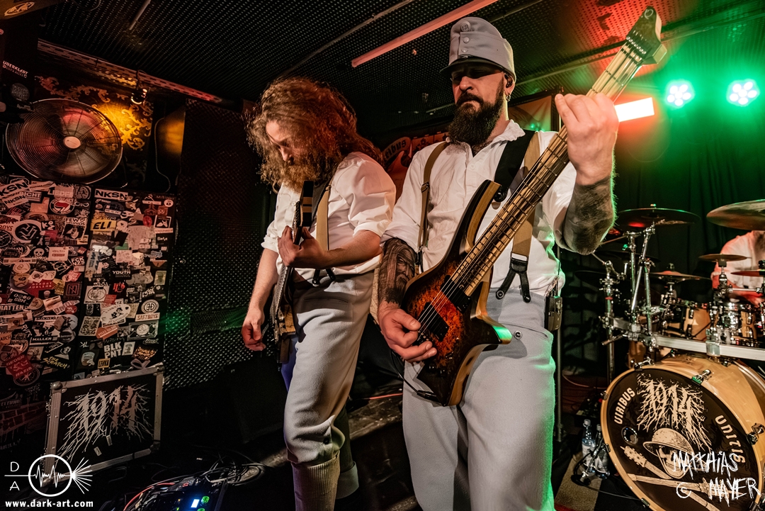 Nach der ersten eindringlichen Ansage ging es dann mit Songs vom aktuellen Album Viribus Unitis weiter, dabei wurde die Spielzeit gut genutzt und fast alle Songs des Albums fanden ihren Weg in das Set, welches danach mit dem älteren Passchenhell und dem Outro zu Ende ging. Doch das Publikum ließ nicht locker, und forderte lautstark nach einer Zusage, die mit A7V Mephisto auch abgeliefert wurde. Durch die geringe Größe und ohne Graben vor der Bühne war die Band dadurch direkt am Publikum, was die Intensität des Auftritts noch verstärkte.
