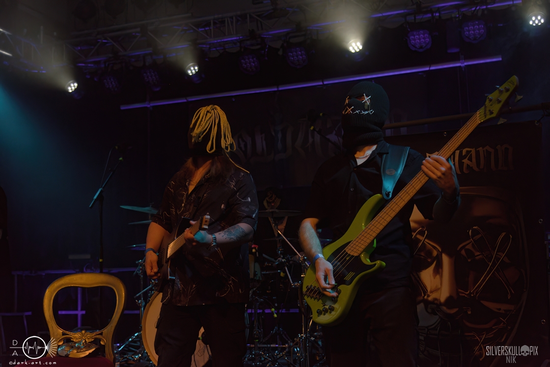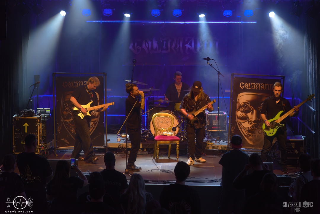 Kurz vor 20 Uhr nahm der Goldmann auf einem Thron auf der Bühne Platz, ehe seine Bandkollegen mit Stoffmasken dazu stießen. Und dann war auch schon mächtig Action auf der Bühne. Wir bekamen eine spannende Mischung aus Metalcore und Pop-Elementen geboten, die immer wieder Mal durch gekonnte Casper-Vibes in der Stimme erweitert wurden. Mit Songs wie Kaputt oder Bilder zu Zweit wurde es musikalisch auch ordentlich härter, während drumherum Atmosphären und Melodien das Klangbild abrundeten. Alle Songs waren auf Deutsch gehalten und bereits hier gab es einen kleinen Mosh Pit zu sehen. Insgesamt machten Goldmann ihre Sache sehr gut und spielten nun schon zum zweiten Mal auf der Metal Mania. Ein gelungener Auftakt.