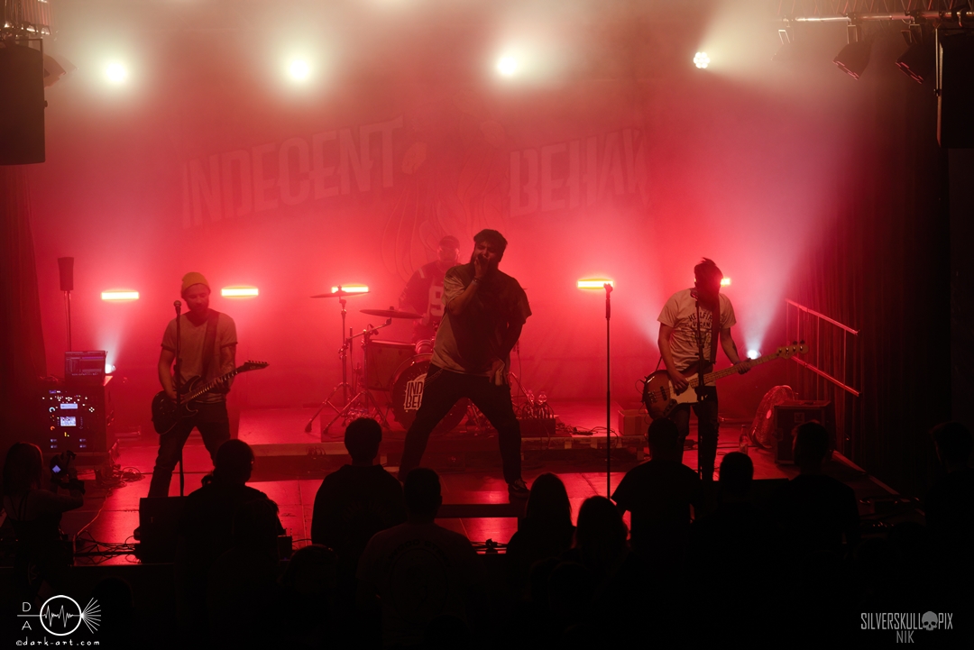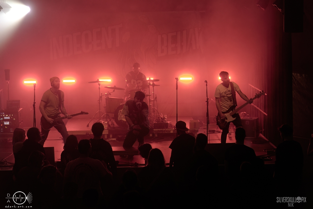 Die Vierten im Bunde waren Indecent Behavior aus Merzig im Saarland, die den Singalong Day mit energiegeladenem Pop-Punk abrunden durften. Und dies taten sie durchaus eindrucksvoll. Die wenigen verbliebenen Zuschauer kamen nochmals voll auf ihre Kosten und durften singen, tanzen und klatschen. Mit freundlicher Unterstützung aus dem Hause Attic Stories kam nun auch noch der erste Circle Pit zu Stande und dieser konnte sich durchaus sehen lassen. Sänger Henrik kam dazu von der Bühne und ließ es sich nicht nehmen, im berüchtigten „Eye of the Hurricane“ in der Mitte des Circle Pits zu performen.