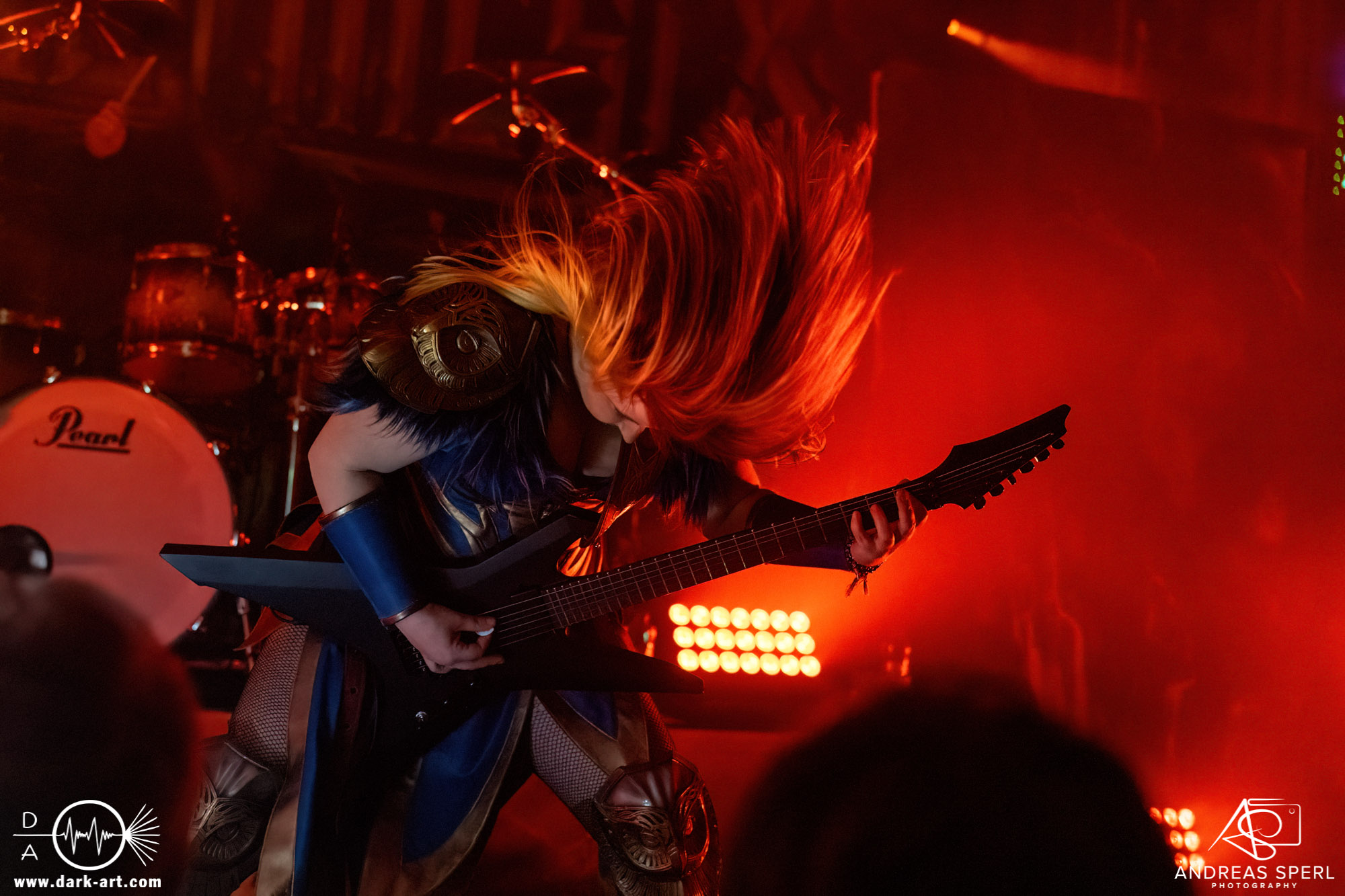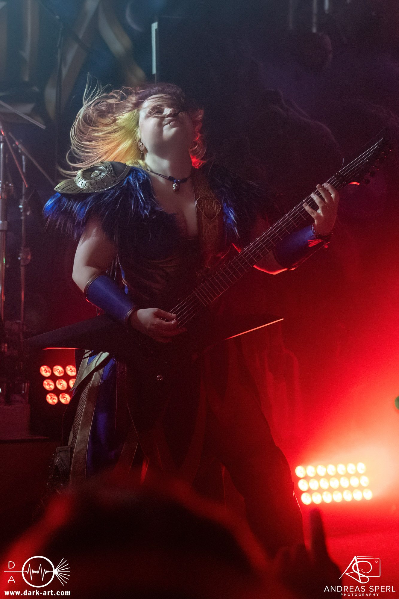 Mit Moria wurde es dann atmosphärischer, ein stimmiges Tape-Intro leitete den Song ein, bevor mit Tales from the North ein ruhigerer, akustisch angehauchter Einstieg gewählt wurde. Doch lange hielt die Verschnaufpause nicht. Vor Rise of the Dragon Empire stellte Patrik erneut die Frage des Abends: „Do you like to jump on a Tuesday?“ Und die Antwort ließ nicht lange auf sich warten. Der Refrain wurde lautstark vom Publikum mitgesungen, inklusive der ikonischen Gitarrenmelodie, die durch die Halle getragen wurde.