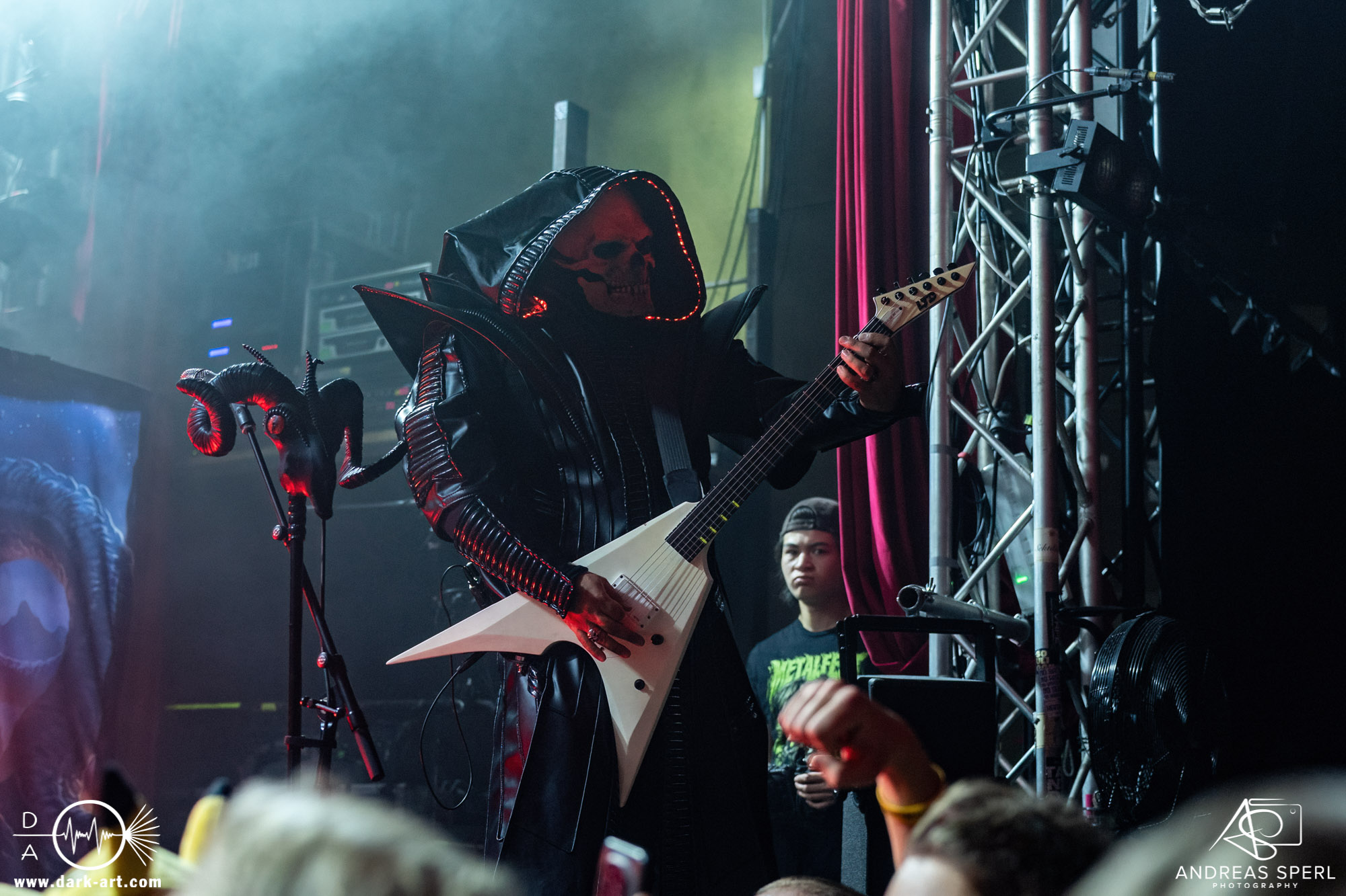 Auch die Story wurde konsequent weitergeführt. Die Amazonenkönigin sei leider nicht anwesend, erklärte Adam, aber man werde ihr dennoch mit Amazons of Caledonia Tribut zollen. Anschließend wurde es noch einmal dramatisch. Der Erzdämon Seebulon wollte zurück in die Hölle und das Publikum wurde kurzerhand dazu verpflichtet, beim Öffnen des Tores zu helfen. Ride to Hell lieferte den passenden Soundtrack dazu.