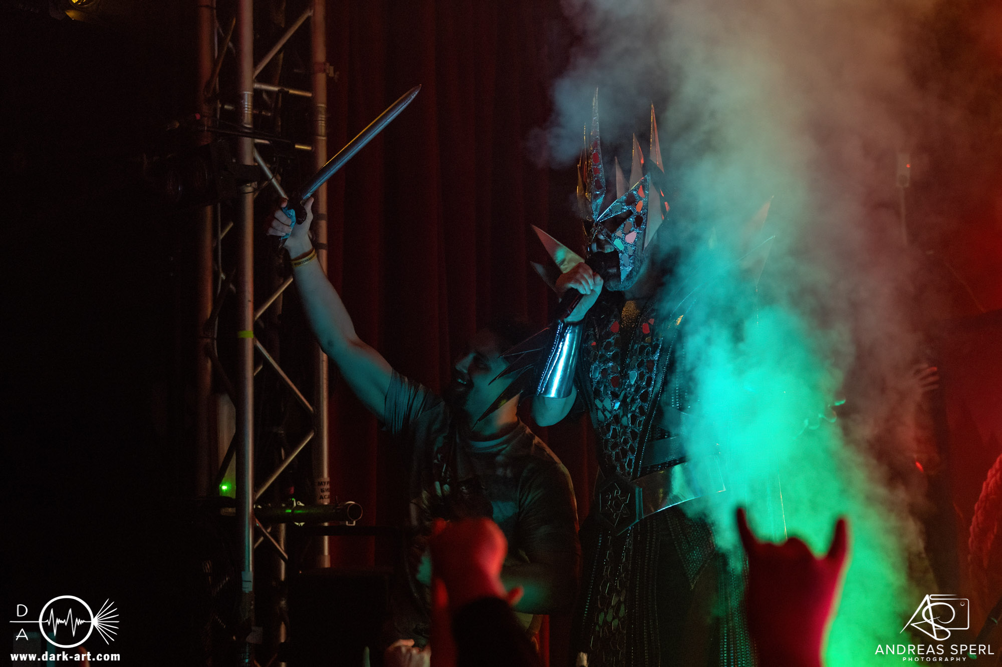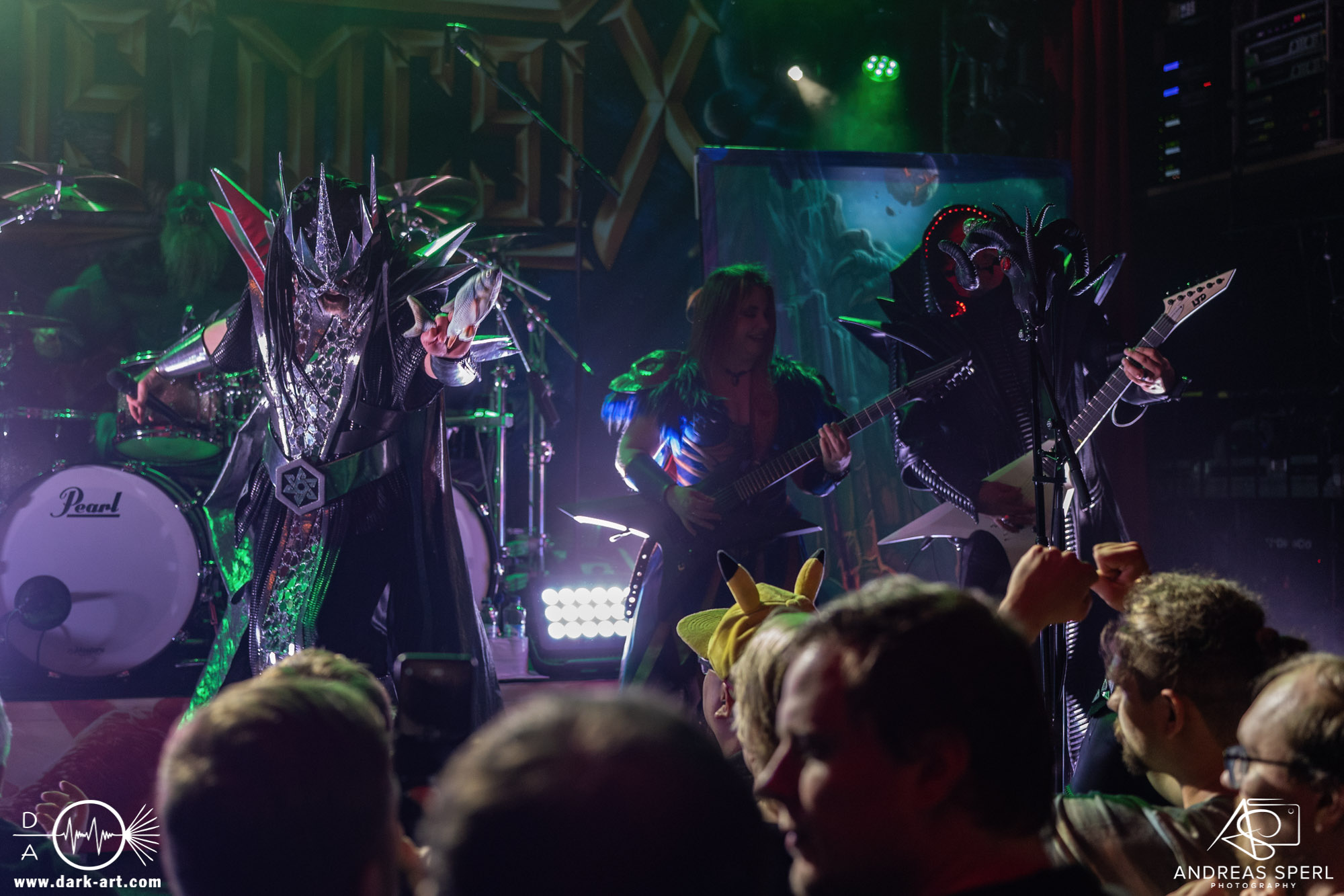 Den Abschluss des Abends übernahm schließlich Angus McSix und was hier geboten wurde, war weit mehr als nur ein Konzert. Zwischen epischem Power Metal, bewusst überdrehtem Humor und einer durchgehenden Storyline entwickelte sich eine Show, die irgendwo zwischen Fantasy-Parodie und ernsthaftem Metal-Spektakel angesiedelt war.