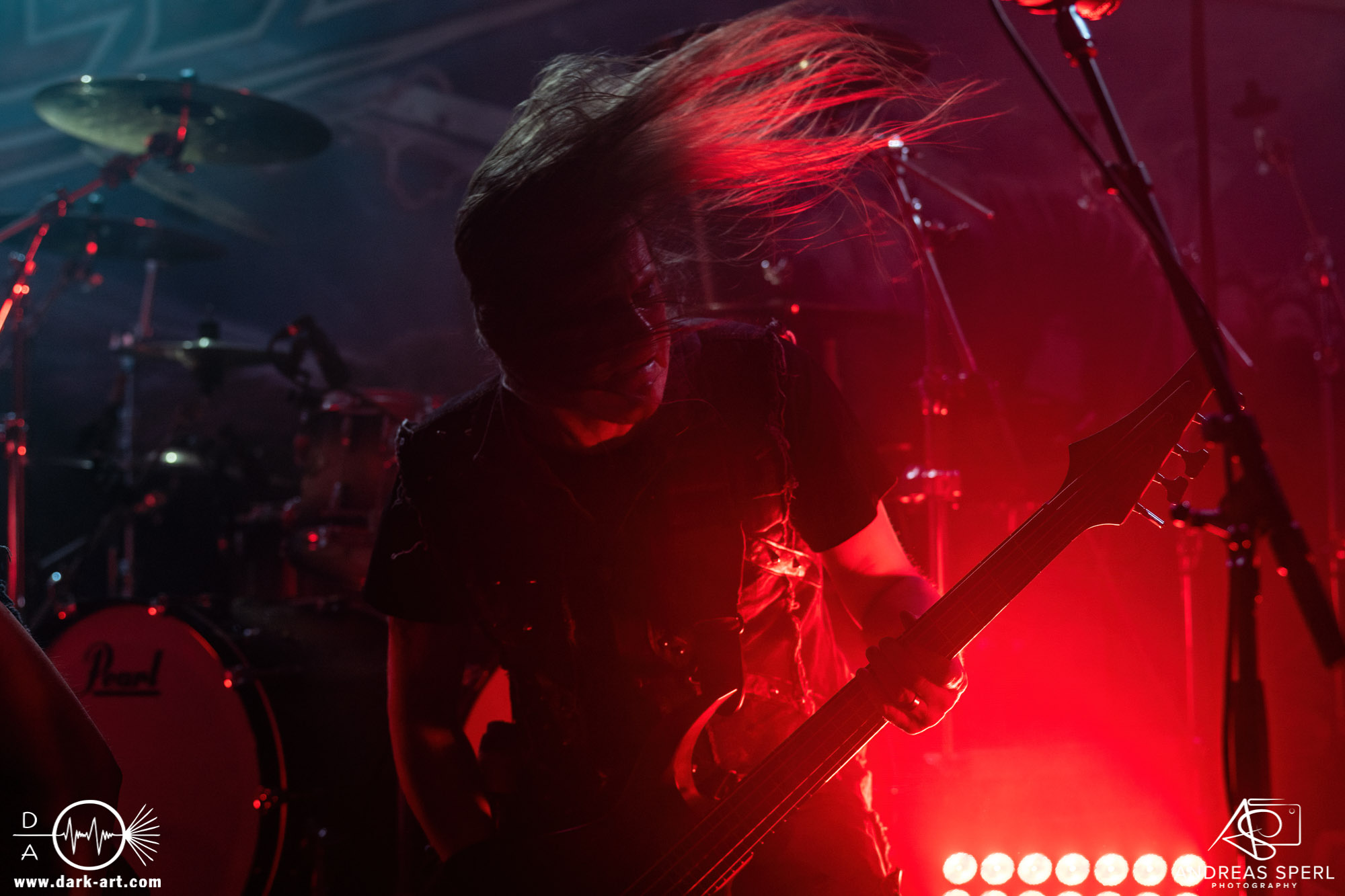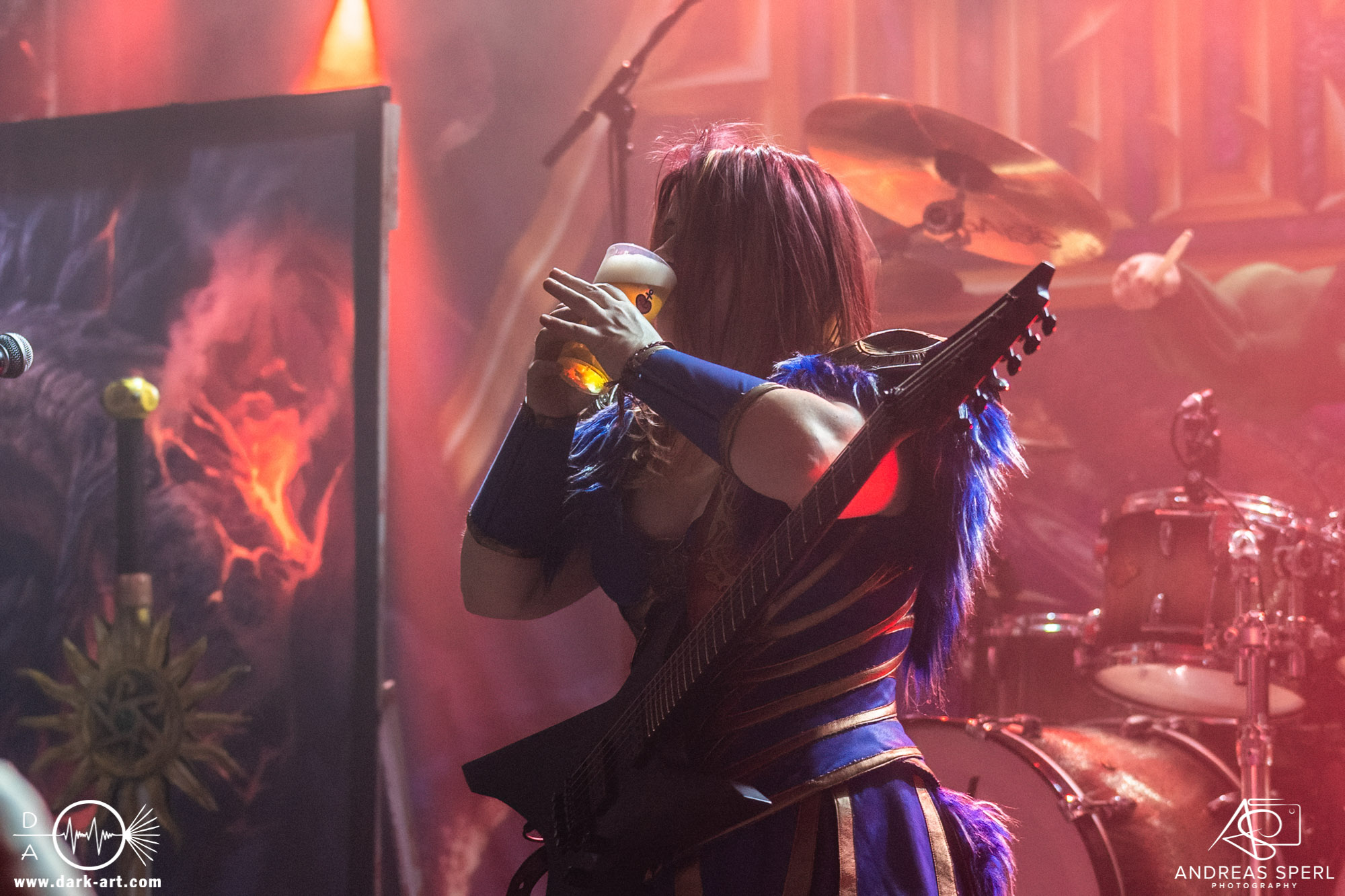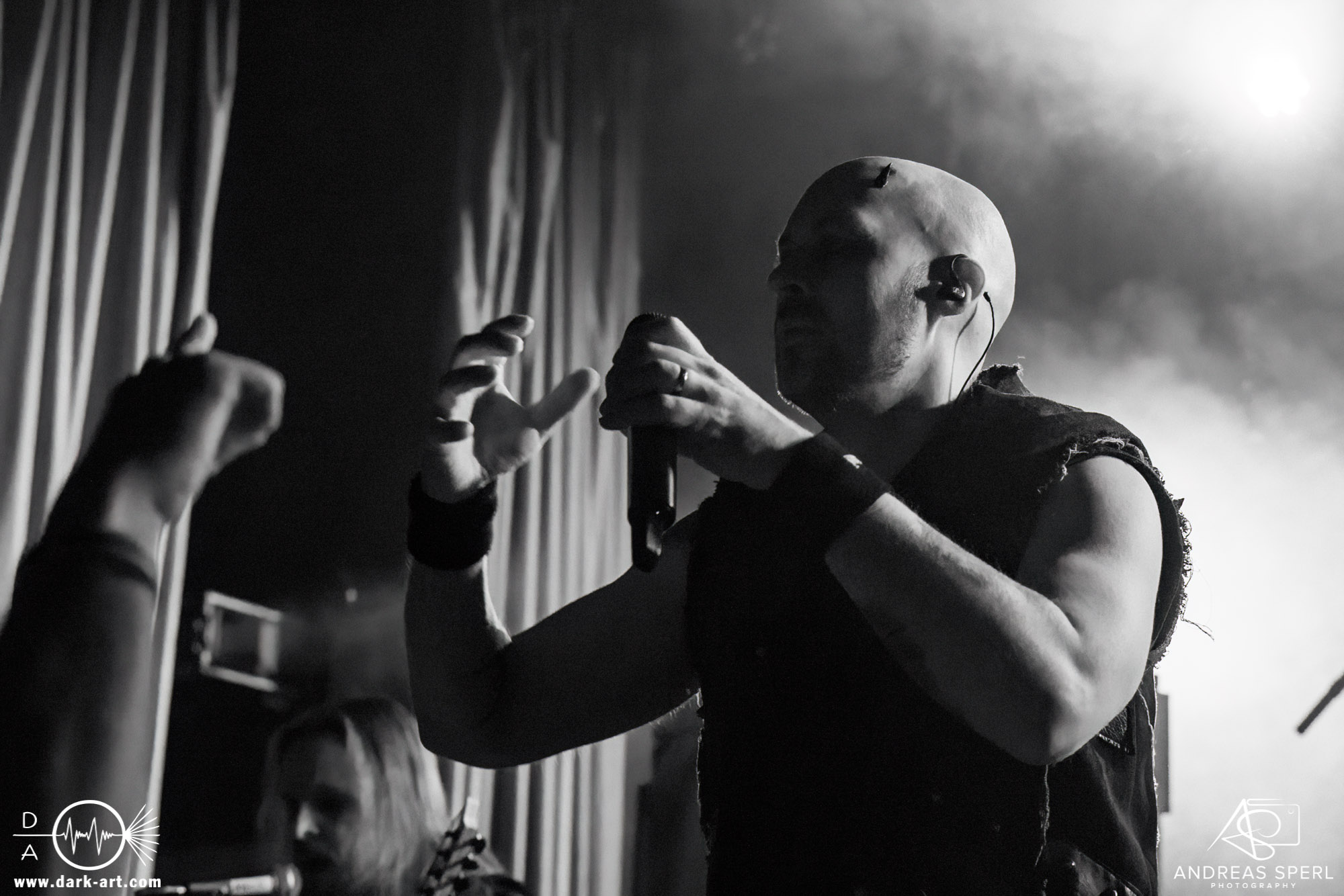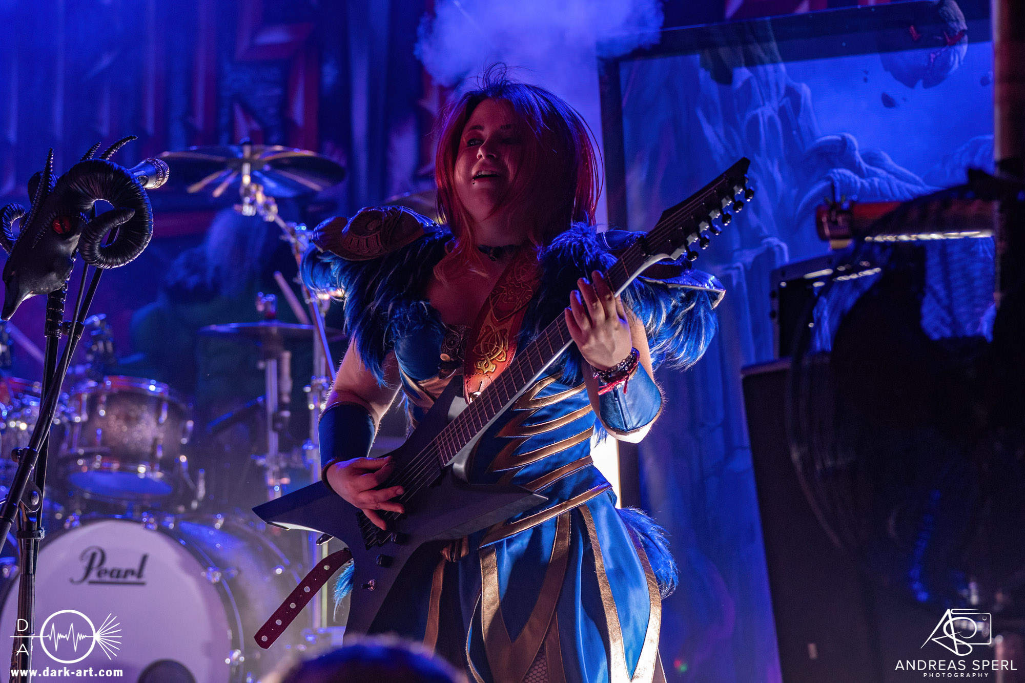 Mit Creatures of the Dark Realm und Slayer of Kings startete die Band direkt mit voller Energie ins Set und hatte das Publikum schnell auf ihrer Seite. Bereits früh wurde klar, dass hier vor allem eines zählt: Mitmachen. Mit As Empires Fall erinnerte die Band gleich an ihr neues Album, Field of Swords, das seit November letzten Jahres erschienen ist.
