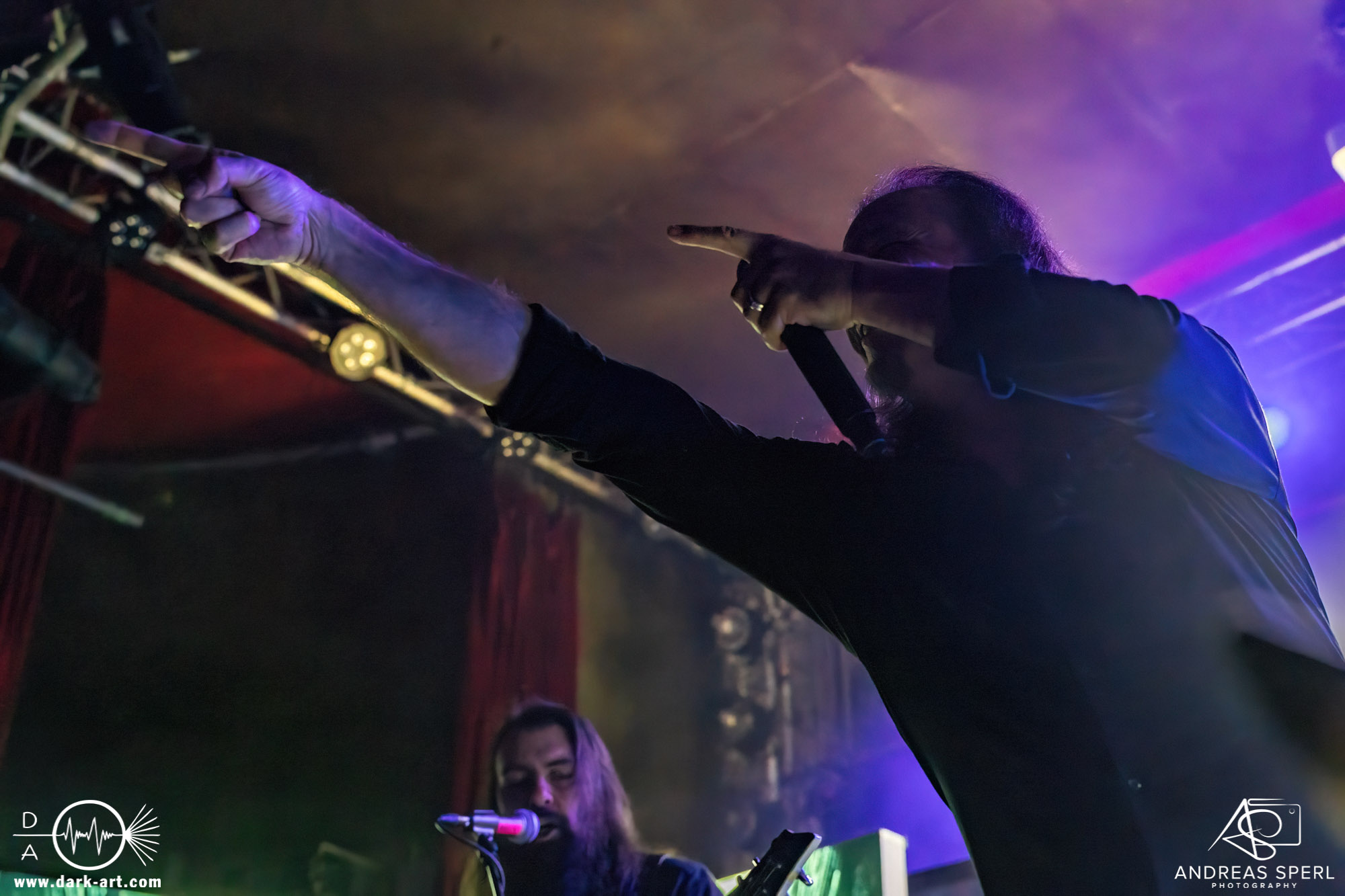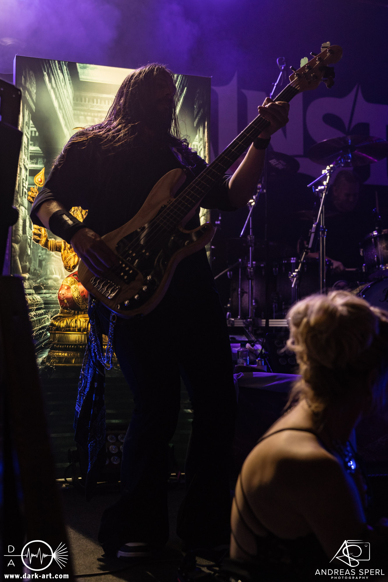 Mit Worlds Are Comin’ Through und Devil’s Eye ging es direkt druckvoll los, bevor spätestens bei Shiva’s Tears klar wurde, dass das Publikum im Lido bereit war, sich auf den Abend einzulassen. Andy nutzte eine kurze Verschnaufpause, um die Menge direkt einzubinden:“Habt ihr Zeit mitgebracht? Habt ihr Lust mitgebracht?“ Fie Antwort fiel entsprechend laut aus. „Gut, wir haben noch einiges mit euch vor“. Ein Versprechen, das sich im weiteren Verlauf des Sets durchaus bewahrheiten sollte.
