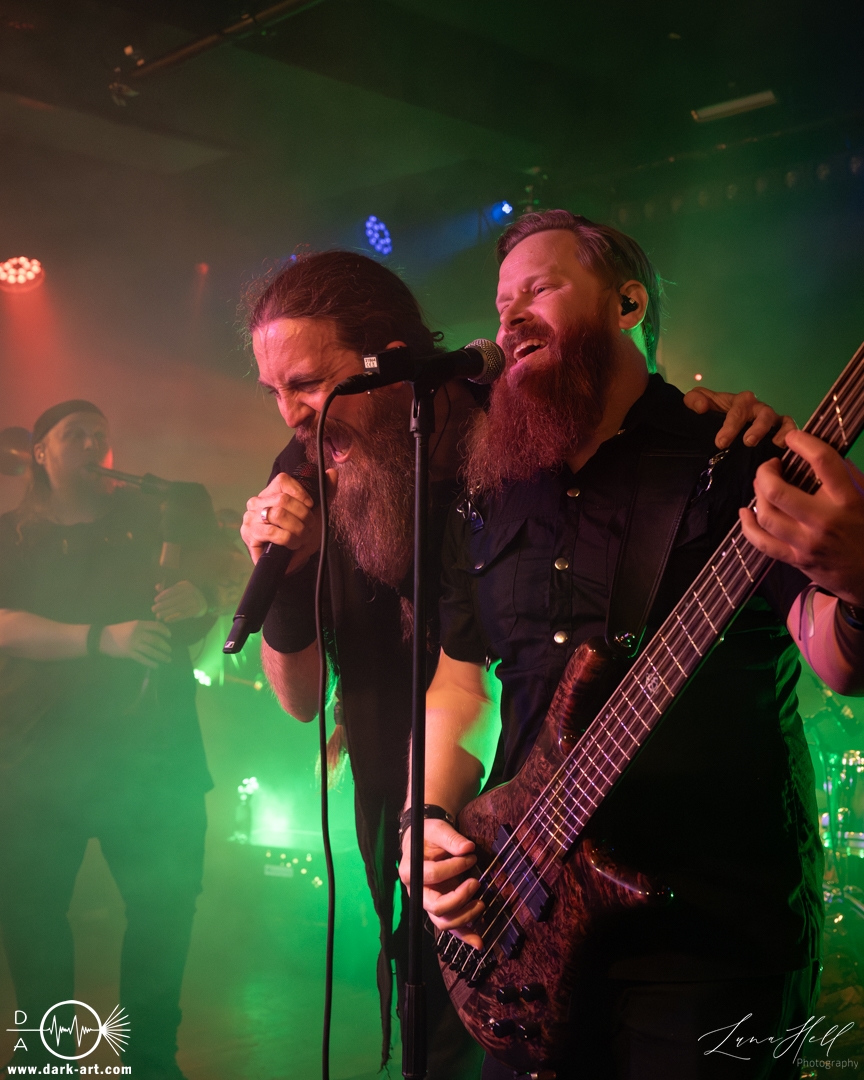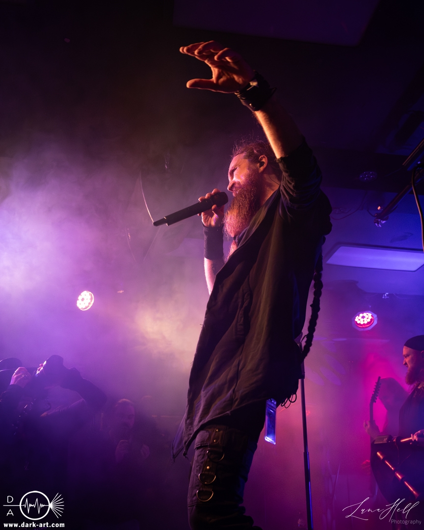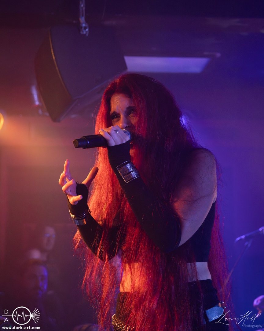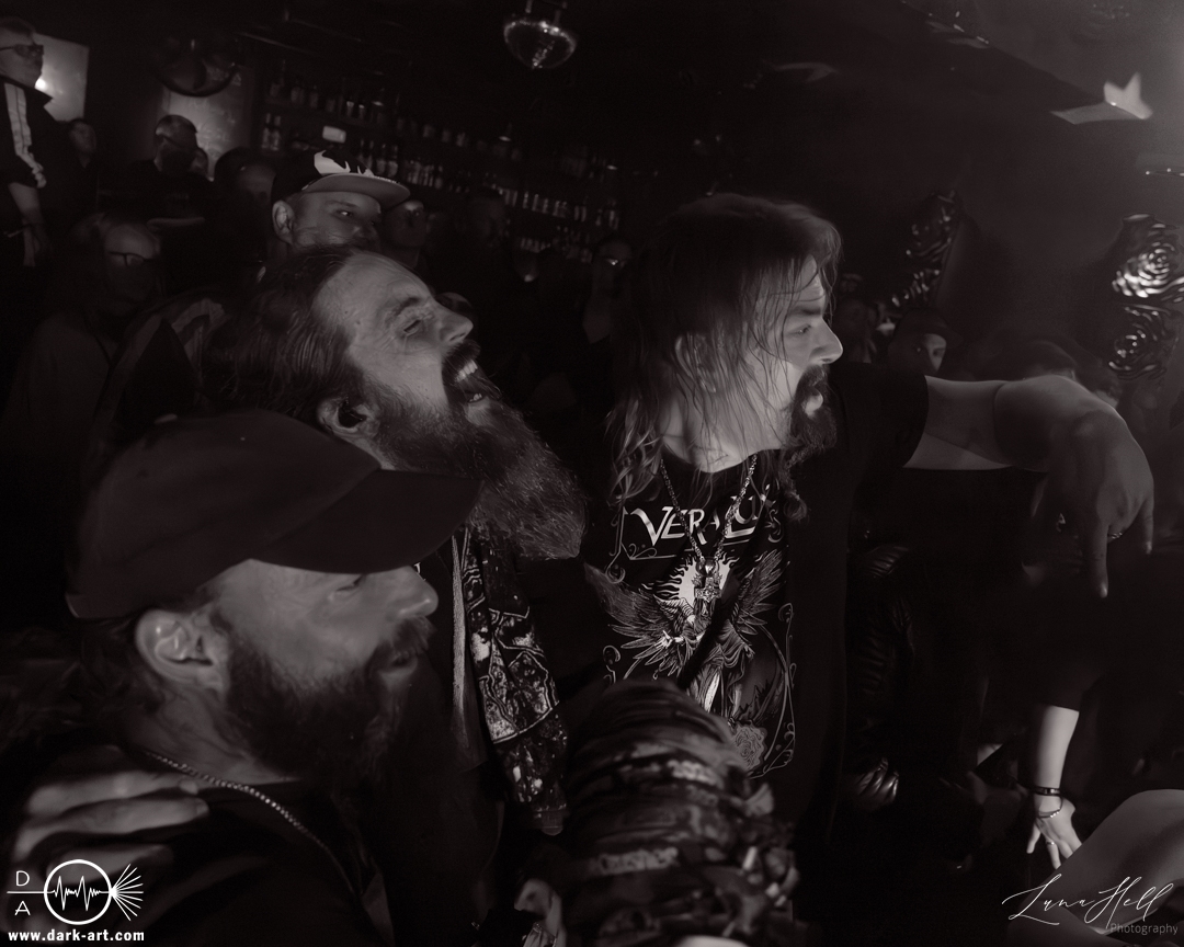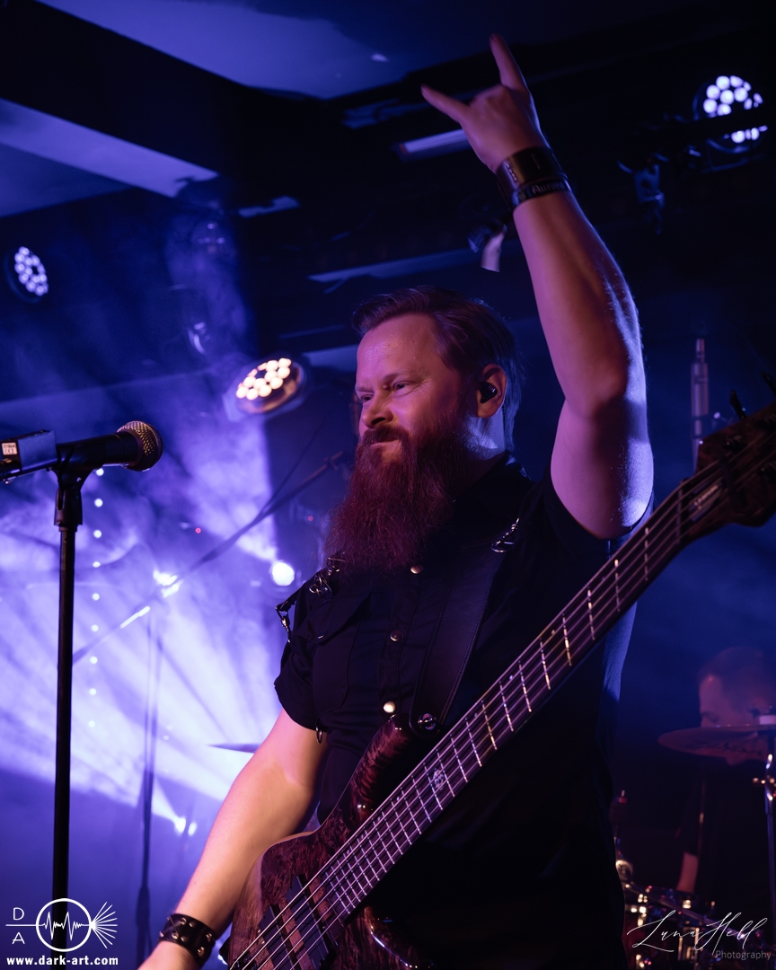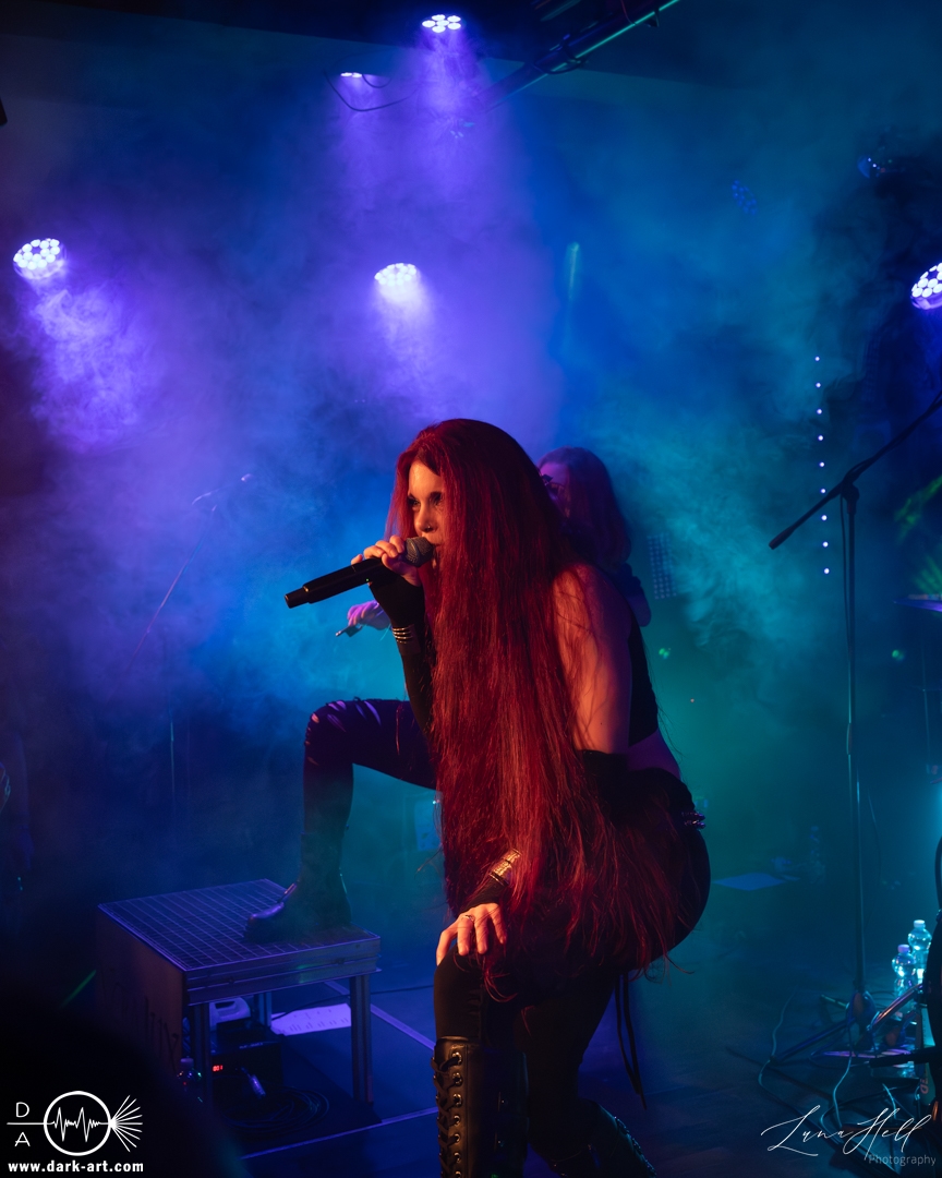 Als Vera Lux dann übernahmen, wurde es richtig voll. Im Club war kaum noch Platz zum Bewegen, doch die Stimmung blieb großartig. Inara, mit ihrer langen roten Mähne und klaren, eindringlichen Stimme, füllte den Raum mühelos. Die Band aus Nürnberg vereint Rock, Metal und mittelalterliche Klänge, und ihre Mitglieder ergänzen sich perfekt auf der Bühne. Die Fans sangen, tanzten und feierten, und auch Mitglieder der anderen Bands mischten sich unter das Publikum. Alles wirkte vertraut, herzlich und sehr lebendig.
