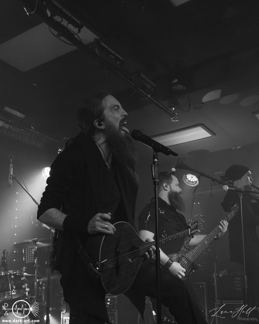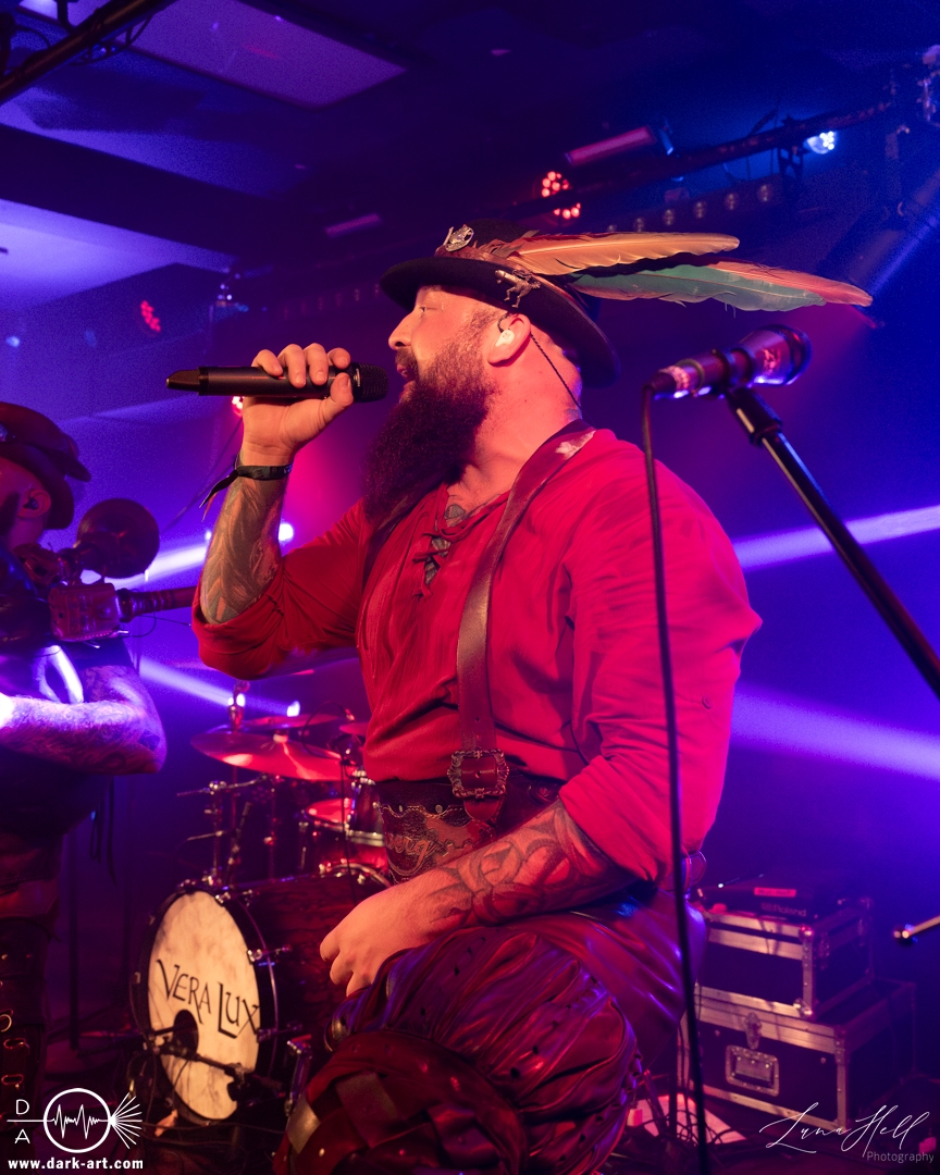 Drinnen eröffnete anschließend Cantus Levitas aus Heilbronn den Konzertteil. Die fünfköpfige Folk-Metal-Band mischt harte Gitarrenriffs mit Dudelsack, Geige und anderen traditionellen Instrumenten. Schon nach den ersten Tönen war klar, dass hier mit Leidenschaft gespielt wird. Die Band zeigte starke Präsenz und viel Spielfreude, zusammen Felix der uns auch bei Vera Lux ,mit dem Dudelsack und an der Hurdy Gurdy beglückt. Gemeinsam sorgten sie für einen stimmungsvollen Auftakt, der das Publikum sofort mitriss.