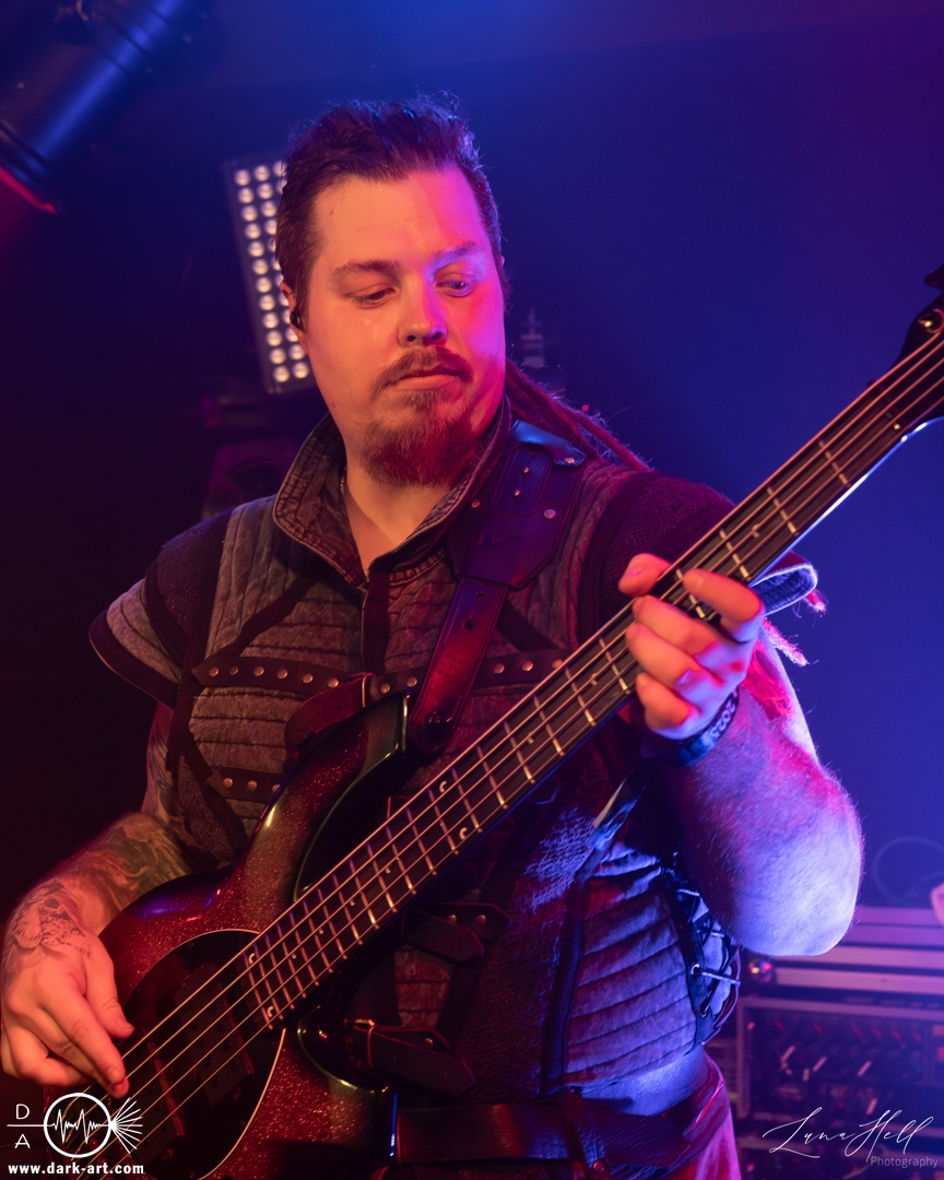 Zum Abschluss des Abends standen Deus Vult aus Amberg auf der Bühne. Die Mittelalter-Rock-Band besteht aus mehreren Mitgliedern, darunter Zwerg, hochgewachsen und mit charismatischer Ausstrahlung, der souverän durch das Set führte. Dudelsack, Gitarre, Bass, Schlagzeug und Flöten verschmolzen zu einem kraftvollen Klang, der das Publikum sofort packte. Mit ihrem Cover von Hypa Hypa setzten sie einen lauten, fröhlichen Schlusspunkt – ein Finale, das perfekt zum gesamten Abend passte.