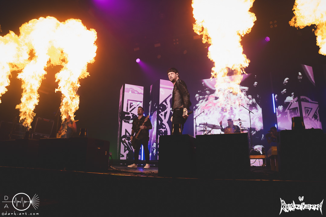 Das Highlight des Abends und auch Headliner war Beartooth, das Post-Hardcoregespann, welches letztes Jahr ihr fünftes Studio Album released hat, spielte einen Mix aus neuen und alten Tracks mit einem Fokus auf ihre aktuelle Platte. So war der Opening Track direkt auch der Title Track The Disease vom aktuellen Album. Sowohl die Songwahl als auch das Bühnenbild zeigte, das es bei Beartooth an diesem Abend heisst: Good Vibes and don’t worry about anything, welches Sänger Caleb Shomo auch nochmal durch seine Ansagen untermalte. Außerdem bekamen wir ein pyrotechnisches Spektakel zu sehen, welches die Songs perfekt untermalte und die Vibes verbesserte. Als Besonderheit offenbarte sich in der Mitte des Sets eine zweite Bühne, auf der Caleb ein kleines Acoustic Set performte, unter anderem mit einem Cover von Mr Brightside (The Killers). Während I Was Alive wurde die Show dann für ungefähr 10 Minuten unterbrochen, da es einen medizinischen Notfall in der Crowd gab. Zum Schluss bekamen wir noch eine Zugabe, welche unter anderem den Song In Between beinhaltete.