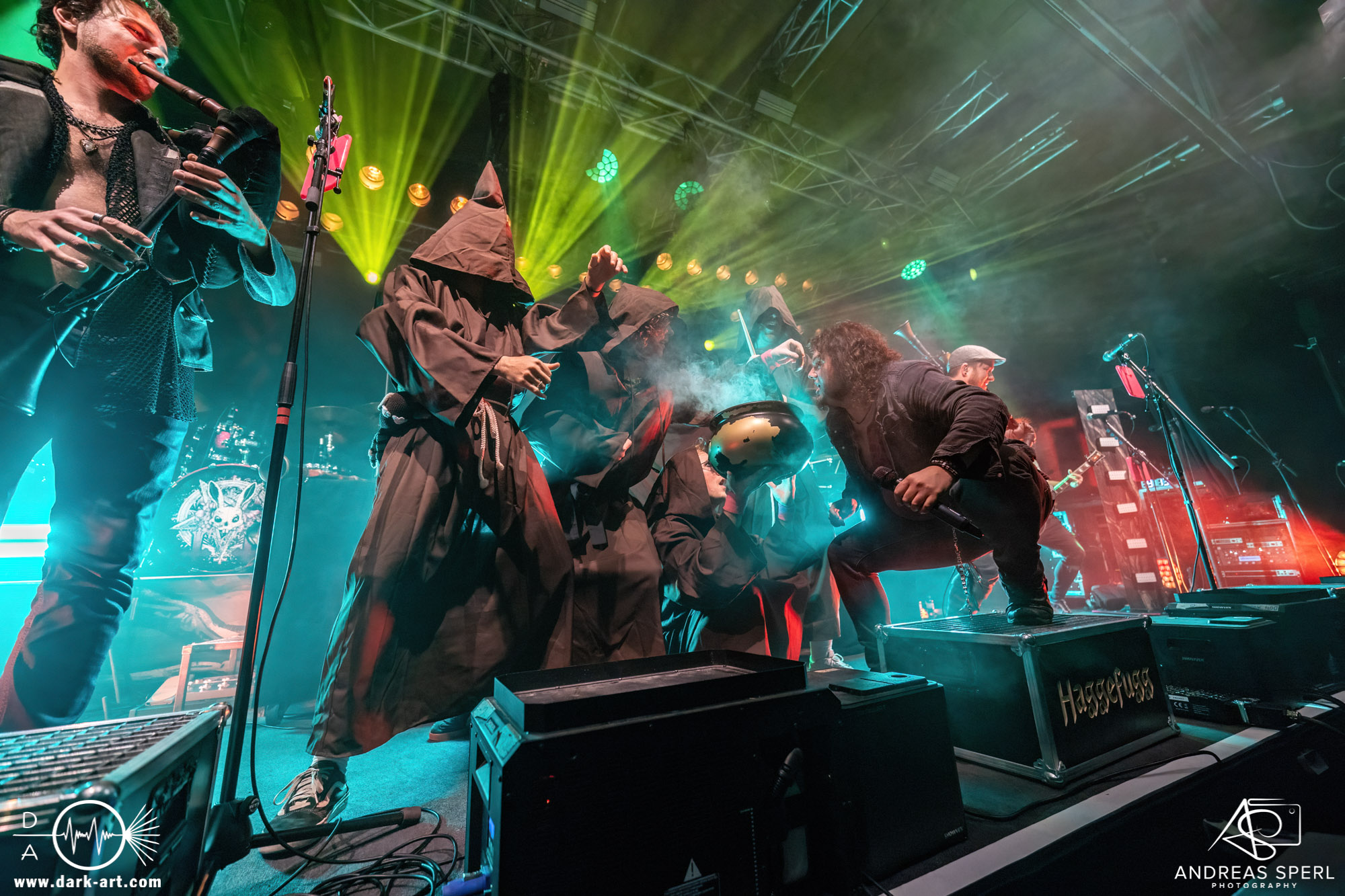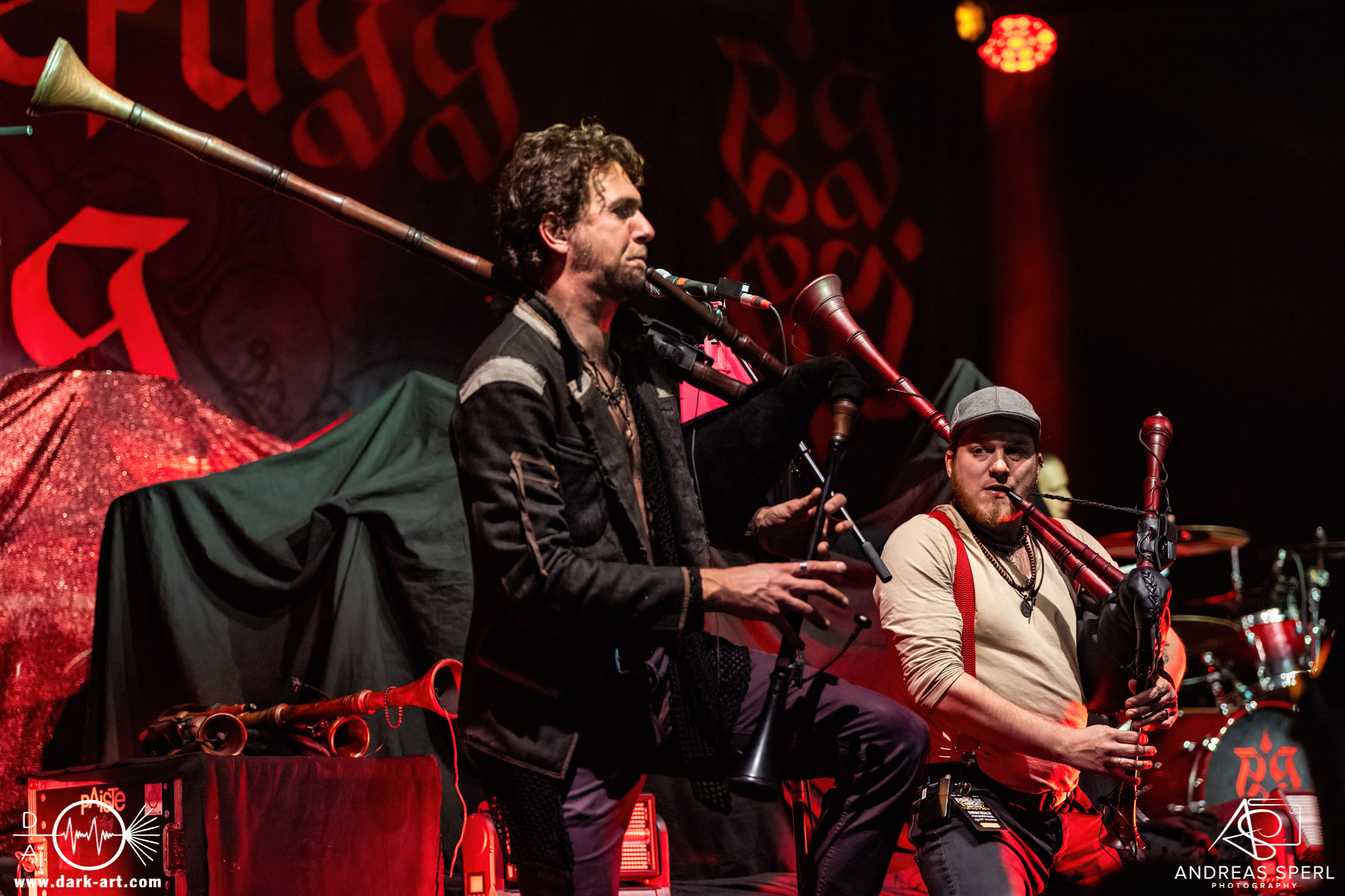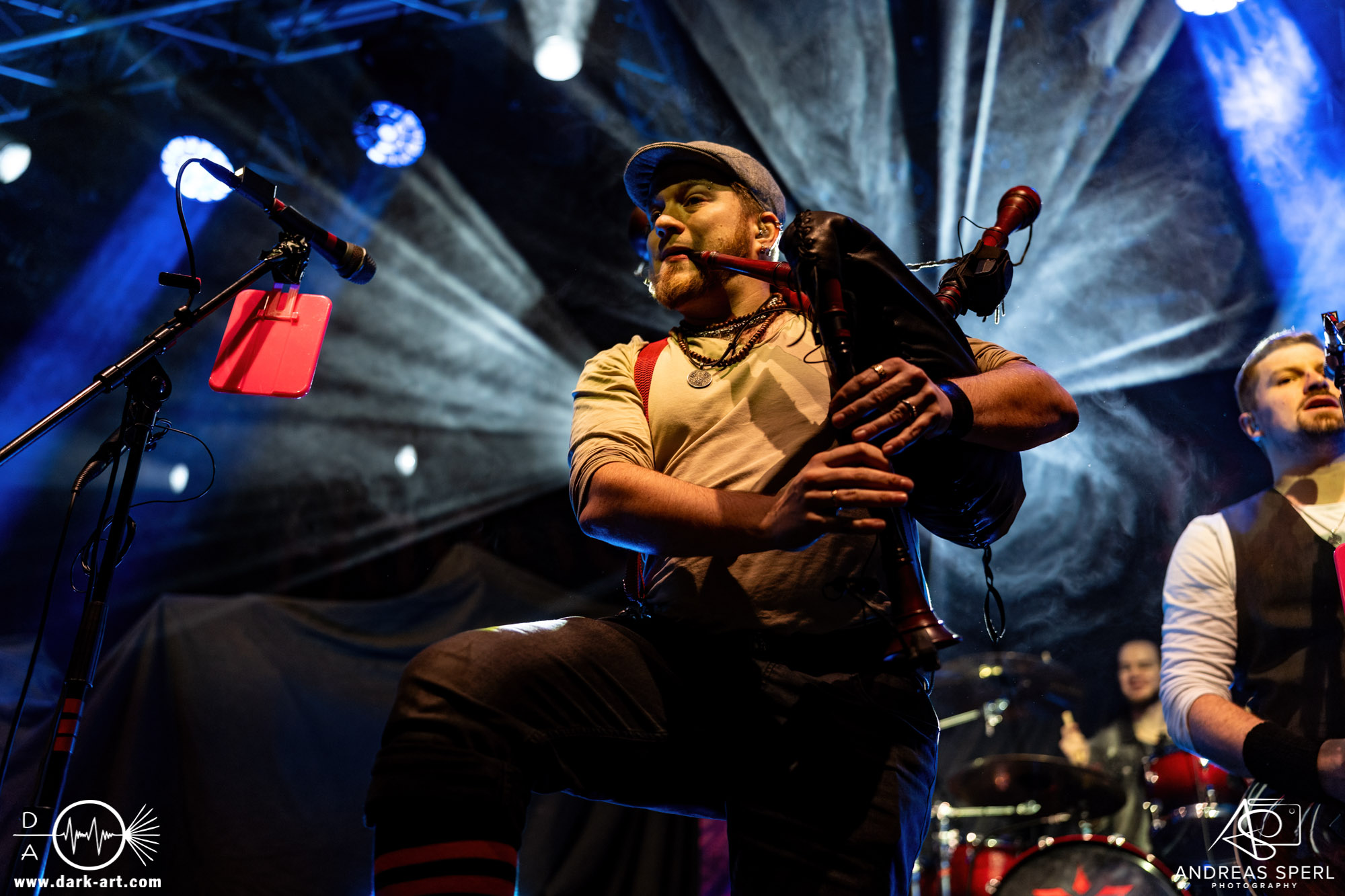 Den Startschuss für diesen besonderen Abend setzten Haggefugg. Und das mit einer Wucht, die keinen Zweifel daran ließ, dass hier niemand nur „zum Warmmachen“ auf der Bühne stand. Schon mit den ersten Schlägen der Trommeln und dem kraftvollen Einsatz der Dudelsäcke war die Aufmerksamkeit der Halle vollständig gebannt. Die Musik wirkte roh, lebendig und erstaunlich zeitlos, als würde sie direkt aus einer längst vergangenen Epoche in die Gegenwart getragen. Innerhalb kürzester Zeit verwandelte sich der Raum in einen lebendigen Treffpunkt aus klatschenden Händen, tanzenden Körpern und strahlenden Gesichtern.