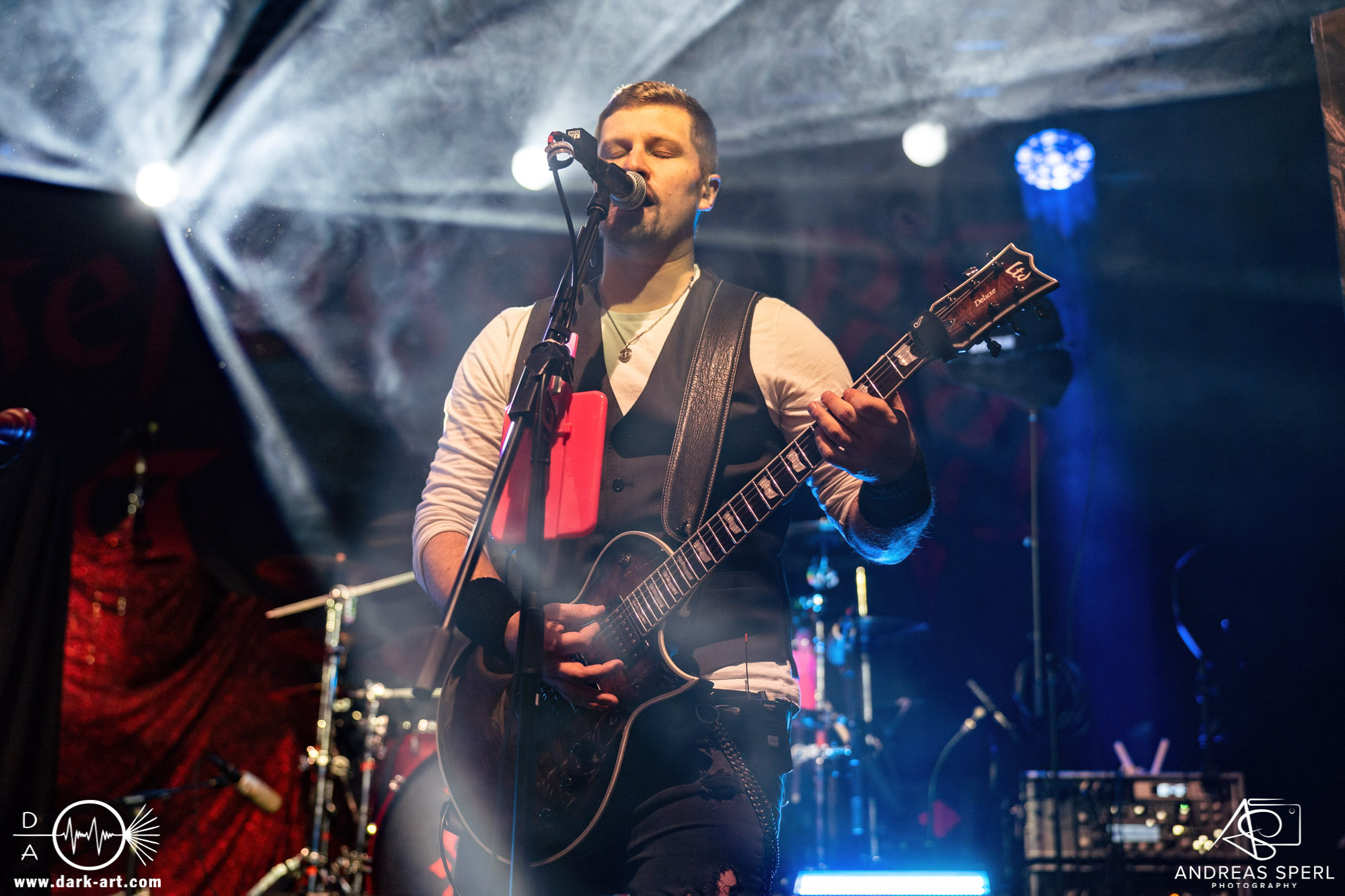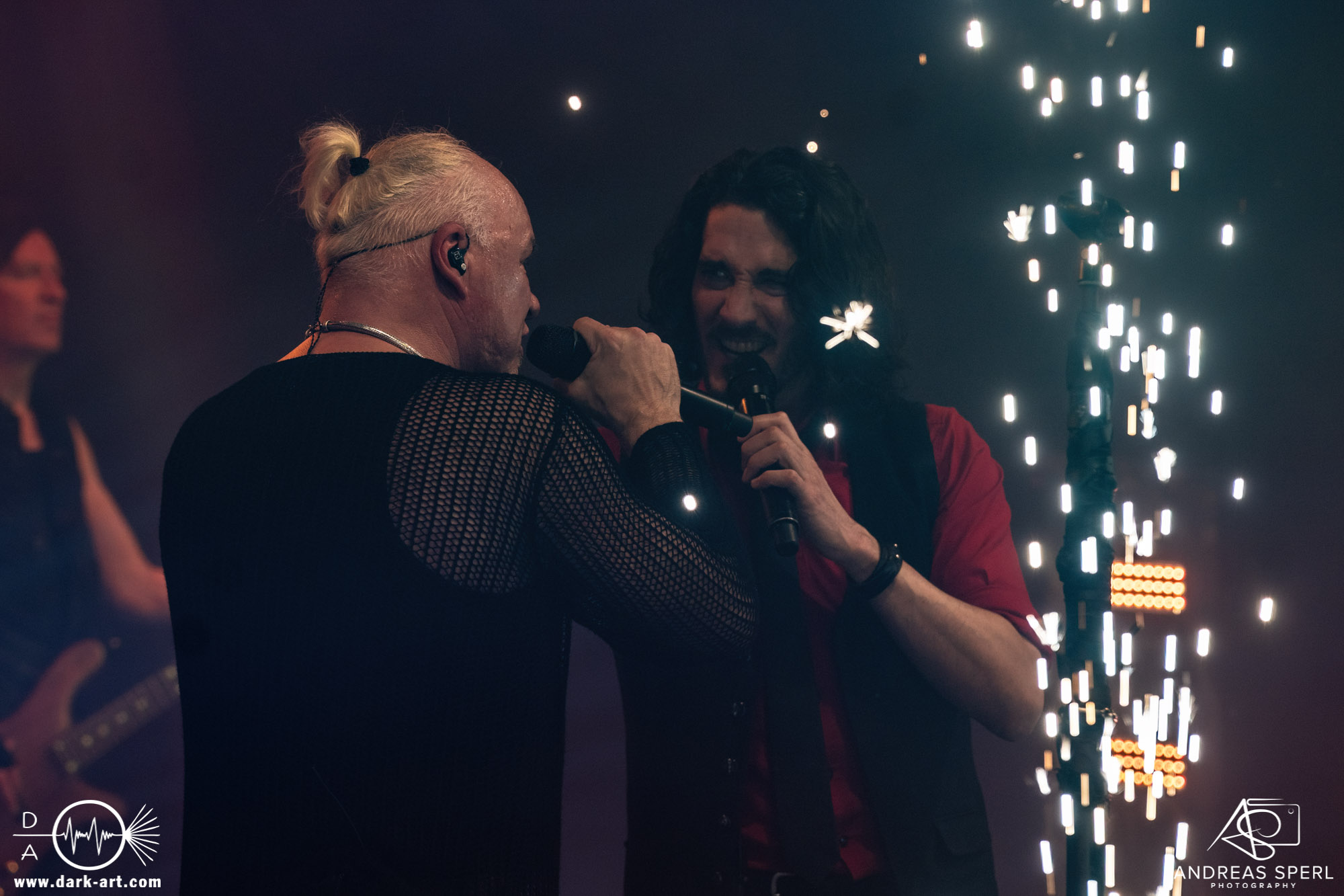 Schandmaul spielten an diesem Abend mit einer Selbstverständlichkeit, die aus jahrzehntelanger Erfahrung gewachsen ist, ohne jemals routiniert zu wirken. Neue Songs fügten sich nahtlos neben Klassiker, getragen von einer Spielfreude, die sofort auf das Publikum übersprang. Nach den ersten Stücken ließ es sich Thomas Lindner, der frühere Frontmann der Band, nicht nehmen, selbst das Wort zu ergreifen. Nach überstandener Krebserkrankung und inzwischen an Keyboard und Akustikgitarre zuhause, stellte er Till offiziell als neue Stimme von Schandmaul vor; ein Moment, der spürbar von gegenseitigem Respekt und Zusammenhalt geprägt war.