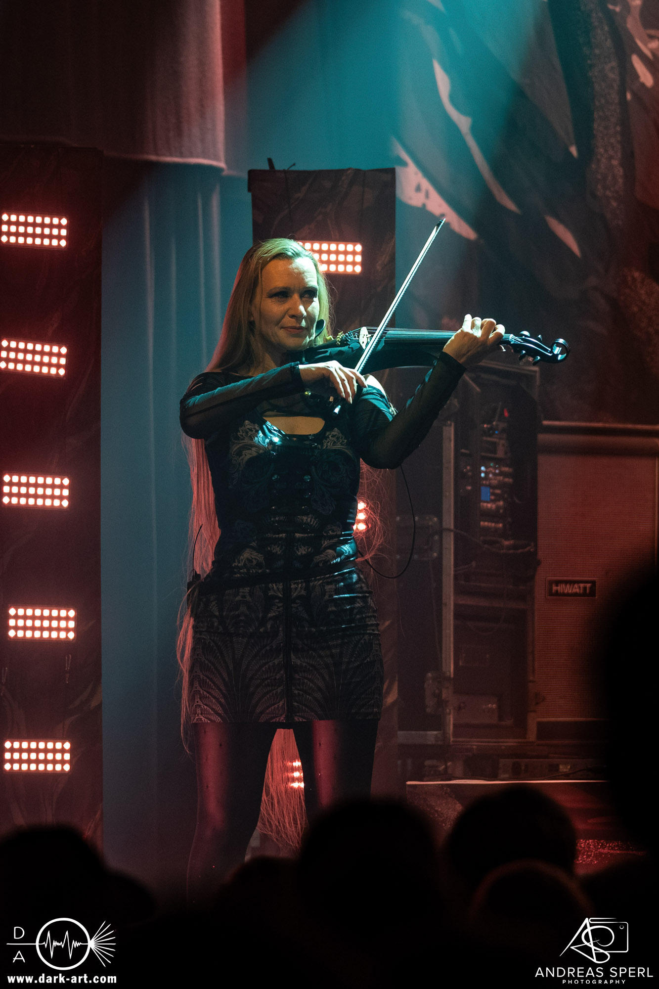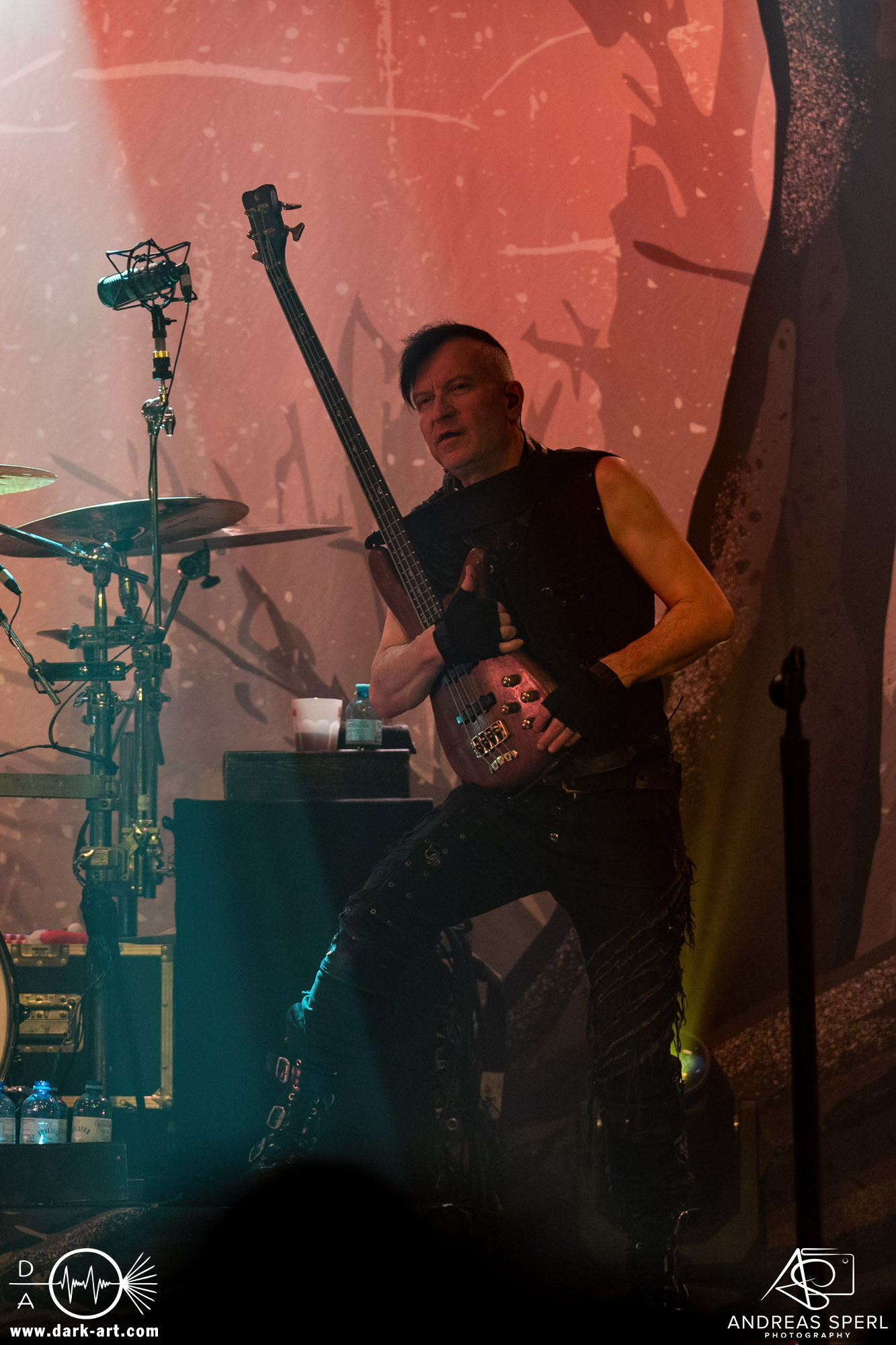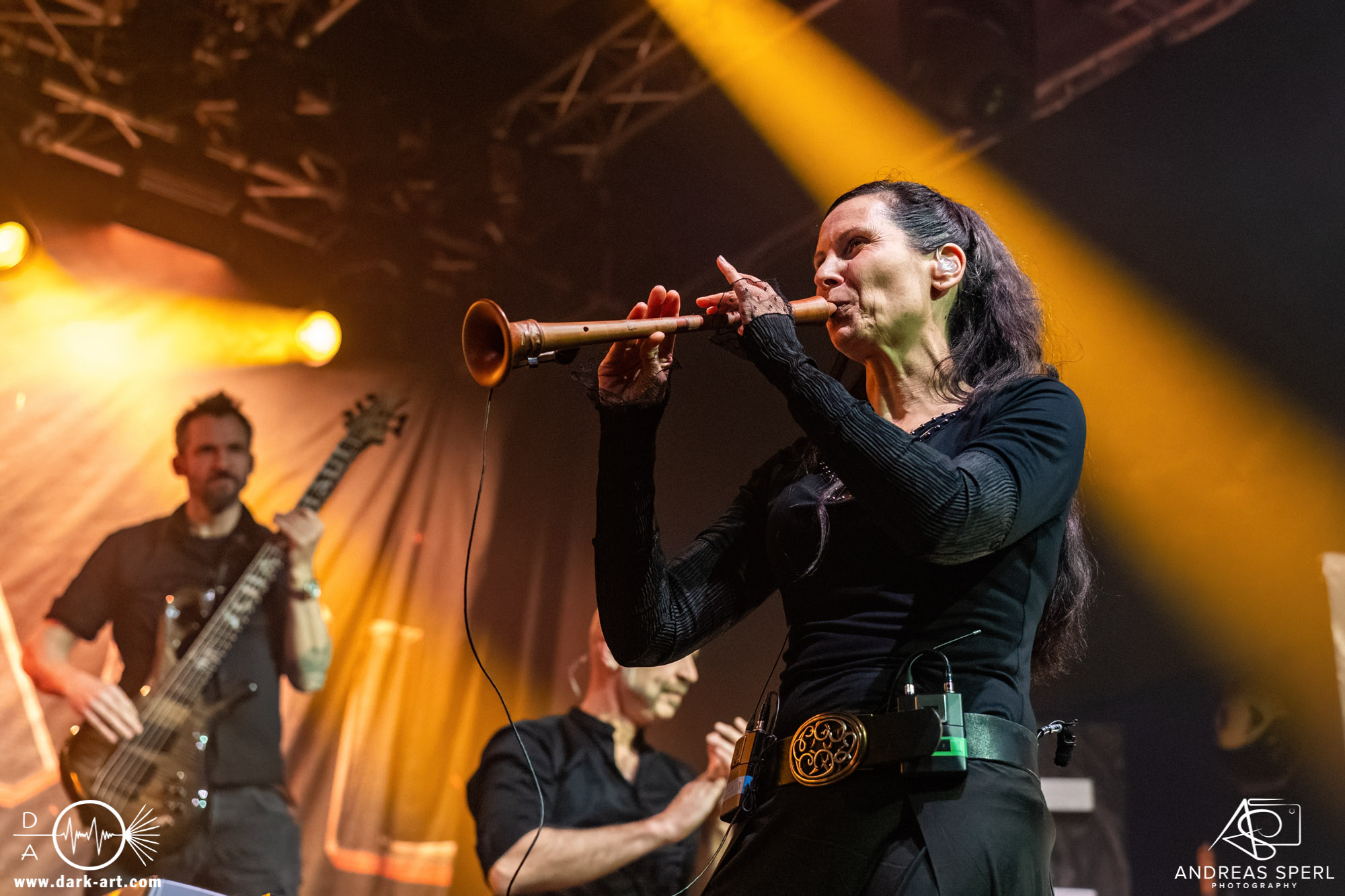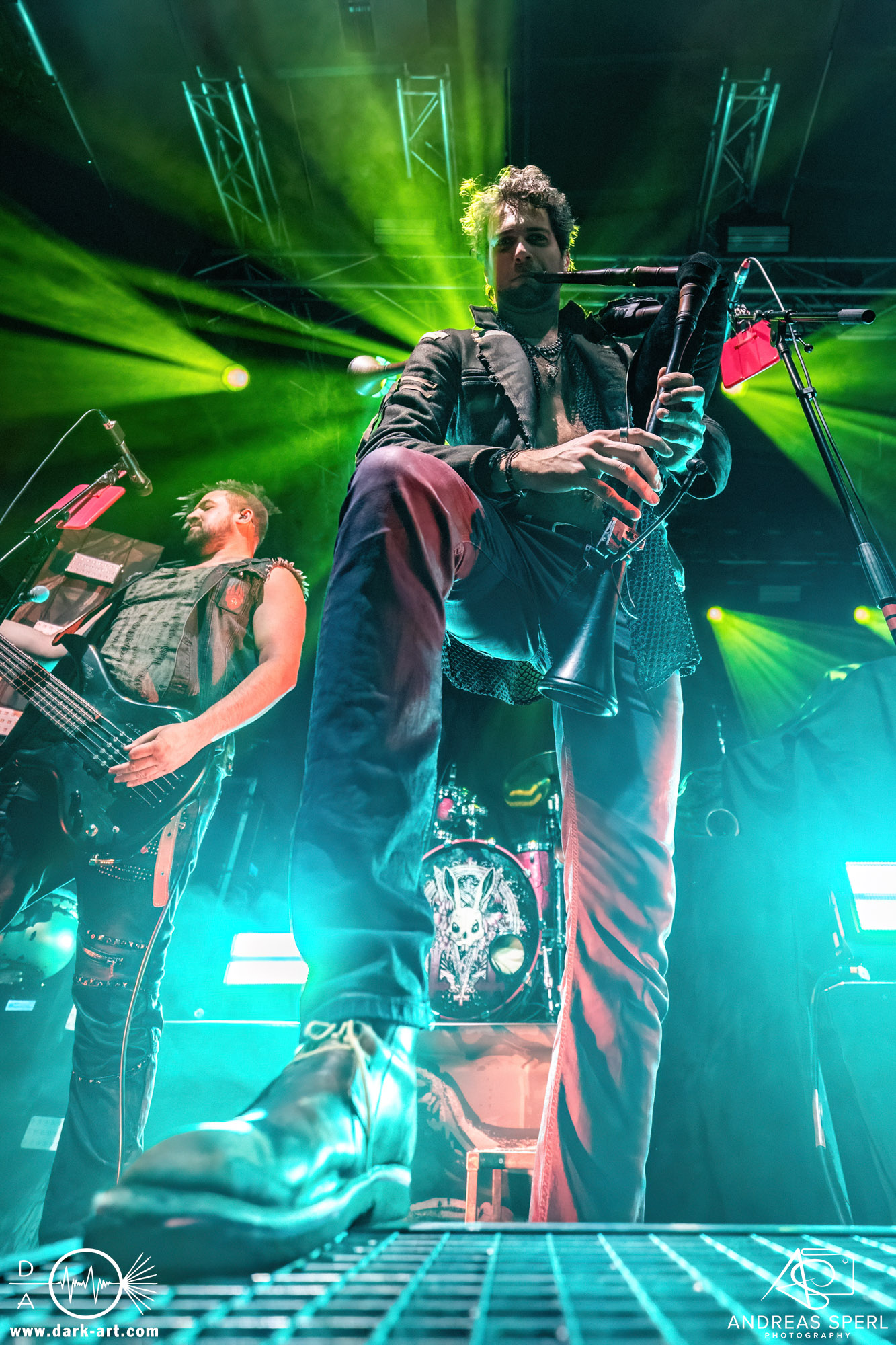 Nun war es Zeit für die Gastgeber des Abends. Subway to Sally betraten die Bühne und mit ihnen entlud sich all das, was sich über Stunden hinweg aufgebaut hatte. Kein Feuer, keine Pyro, keine Flammenfontänen wie bei anderen Stationen der Tour, und doch wirkte dieser Moment gerade deshalb umso intensiver. Ein tanzender Phönix eröffnete das Set, vertraut von früheren Touren, ehe die ersten Töne von Phönix erklangen. Ein symbolischer Auftakt, passender hätte er für das Abschlusskonzert im Potsdamer Waschhaus kaum sein können.