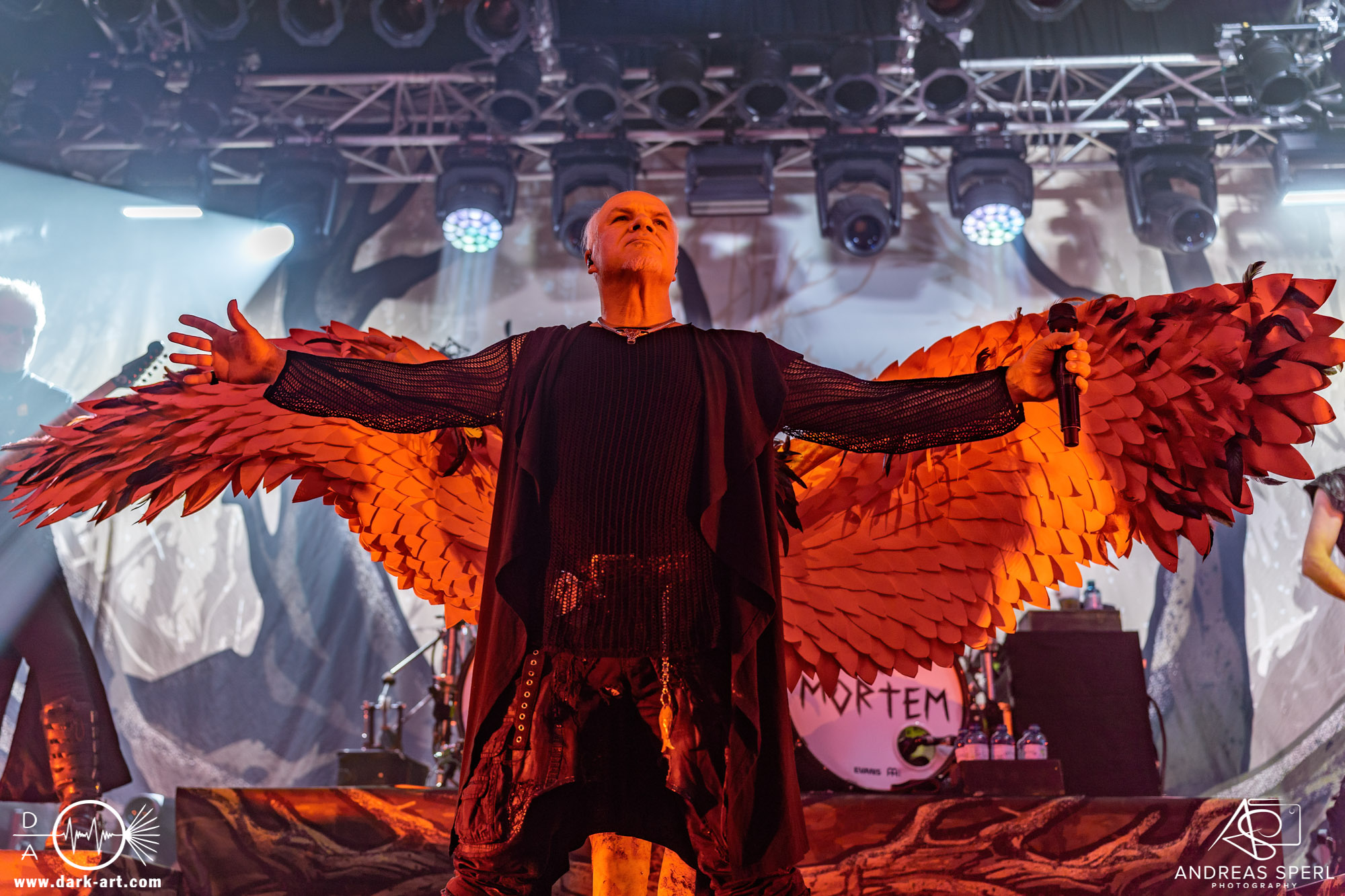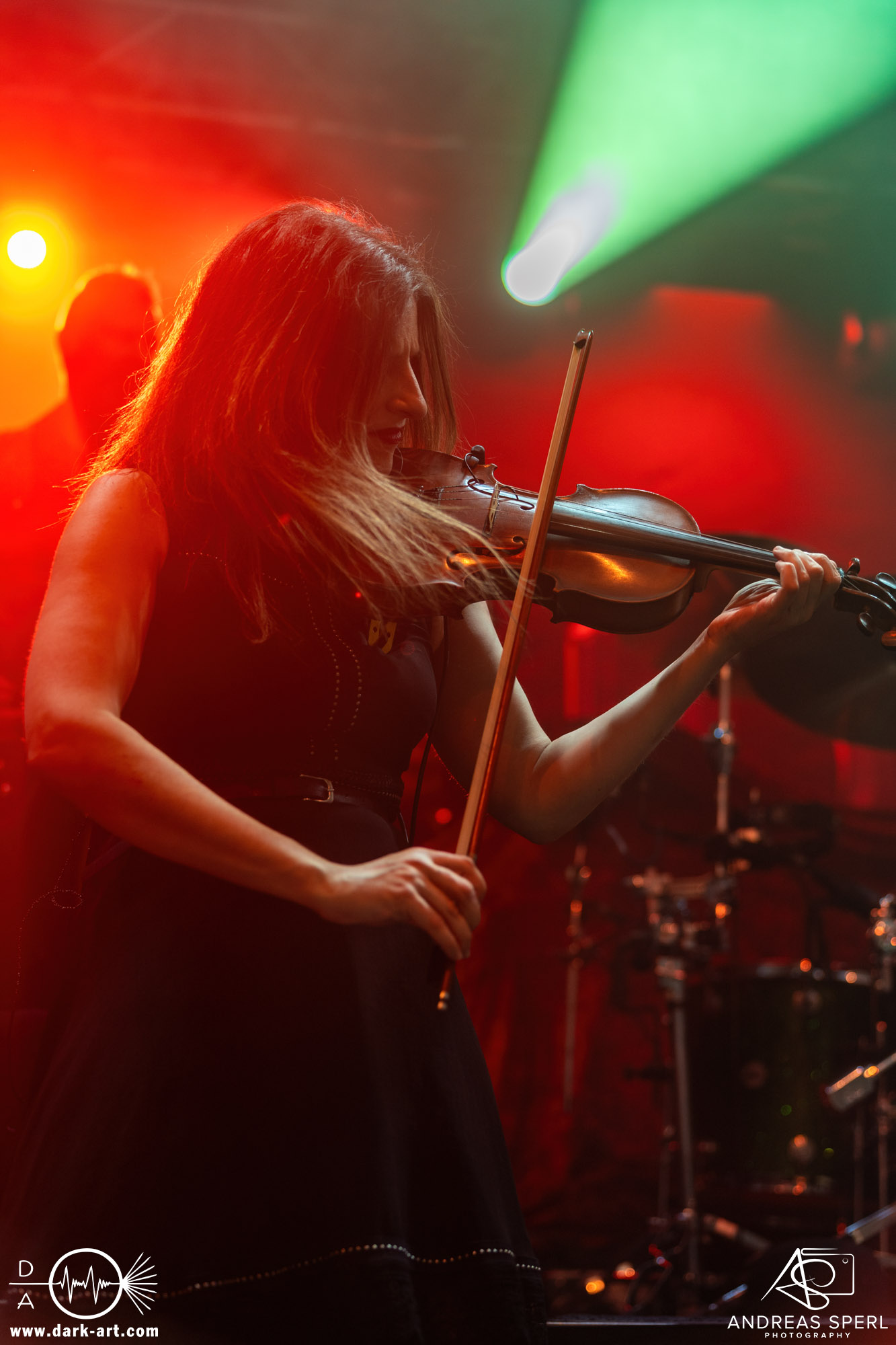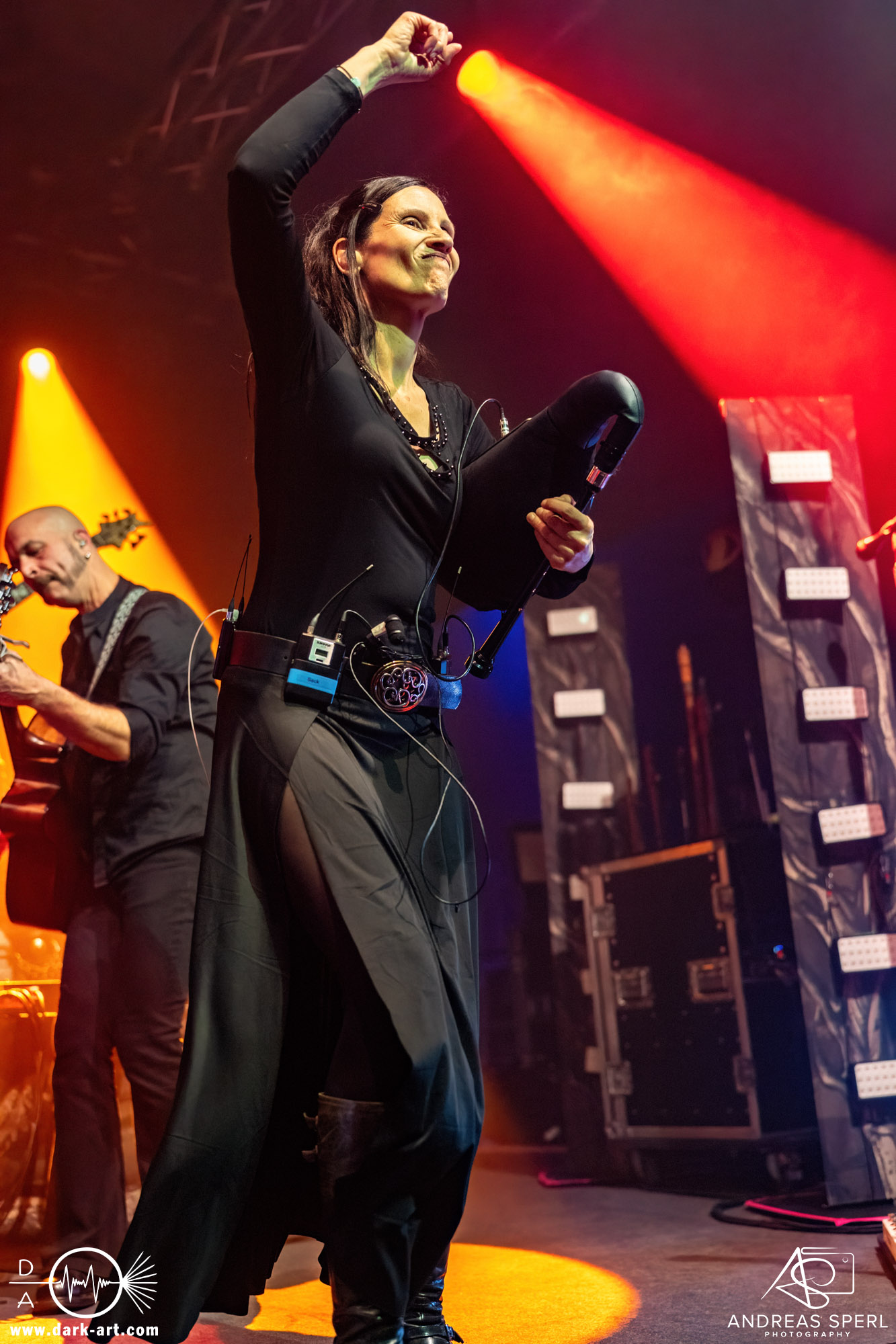 Nun war es Zeit für die Gastgeber des Abends. Subway to Sally betraten die Bühne und mit ihnen entlud sich all das, was sich über Stunden hinweg aufgebaut hatte. Kein Feuer, keine Pyro, keine Flammenfontänen wie bei anderen Stationen der Tour, und doch wirkte dieser Moment gerade deshalb umso intensiver. Ein tanzender Phönix eröffnete das Set, vertraut von früheren Touren, ehe die ersten Töne von Phönix erklangen. Ein symbolischer Auftakt, passender hätte er für das Abschlusskonzert im Potsdamer Waschhaus kaum sein können.