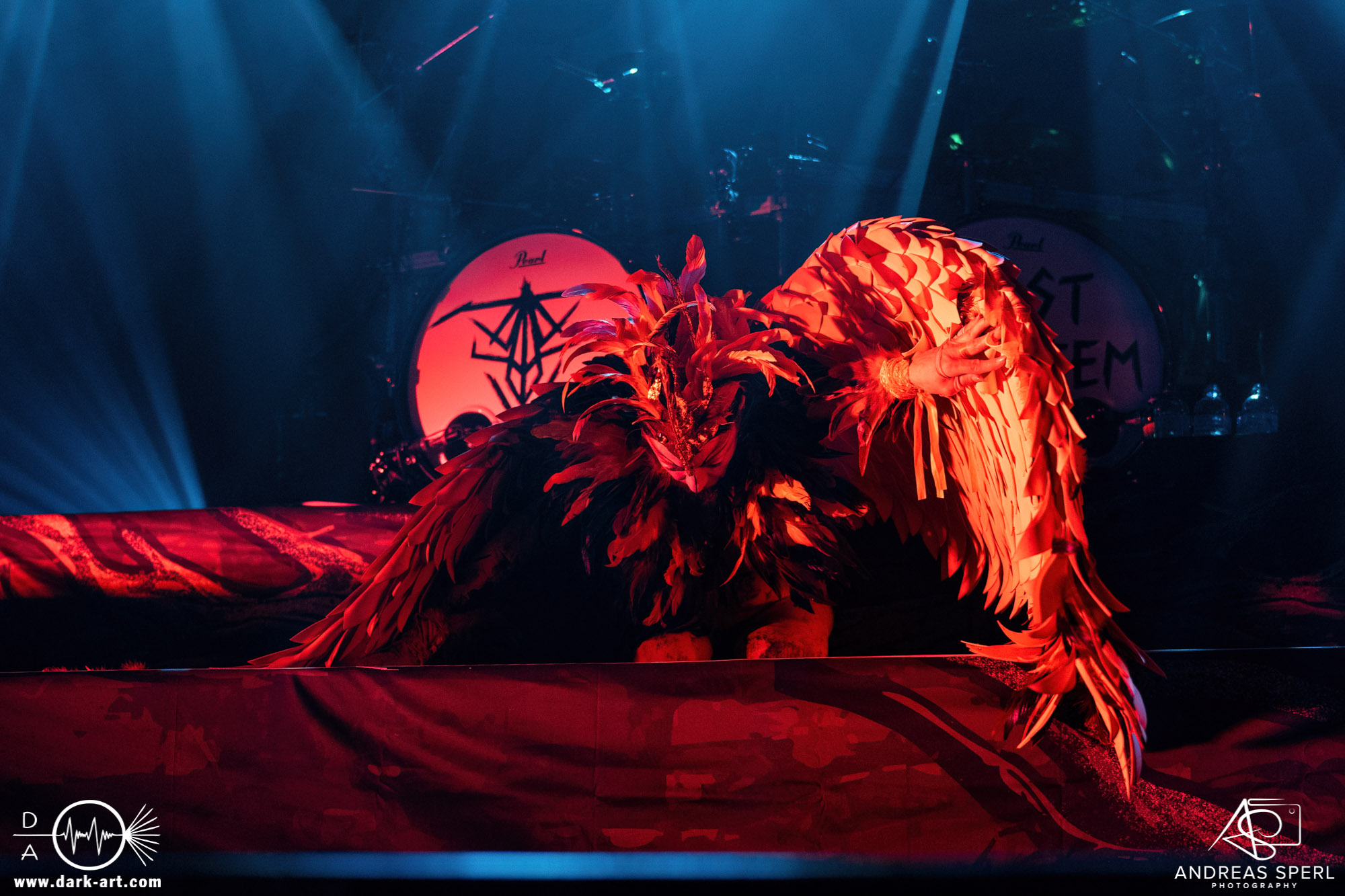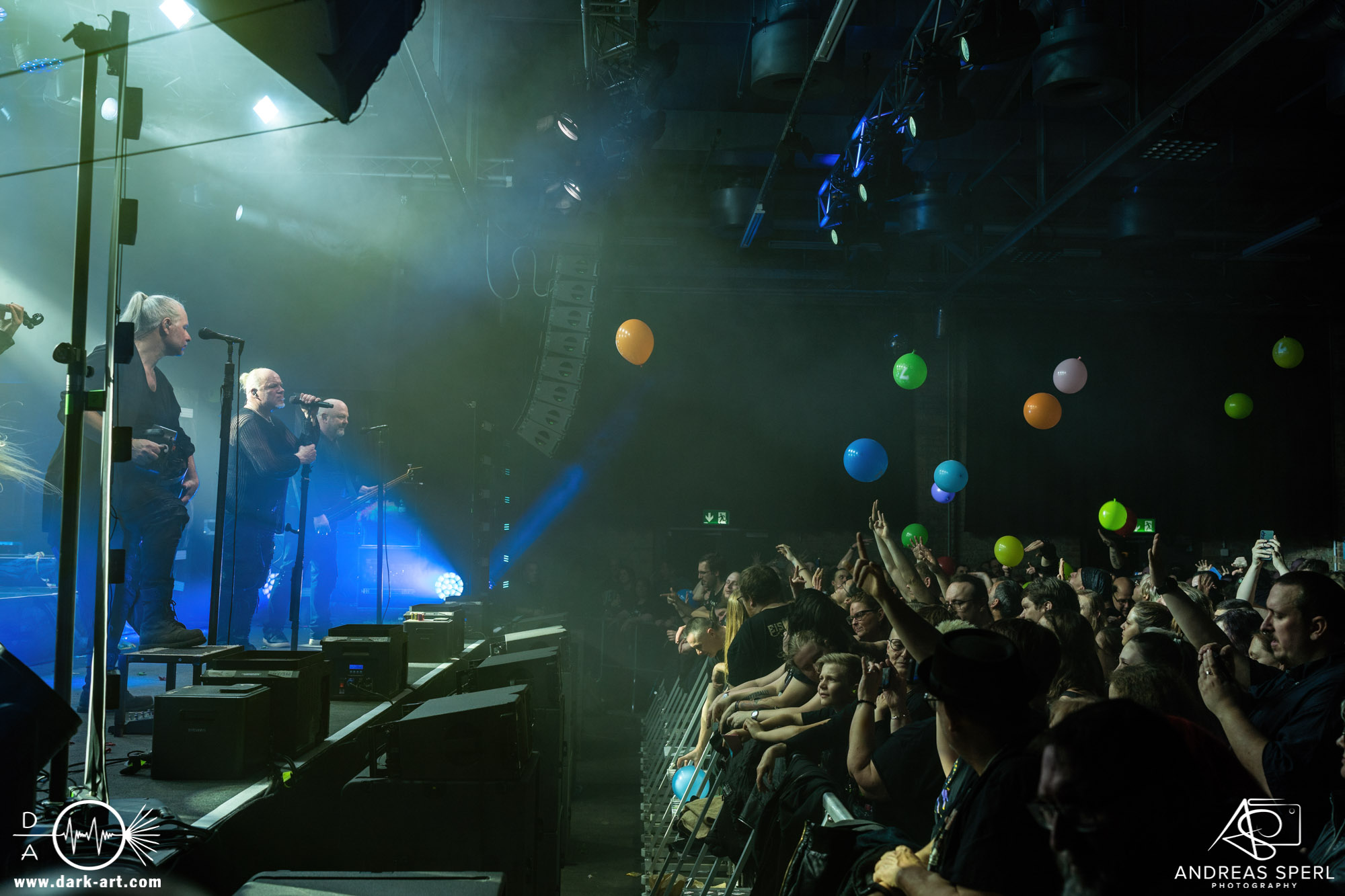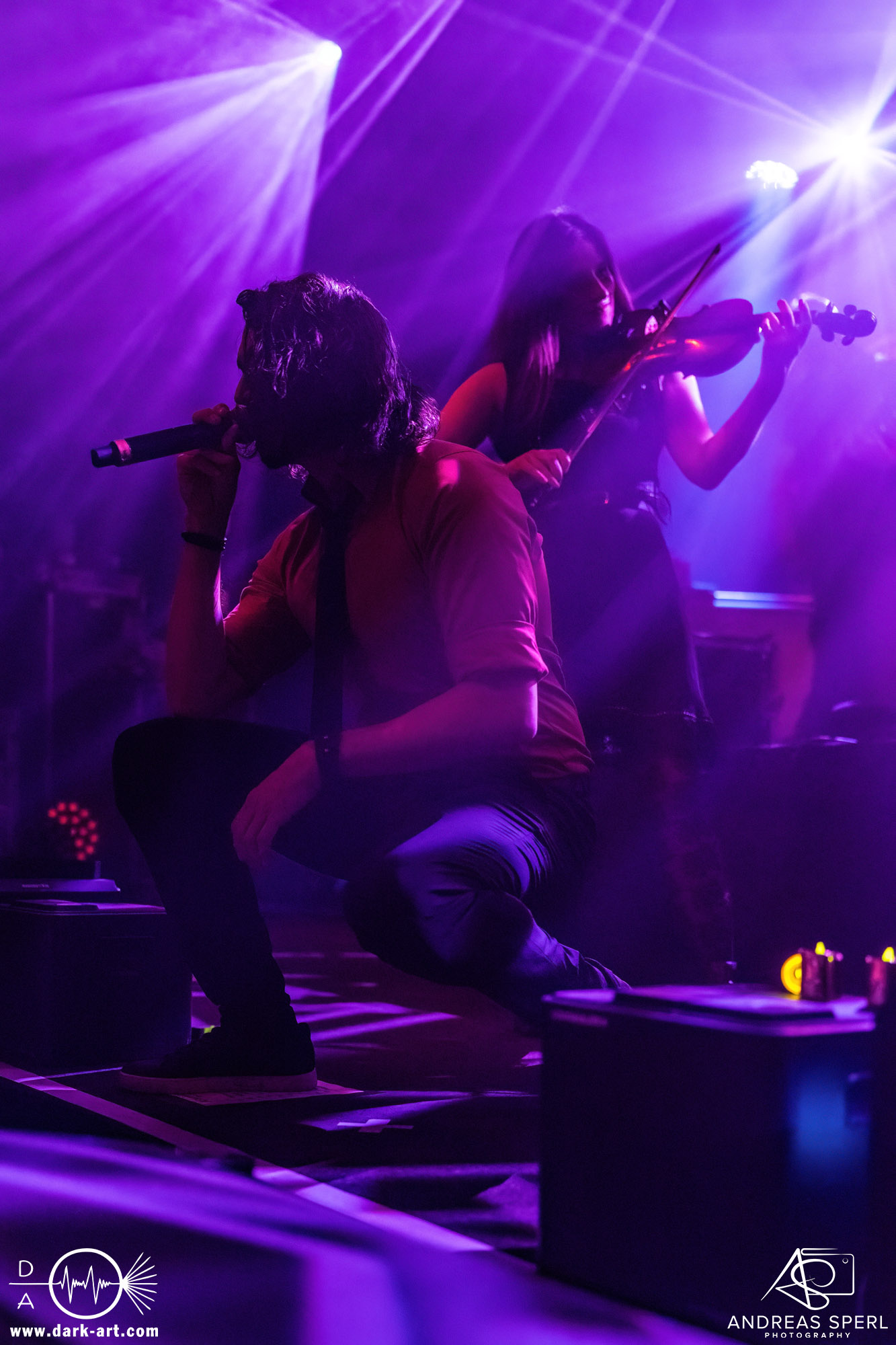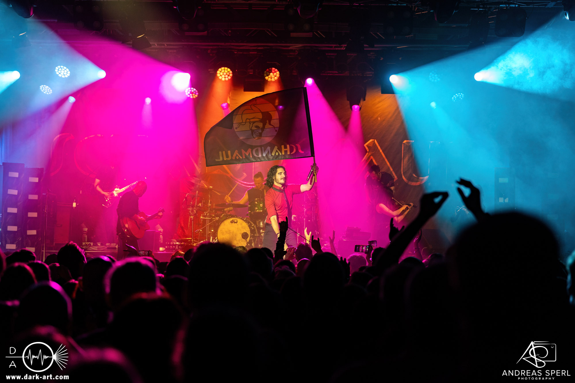 Nun war es Zeit für die Gastgeber des Abends. Subway to Sally betraten die Bühne und mit ihnen entlud sich all das, was sich über Stunden hinweg aufgebaut hatte. Kein Feuer, keine Pyro, keine Flammenfontänen wie bei anderen Stationen der Tour, und doch wirkte dieser Moment gerade deshalb umso intensiver. Ein tanzender Phönix eröffnete das Set, vertraut von früheren Touren, ehe die ersten Töne von Phönix erklangen. Ein symbolischer Auftakt, passender hätte er für das Abschlusskonzert im Potsdamer Waschhaus kaum sein können.