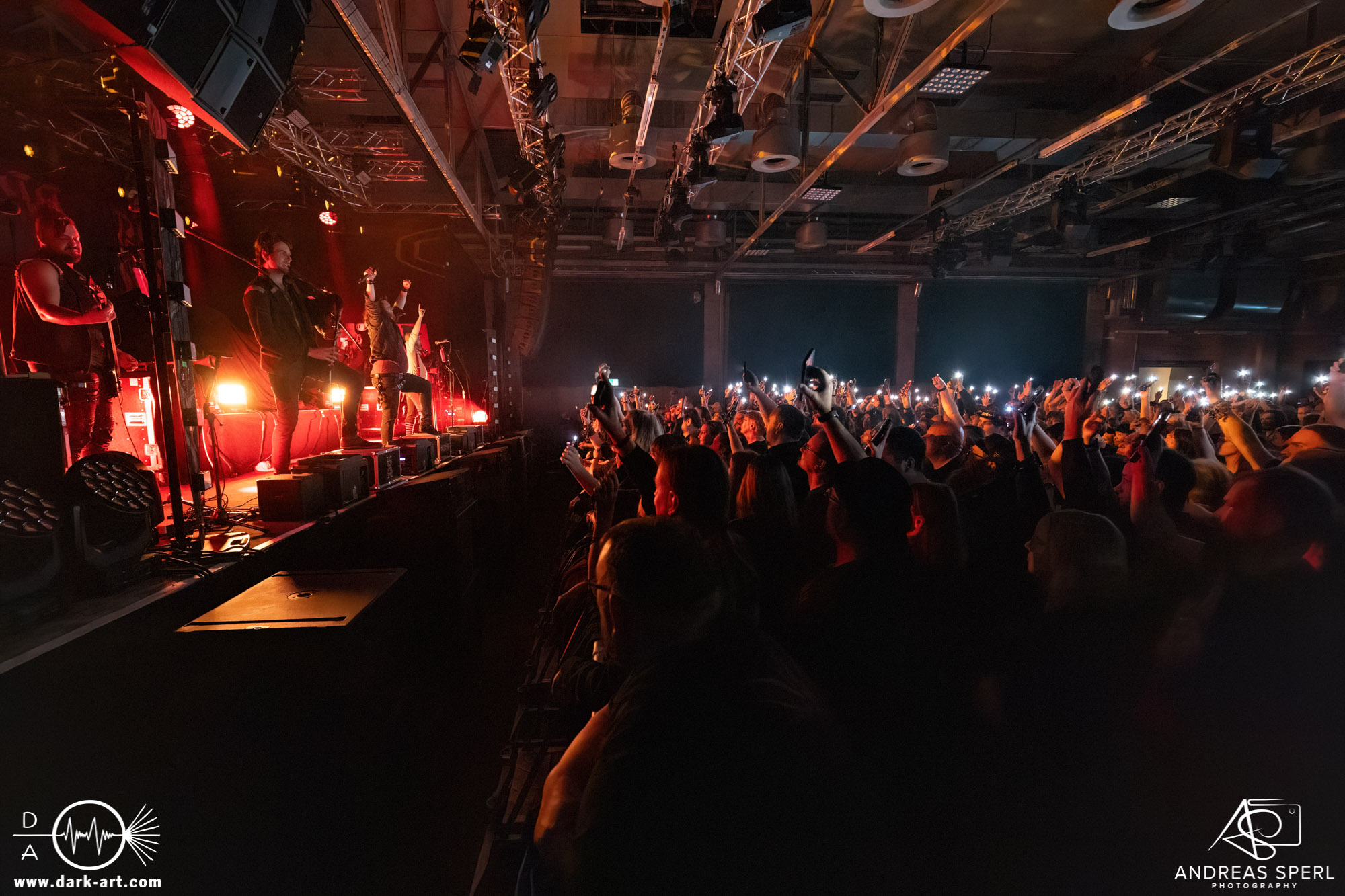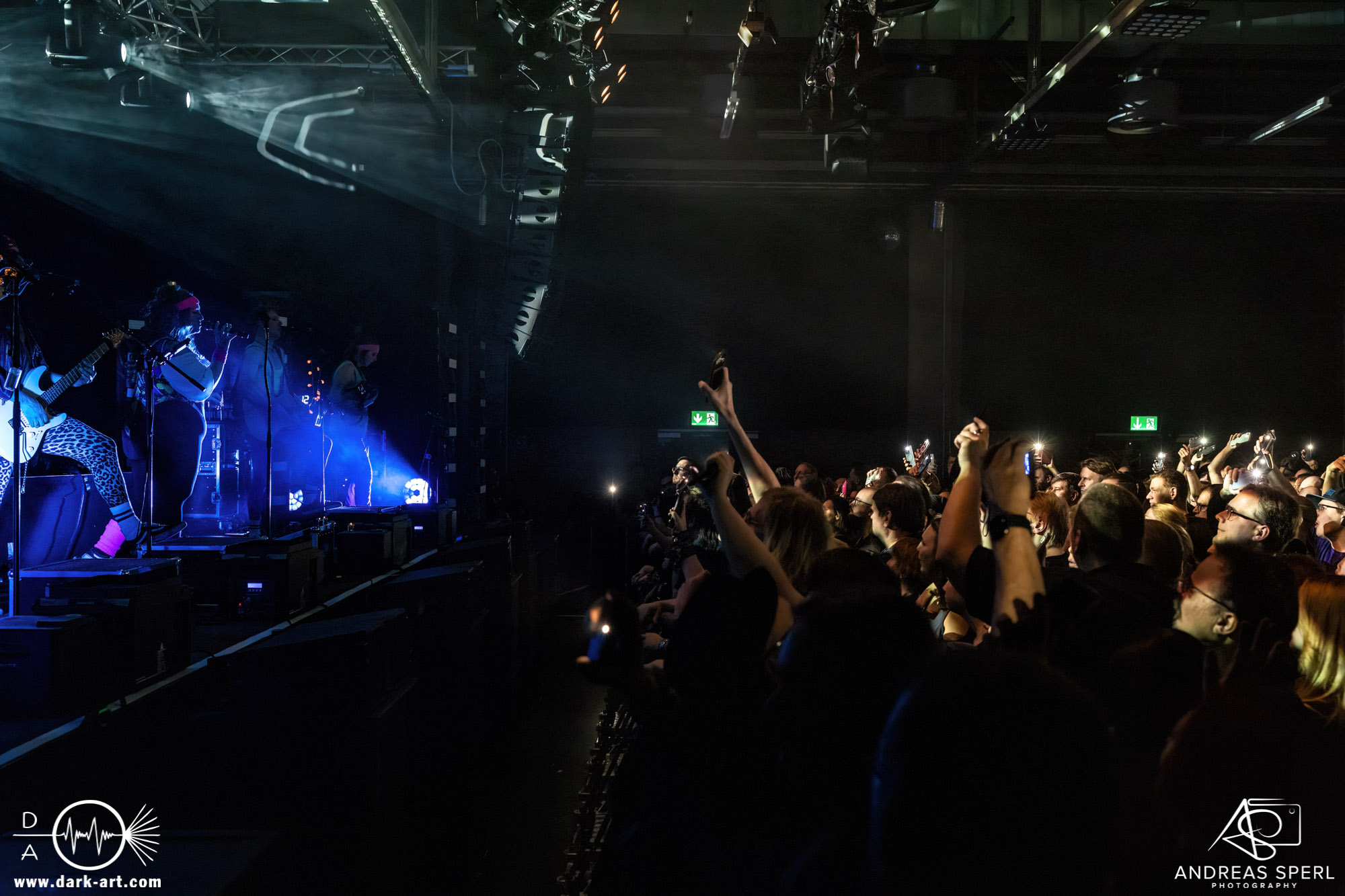 Einer der emotionalsten Momente des Sets folgte bei Dein Anblick. Das Publikum wurde gebeten, die Taschenlampen der Handys anzumachen und übernahm schließlich die letzten Strophen komplett selbst. Auch, nachdem der Song eigentlich beendet war, sang der Saal weiter, getragen vom Applaus und sichtbar bewegt von der Band, die die Fans auch noch einmal ermutigte, nicht aufzuhören.