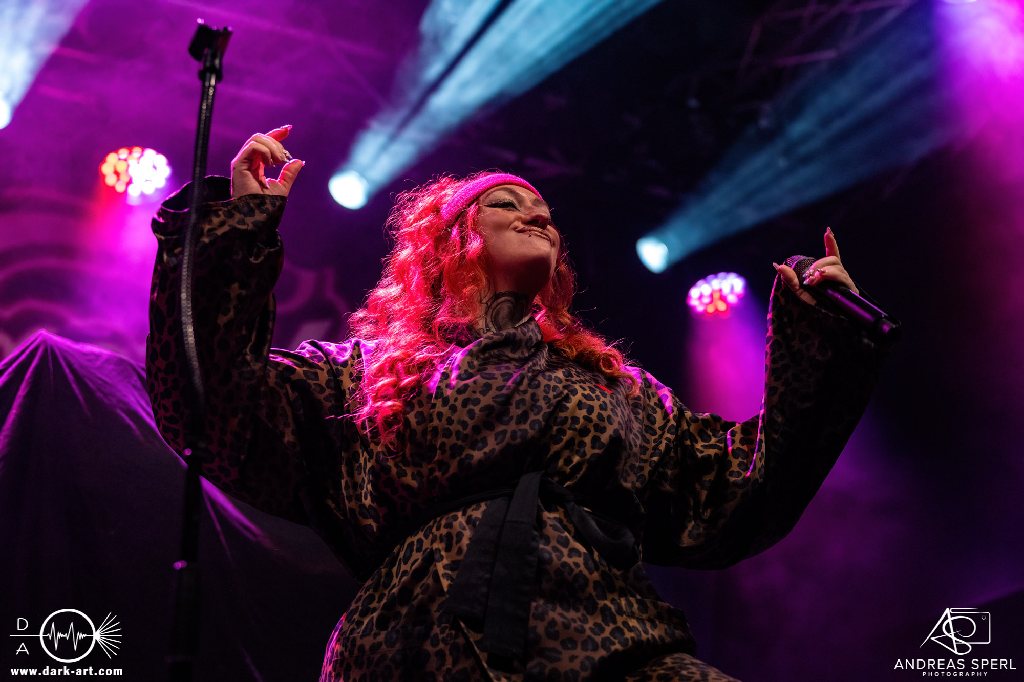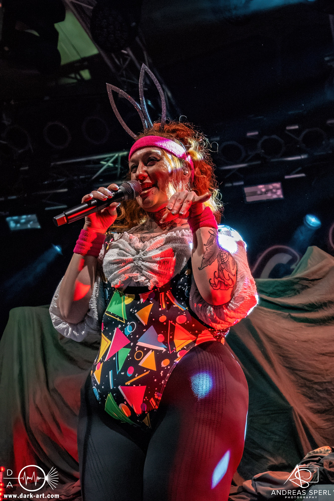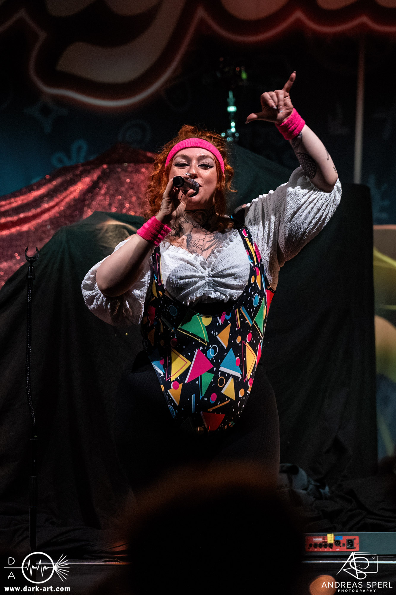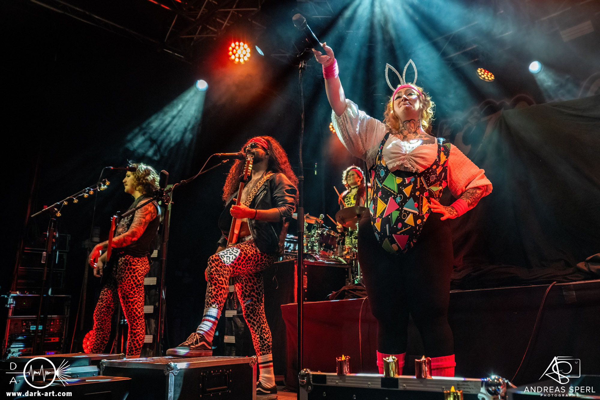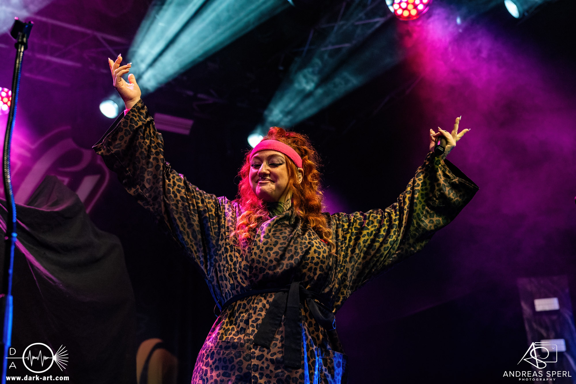 Auch an kleinen Show-Momenten mangelte es nicht. Nach dem zweiten Song betrat Eric Fish von Subway to Sally die Bühne und setzte Bonnie eine glitzernde Spange mit stilisierten Hasenohren auf, begleitet von einem herzlichen Dank Kupfergold s für die Einladung auf diese Tour. Man merkte deutlich, wie viel diese Chance Kupfergold bedeutete: früher Fans, heute gemeinsam auf der Bühne.