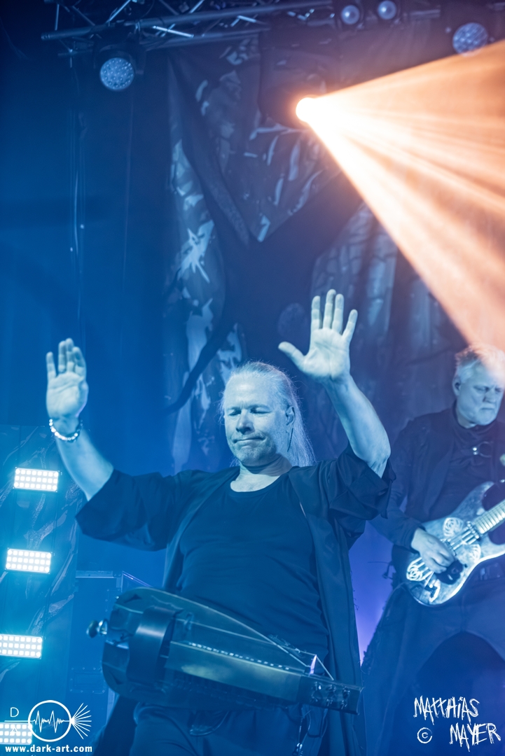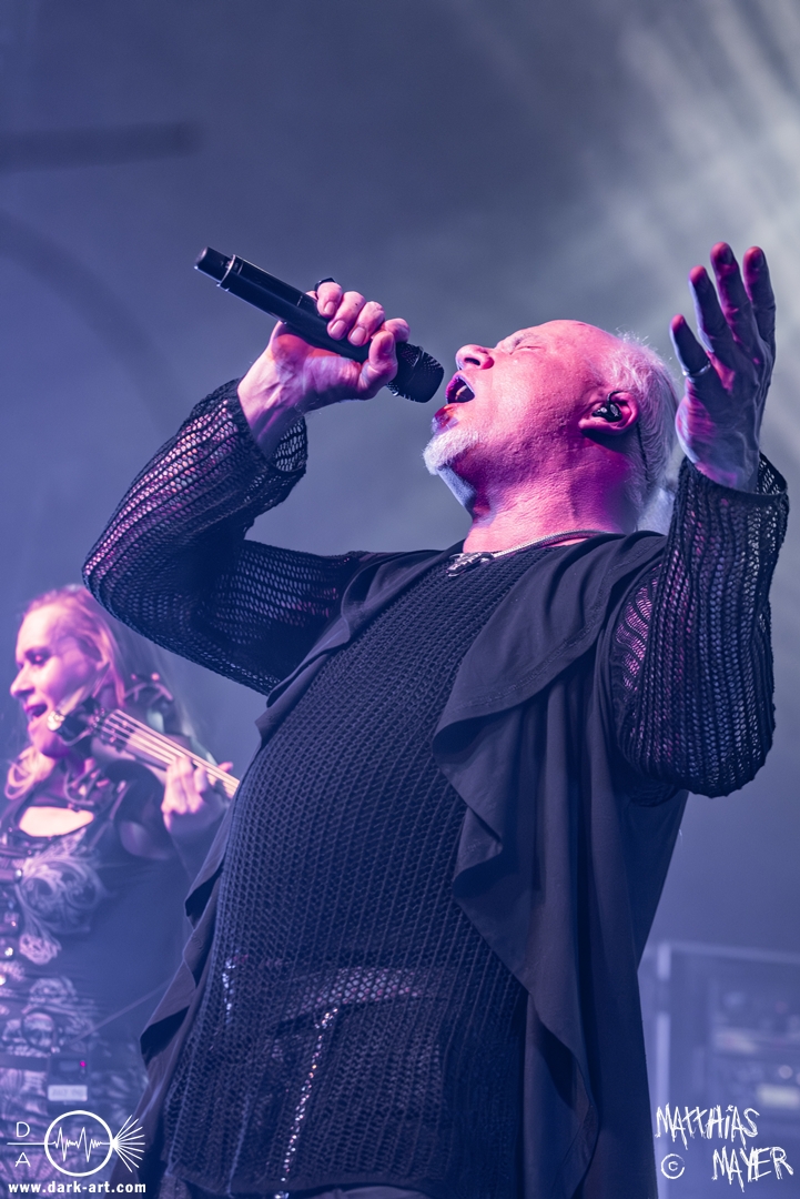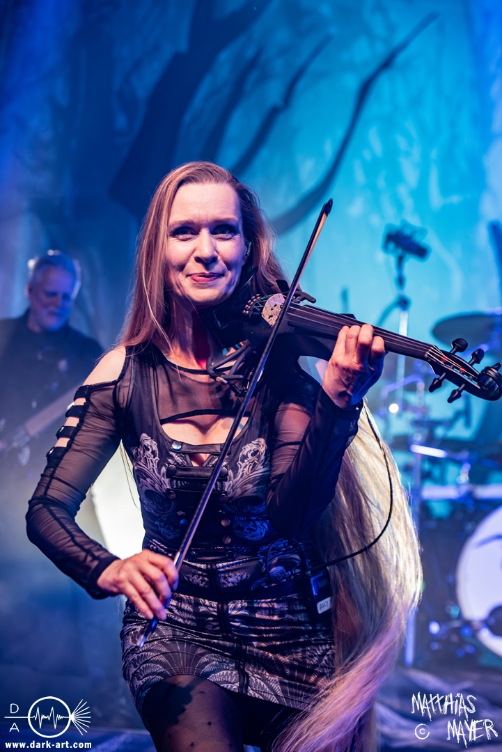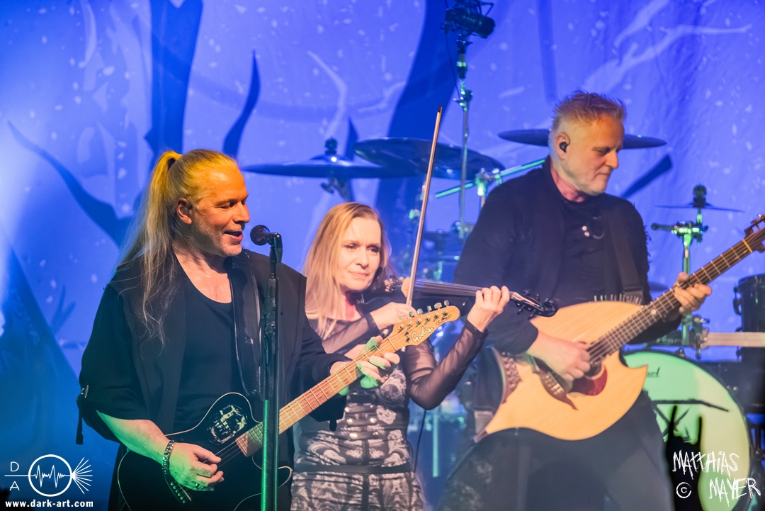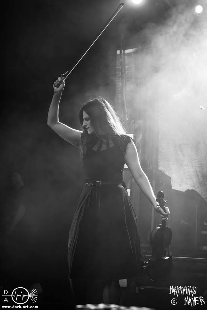Nun war es Zeit für die Gastgeber des Abends. Als Intro erwartete uns ein tanzender Phönix, wie man es schon von der Post Mortem Tour kannte. Dann schossen Flammen in die Höhe und heizten den ersten Reihen ordentlich ein. Das perfekte Gegenstück zur eisigen Dezemberkälte der Eisheiligen Nächte. Dazu erklangen die ersten vertrauten Töne der Potsdamer Jungs mit Geigerin Ally zum dazu passenden Lied Phönix. Die Setlist selbst enthielt wenig Überraschungen und bot jedem Fan eine gelungene Mischung der neueren Hits und der alten Klassiker.