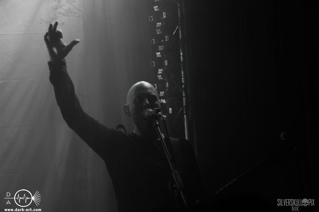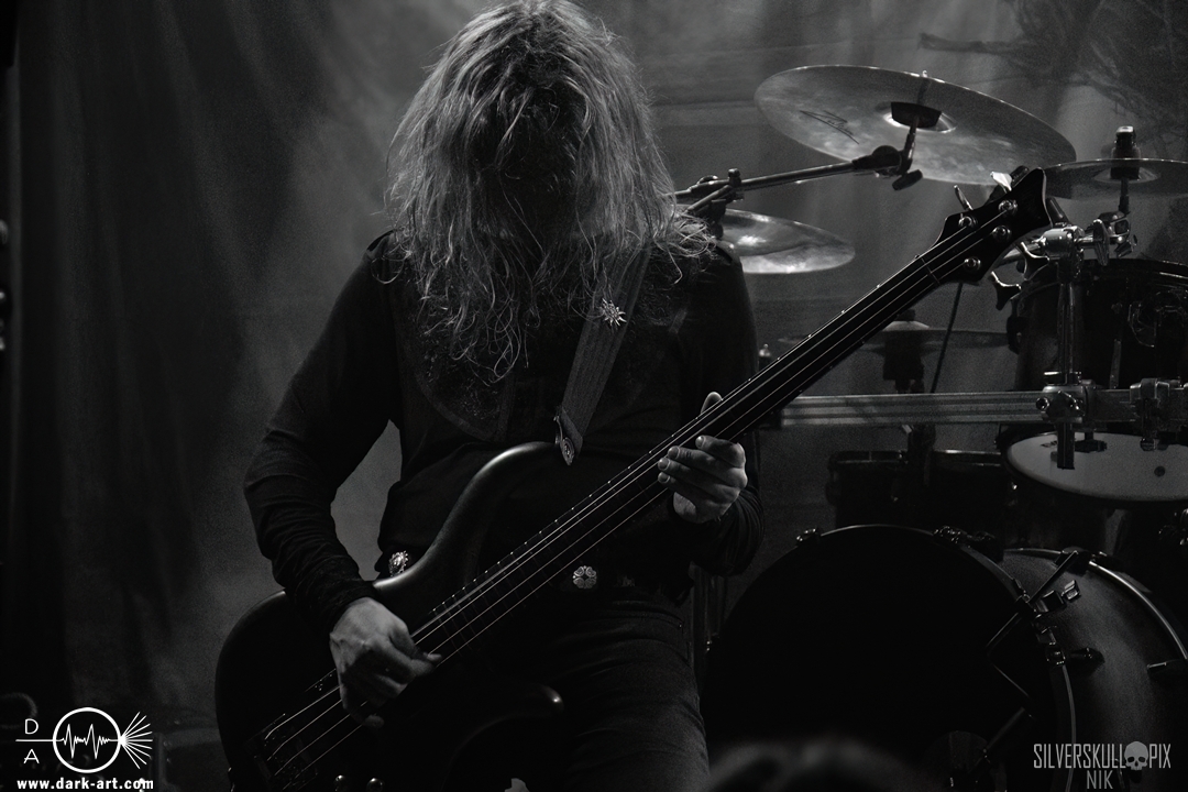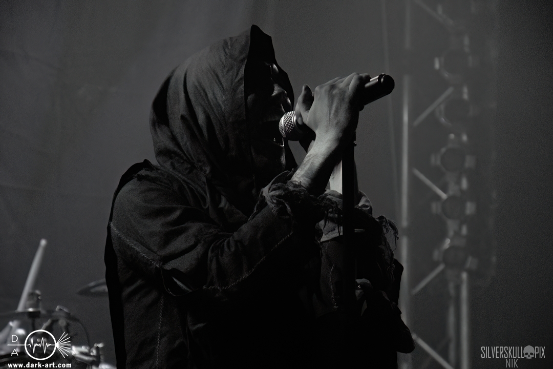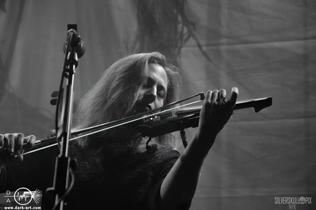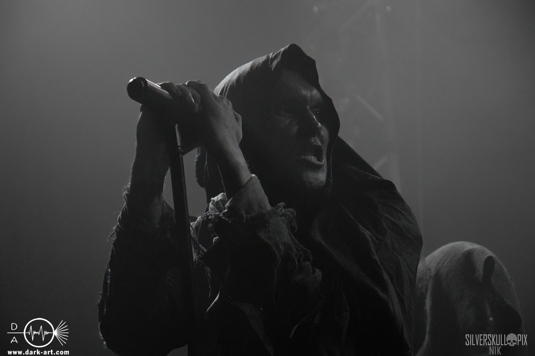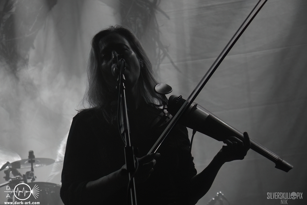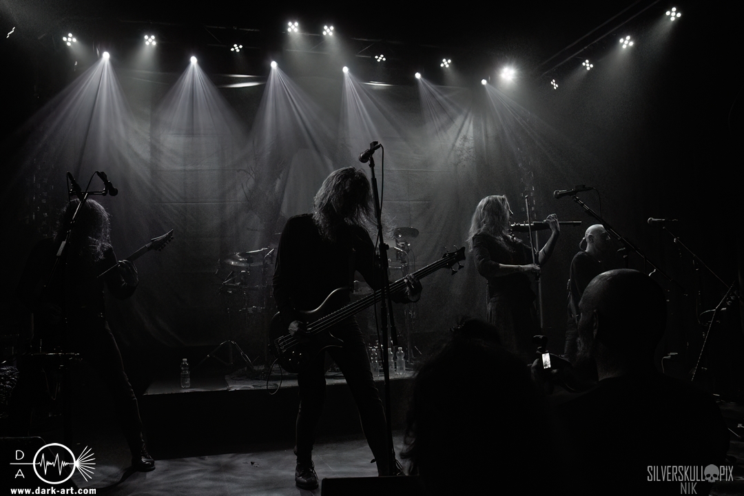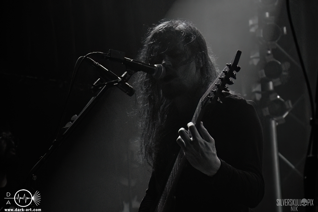 Dann war es endlich so weit und der Headliner des Abends betrat die Bühne. Mit ihrem naturverbundenen Atmospheric Black Metal boten uns Elderwind einen schönen Querschnitt ihrer Diskografie und bedienten mit der Setlist jedes ihrer vier Alben. Persy und Dmitry an den Saiteninstrumenten unterstützten immer wieder mit Backing Vocals, während Andrey die Drumsticks glühen ließ. In Kapuzengewänder gehüllt boten sie auch optisch ein klangvolles Bild und Sänger Alexander setzte oft auf die Wirkung seiner Hände. Im Zusammenspiel mit den Lichteffekten wirkte der ganze Auftritt sehr majestätisch, da hatte sich das lange Warten definitiv gelohnt. Die gekonnten Tempowechsel sorgten dafür, dass zu keiner Zeit Langeweile aufkam, Elderwind boten ein Klangbild, das zu Träumen verführte